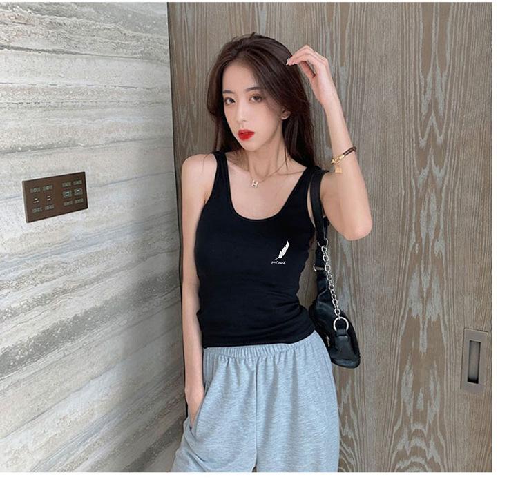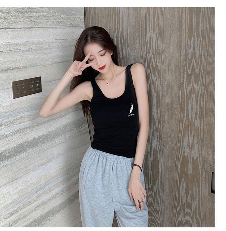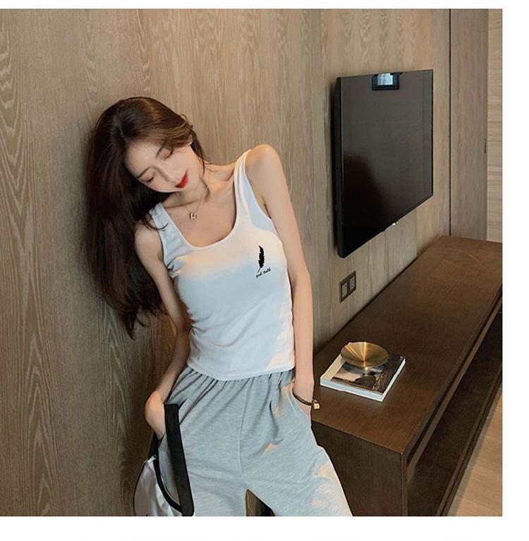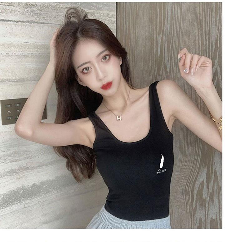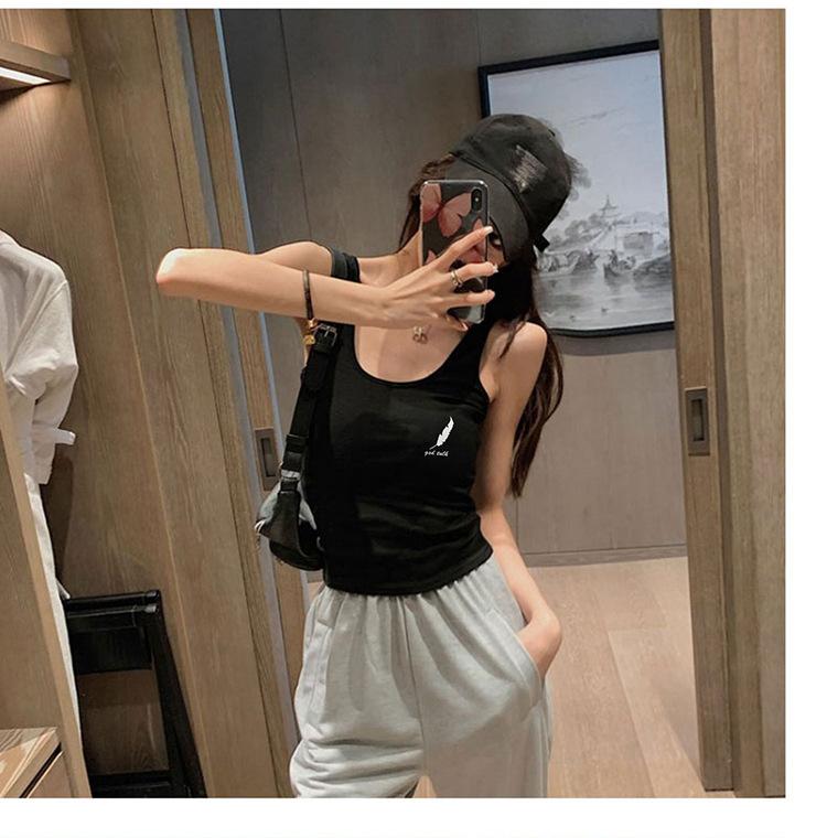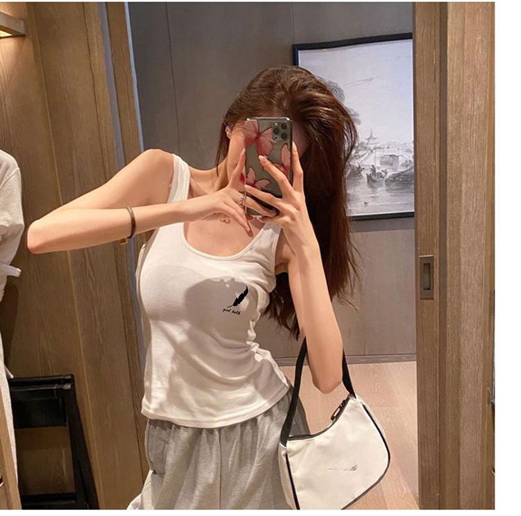 Camisola pequeña de algodón puro para mujer, ropa interior de verano, ropa exterior, elegante y a la moda, camiseta deportiva sin mangas.