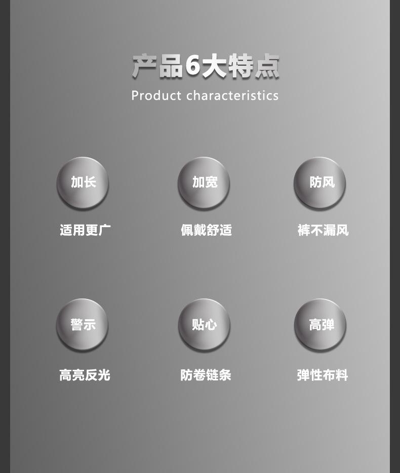 Función: Prevenir eficazmente que tu pierna derecha se contamine con las manchas de aceite en el plato de presión. Función de advertencia con tira reflectante