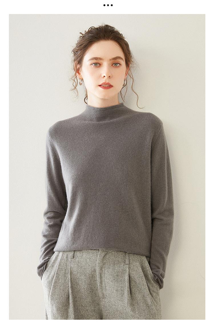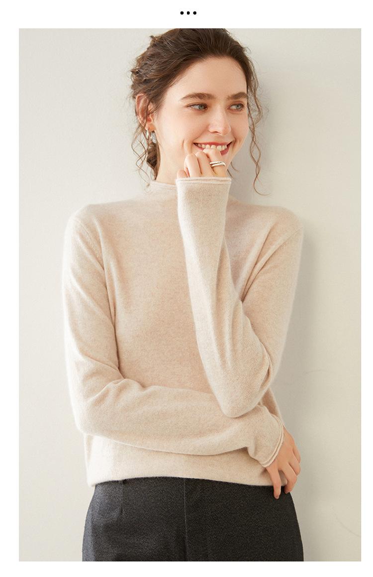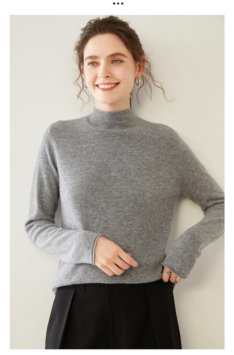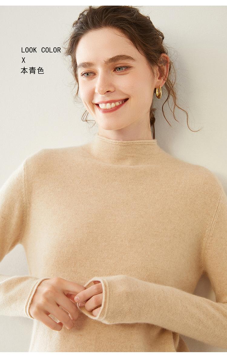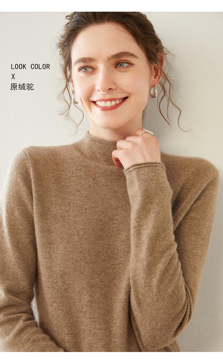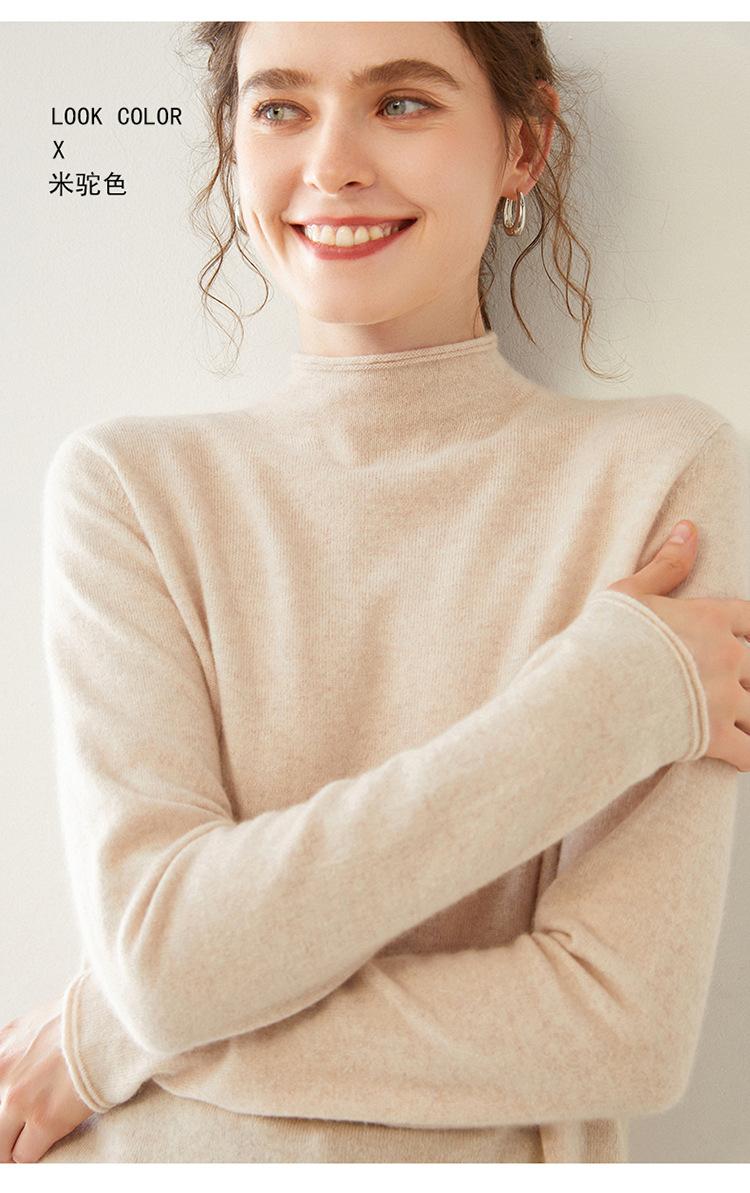 Camisa de punto de cachemira para mujer, jersey de cuello alto medio, suelto, interior, otoño e invierno, 2024