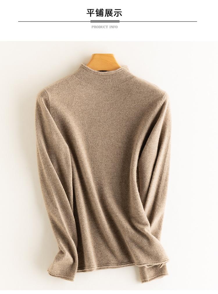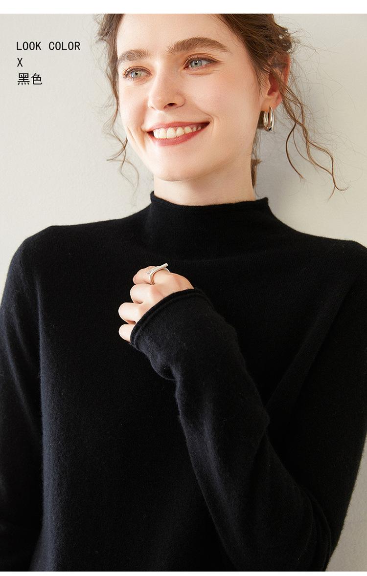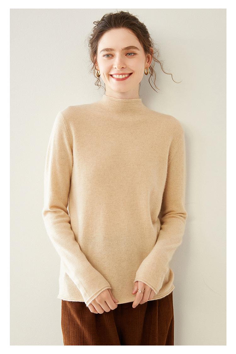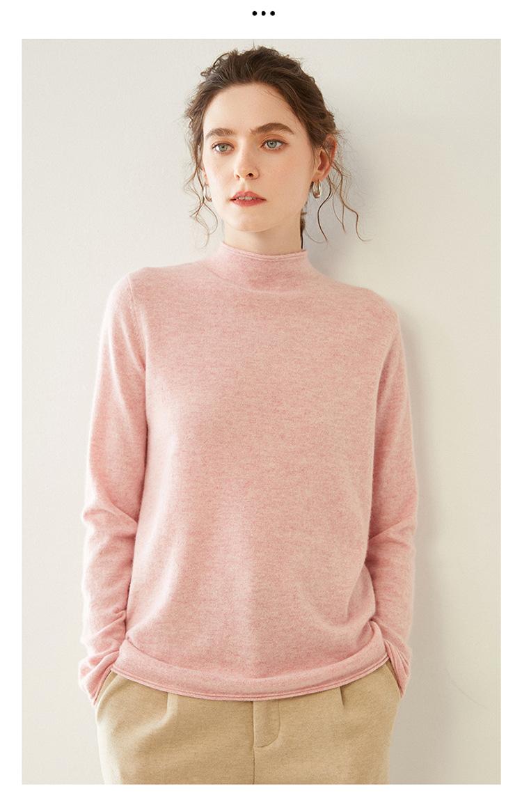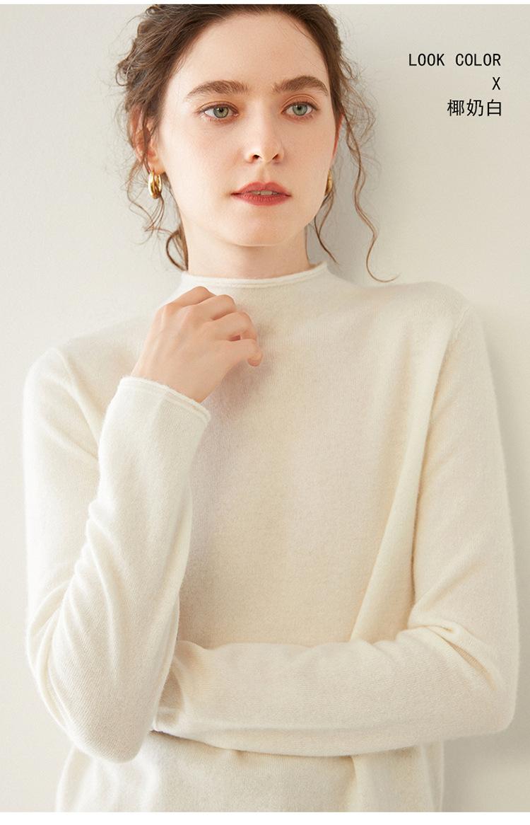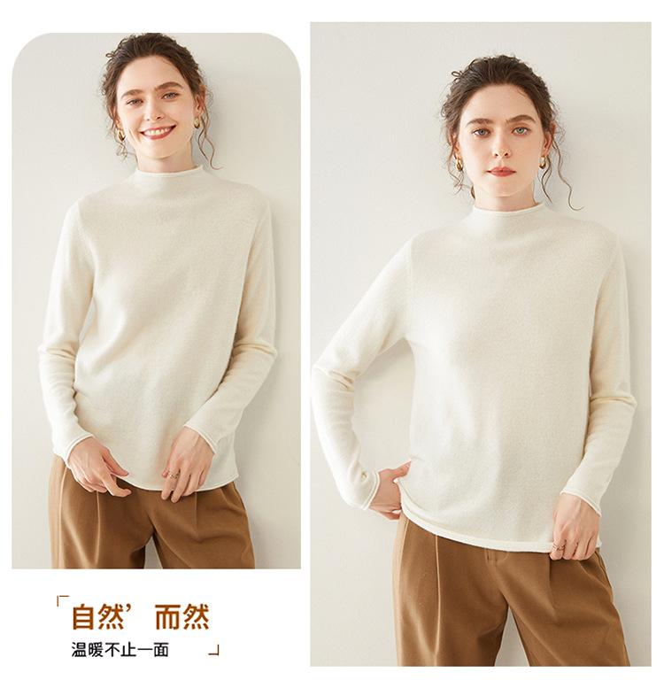 Camisa de punto de cachemira para mujer, jersey de cuello alto medio, suelto, interior, otoño e invierno, 2024