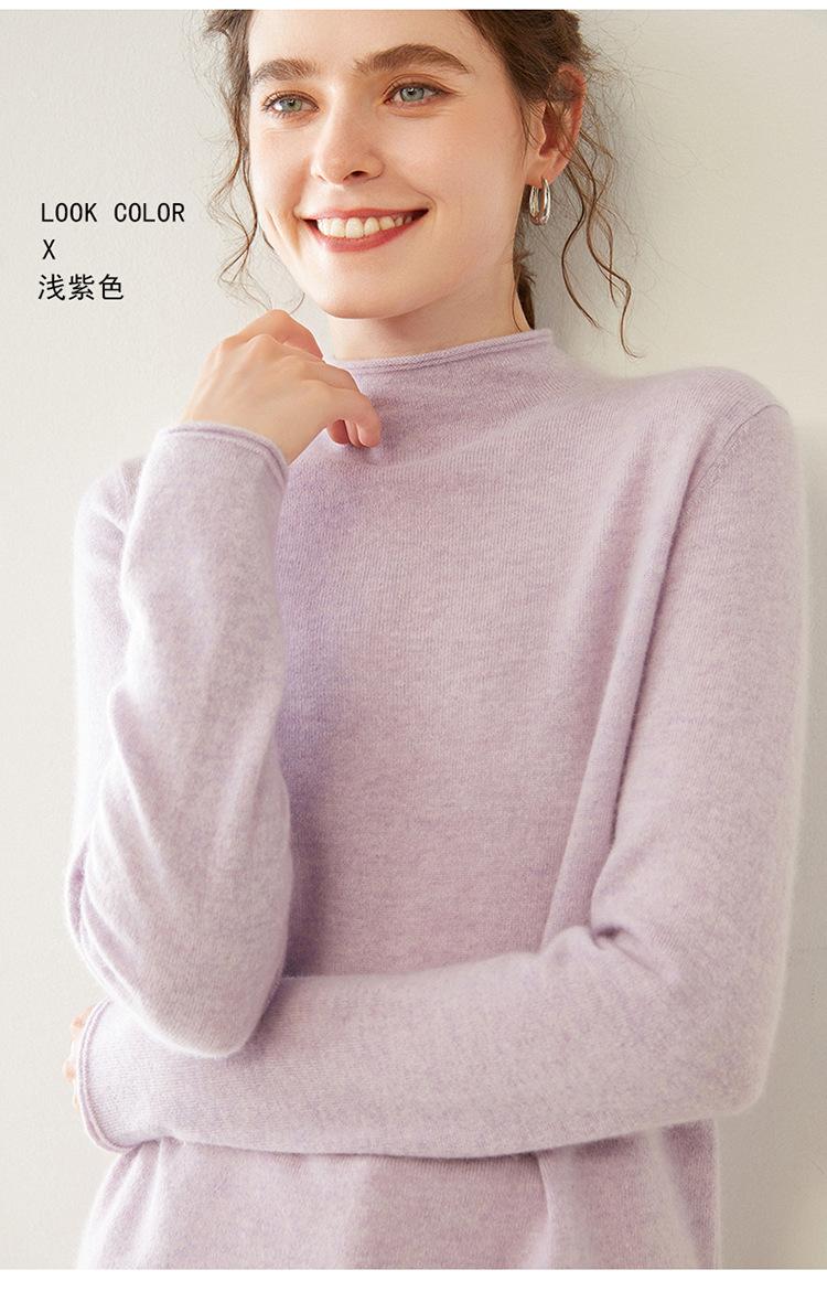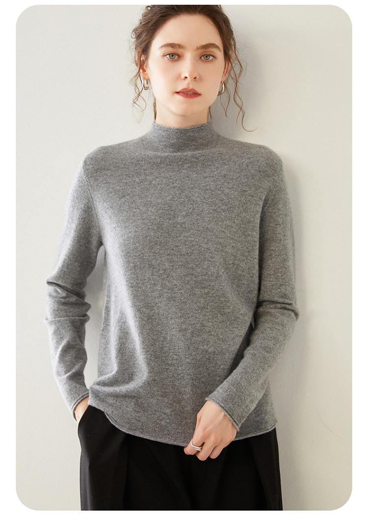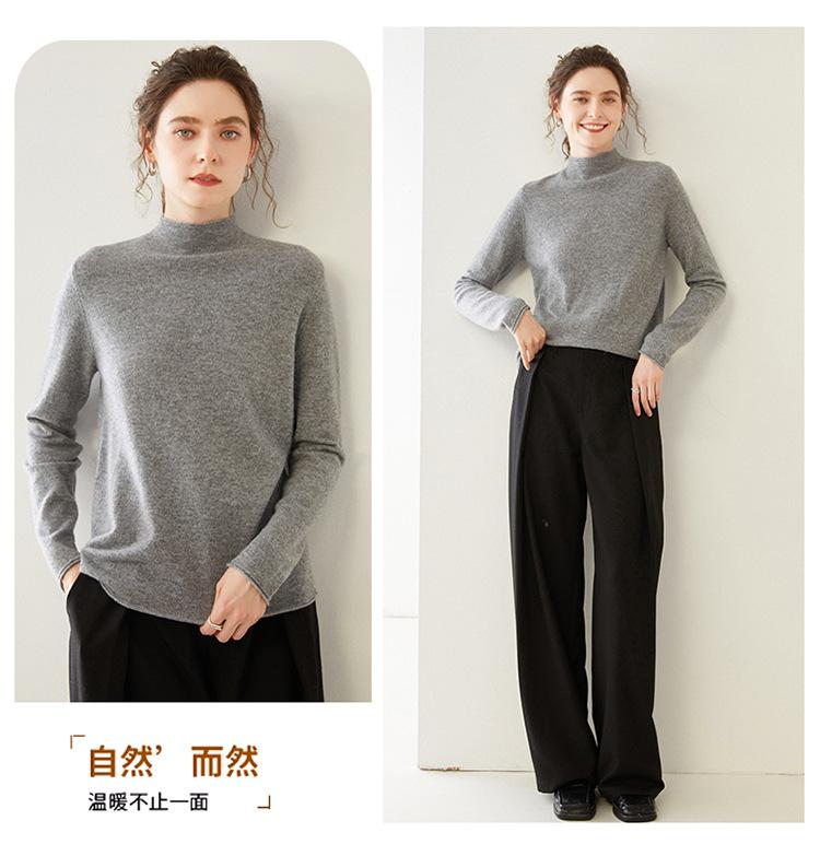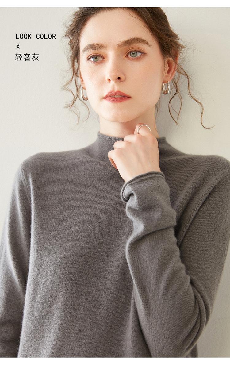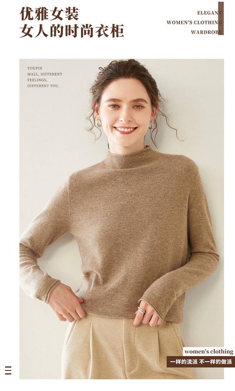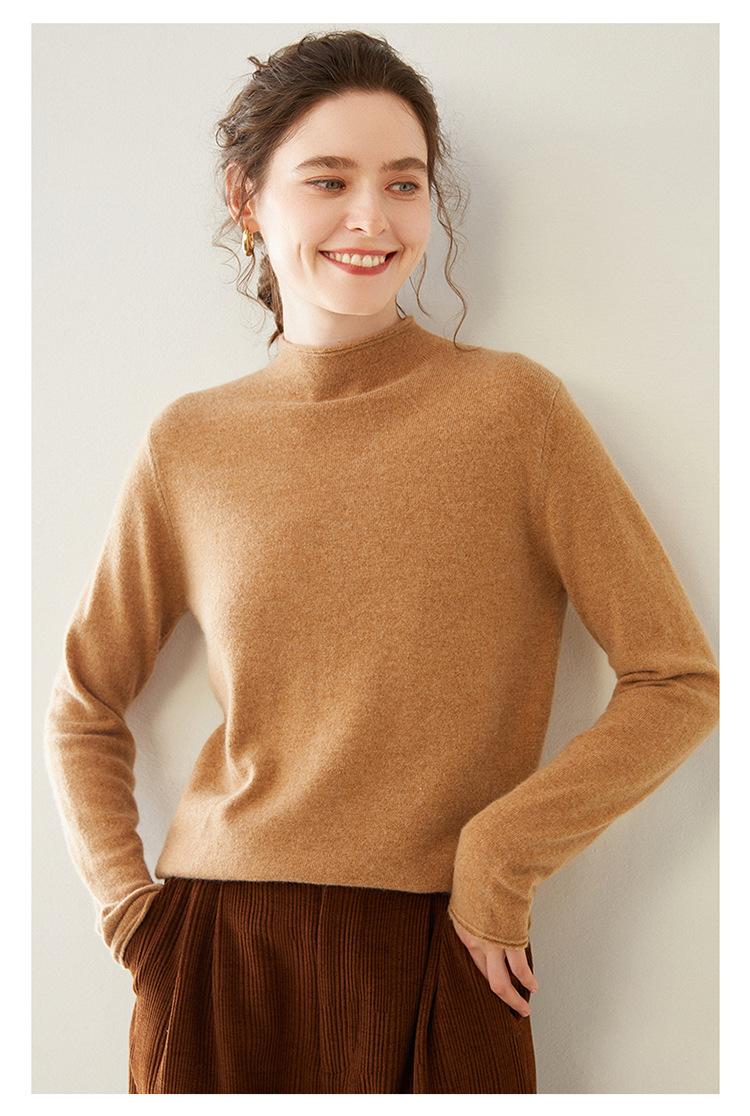 Camisa de punto de cachemira para mujer, jersey de cuello alto medio, suelto, interior, otoño e invierno, 2024