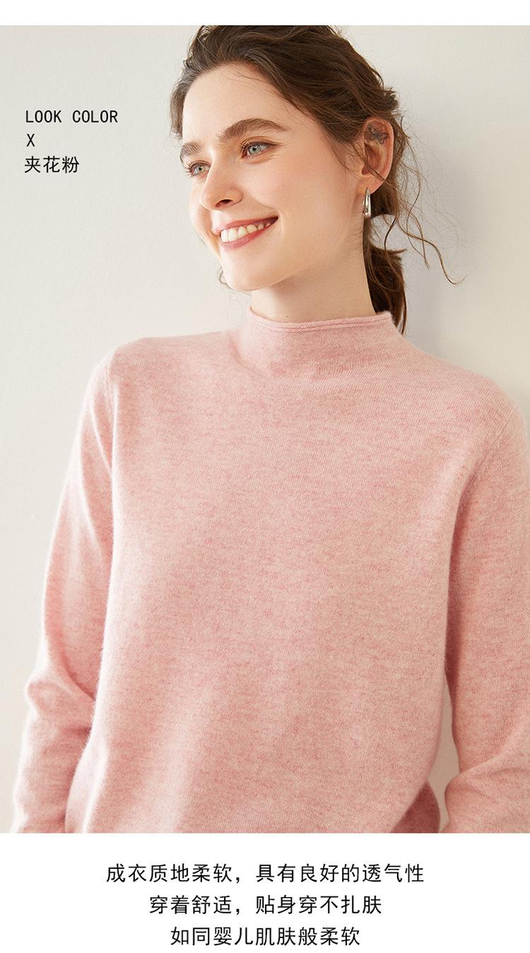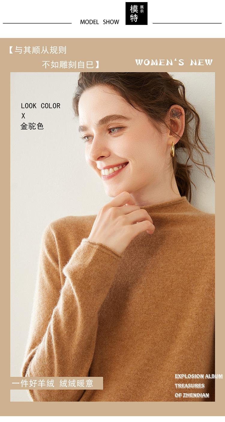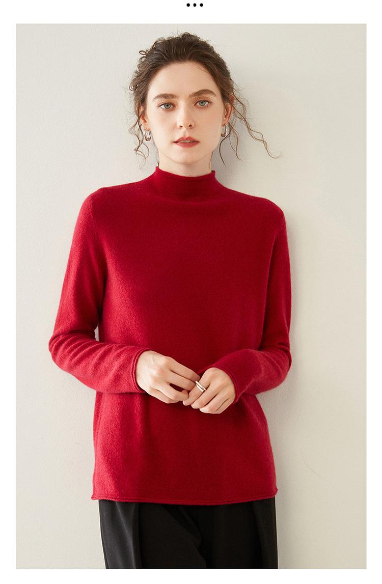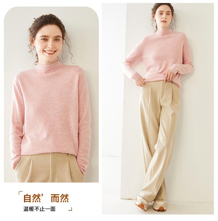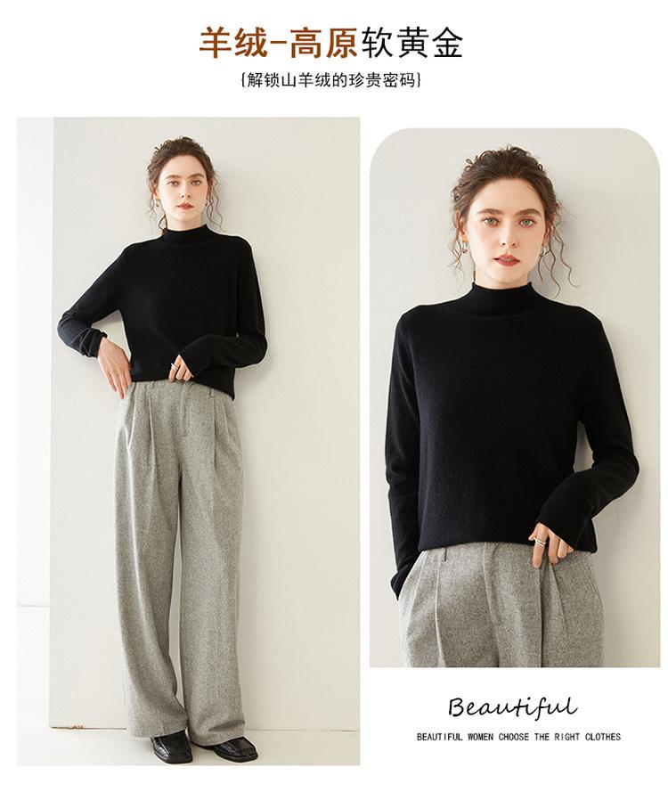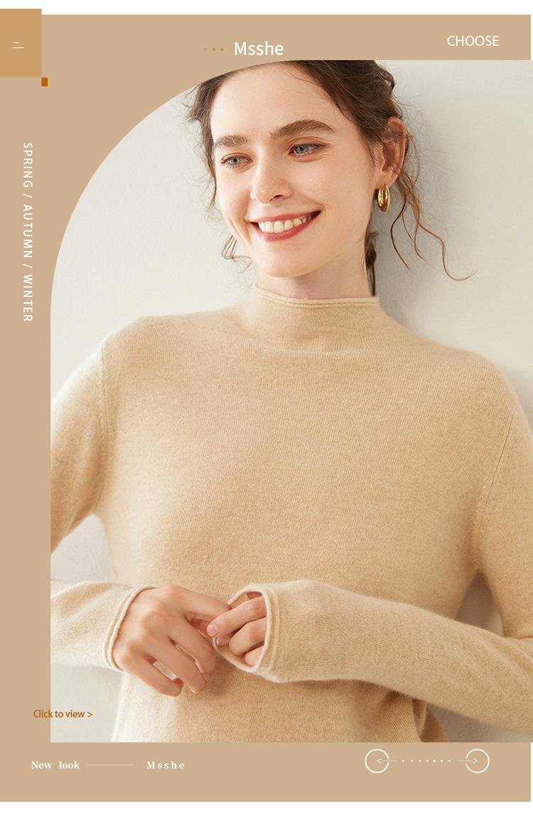 Camisa de punto de cachemira para mujer, jersey de cuello alto medio, suelto, interior, otoño e invierno, 2024
