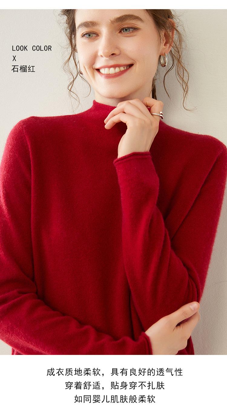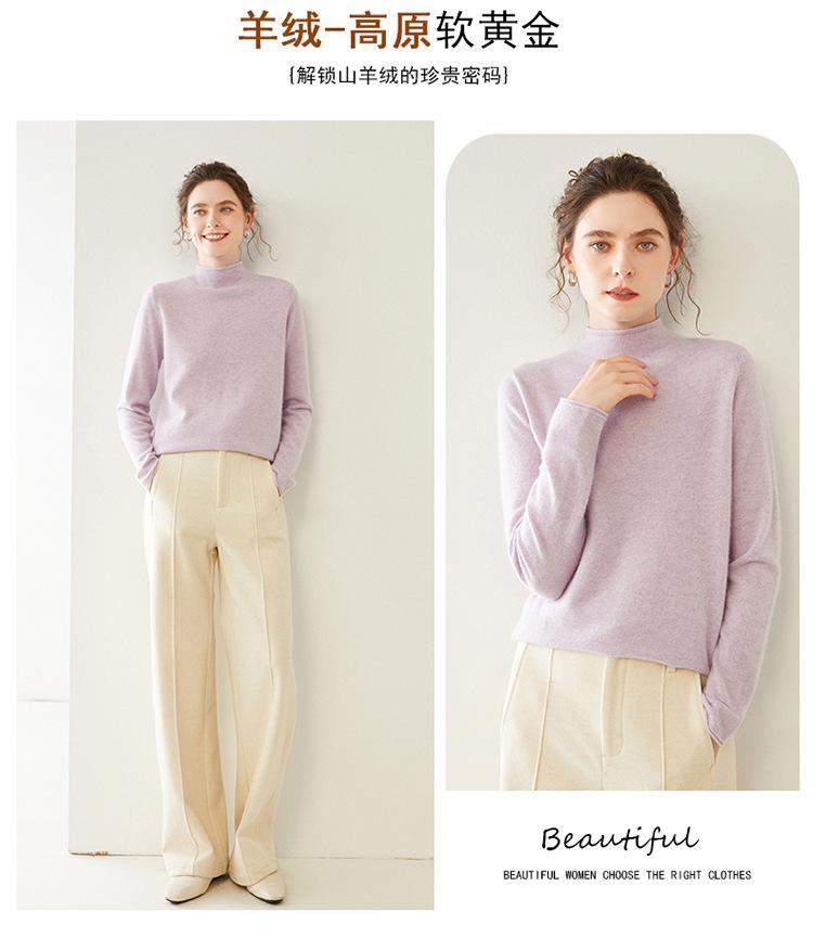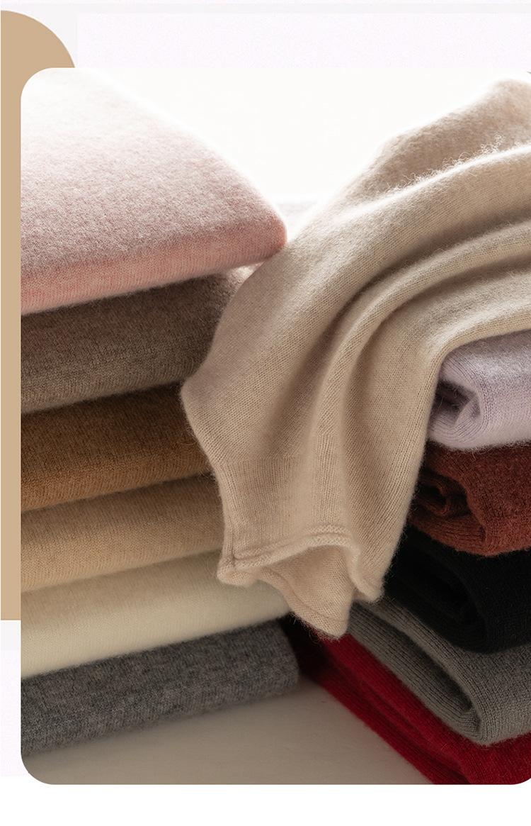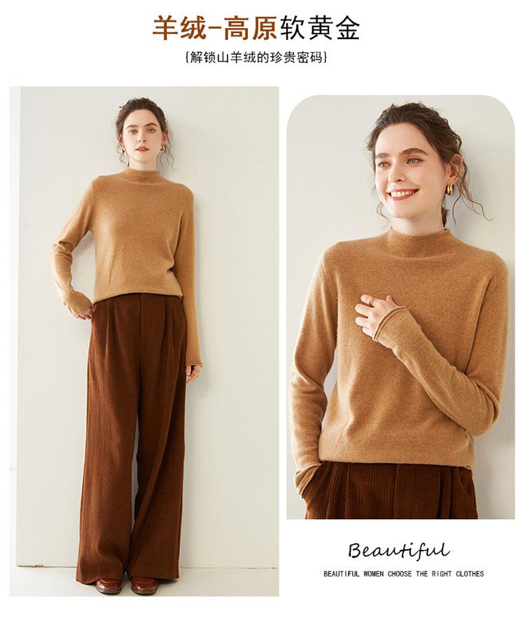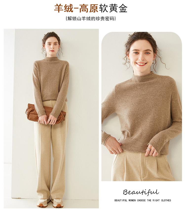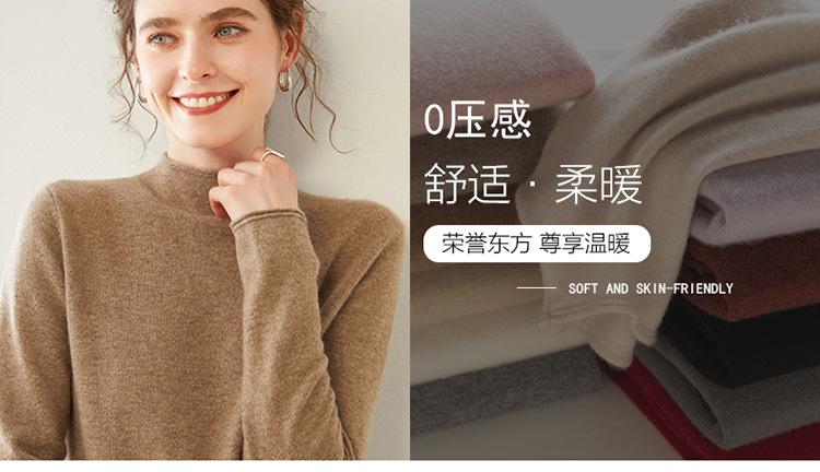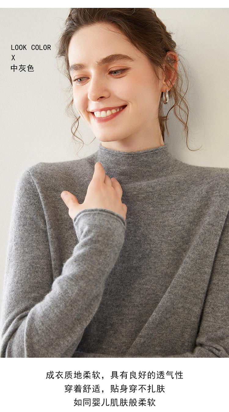 Camisa de punto de cachemira para mujer, jersey de cuello alto medio, suelto, interior, otoño e invierno, 2024