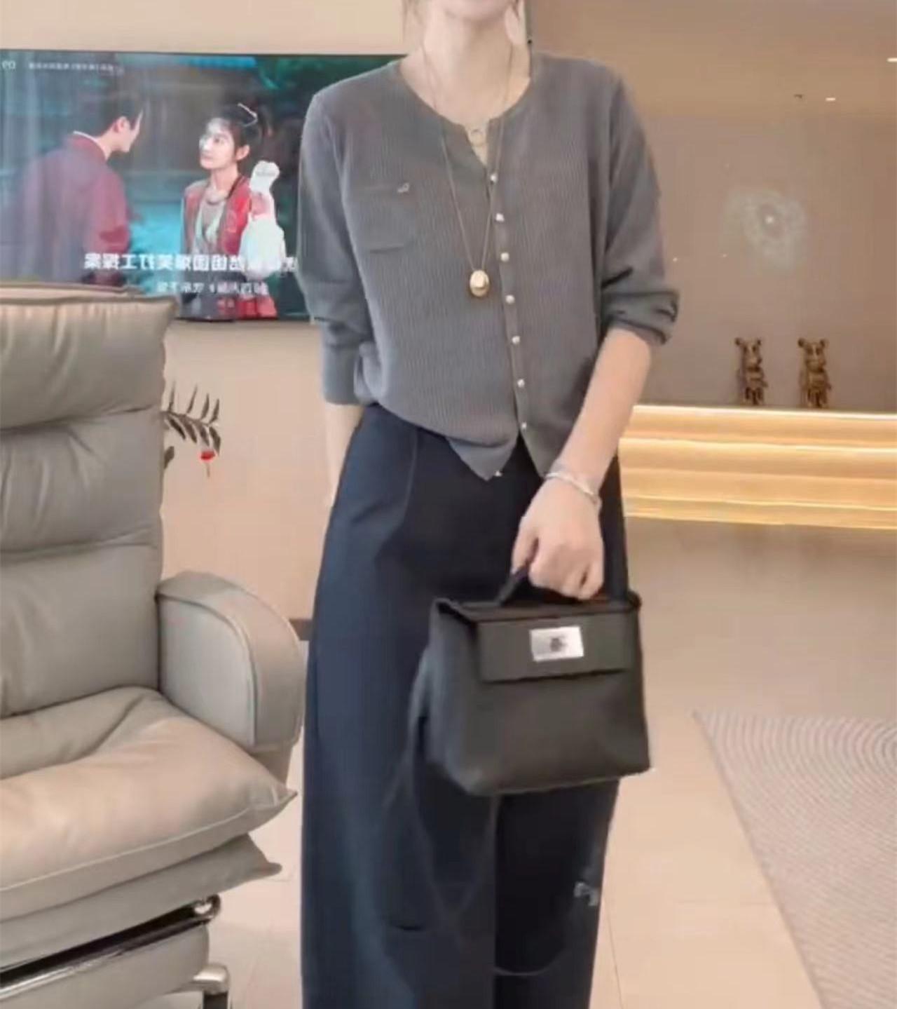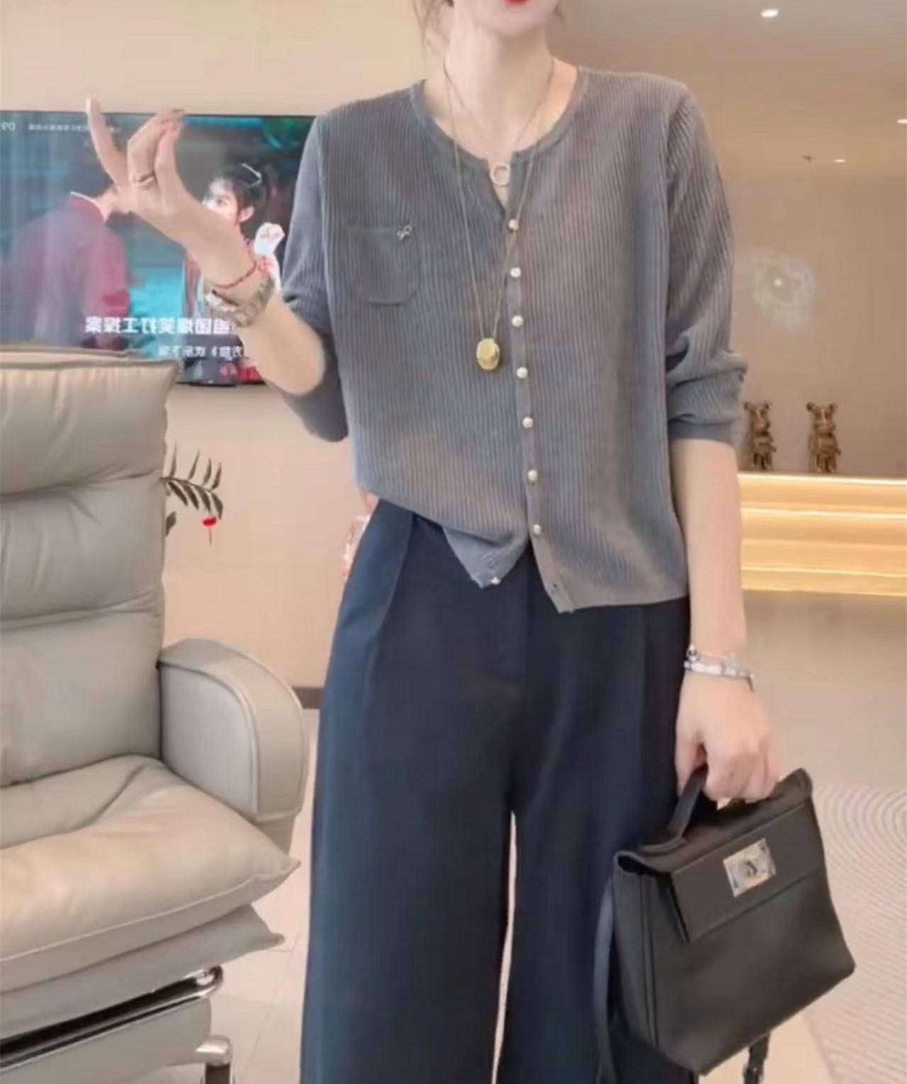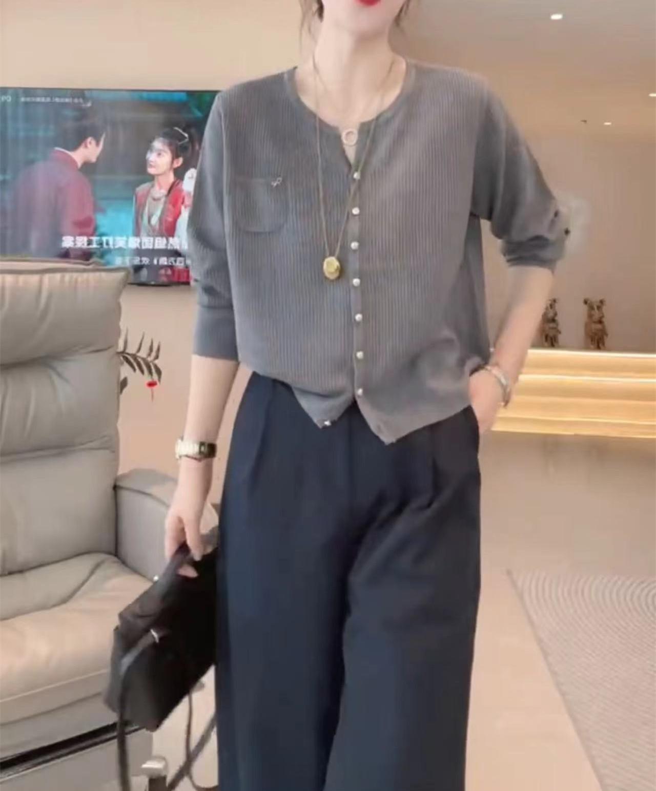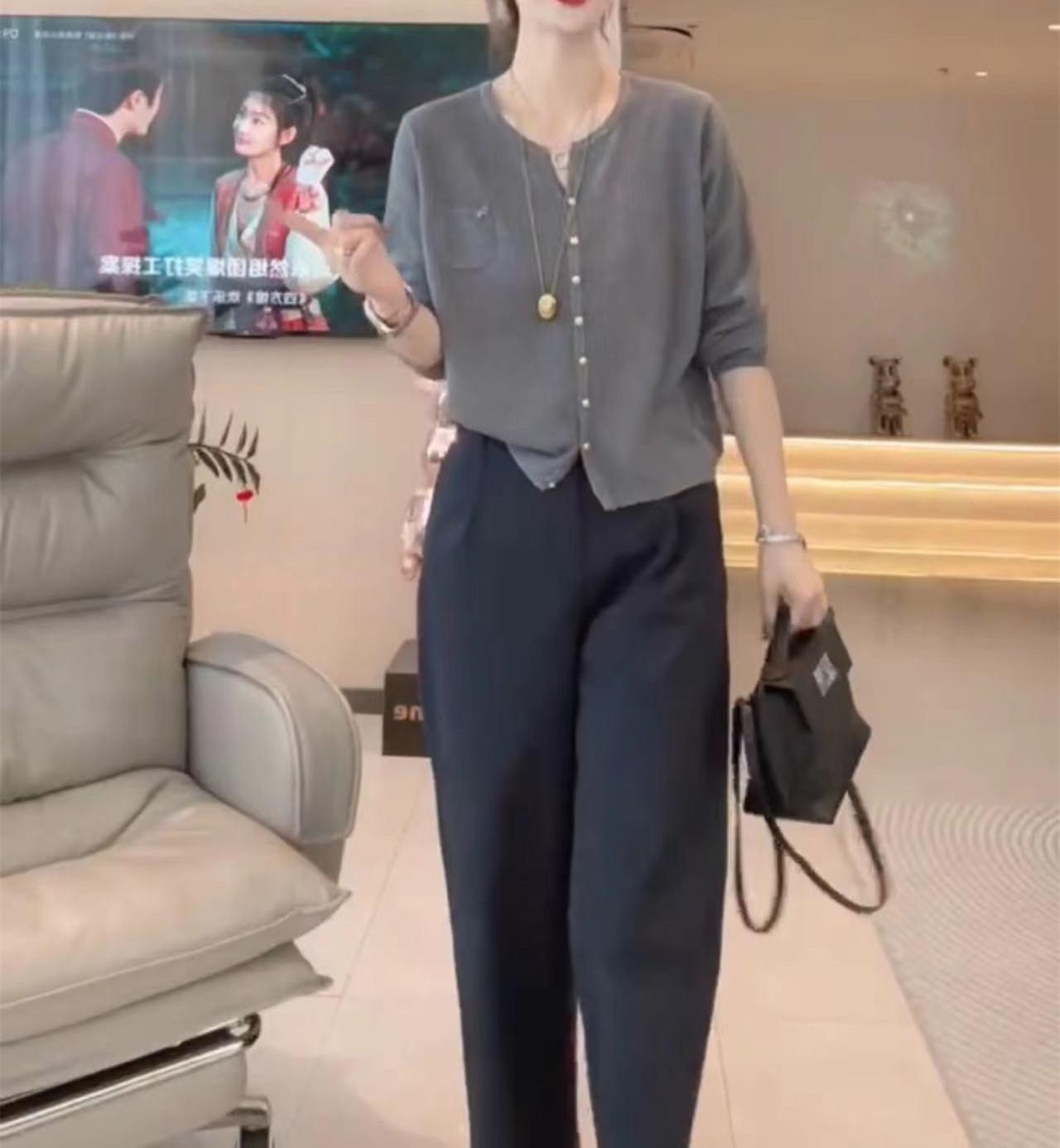Gray top, Navy blue pants, Gray top + navy blue pants