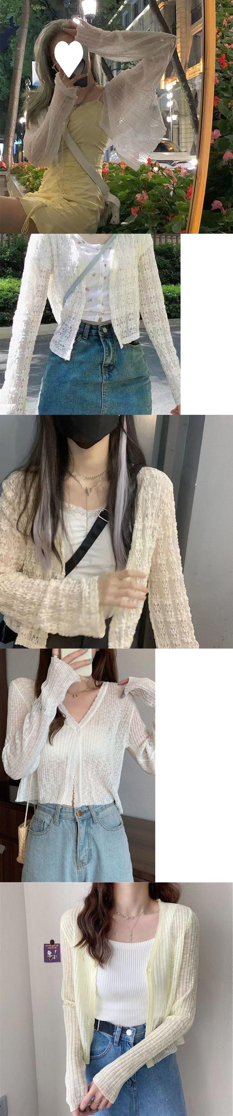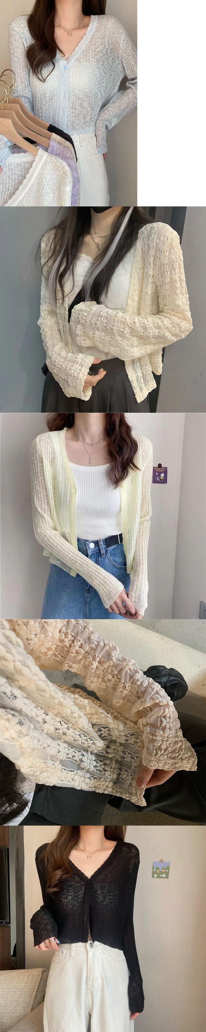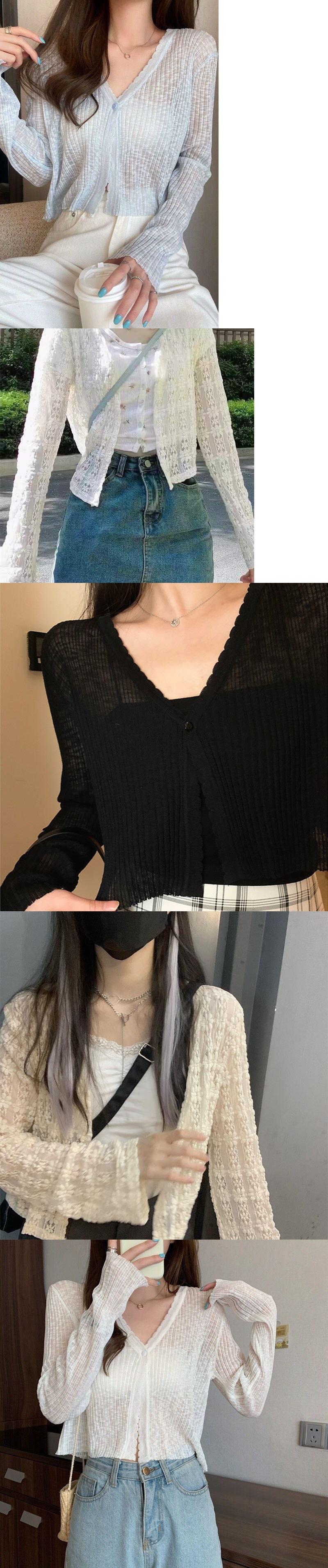 Light apricot lace single button sun protection clothing, Light blue lace single button sun protection clothin...