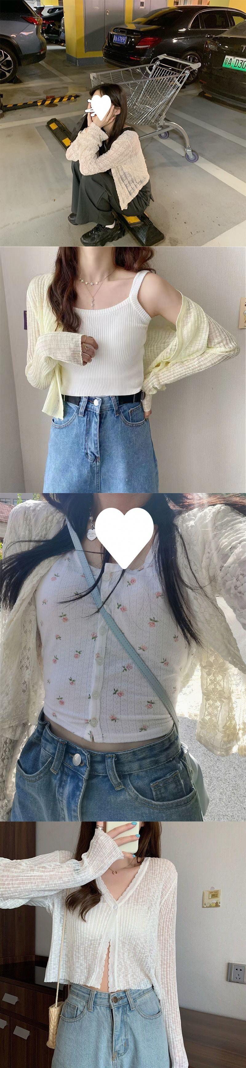 White lace single button sun protection clothing