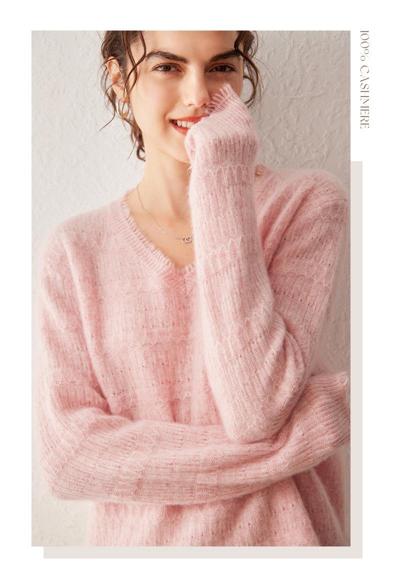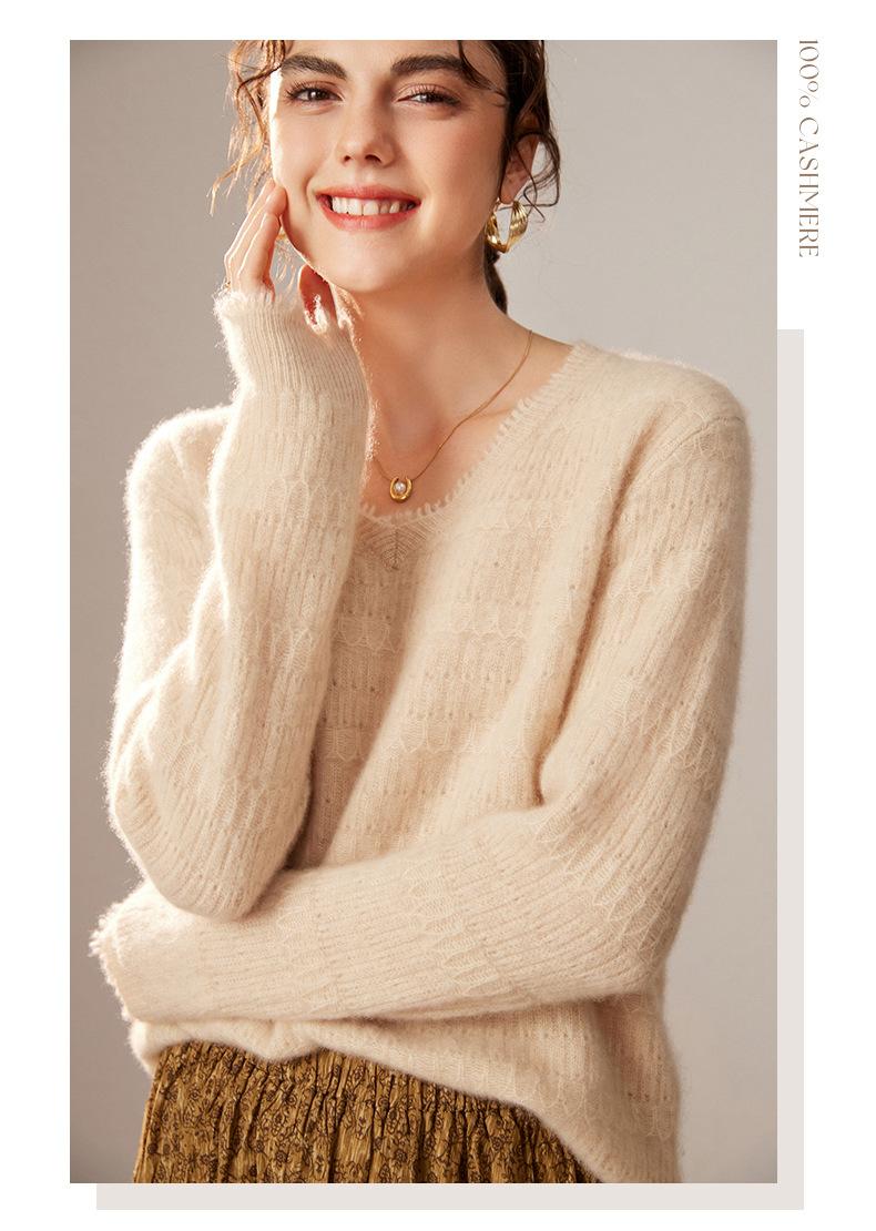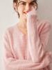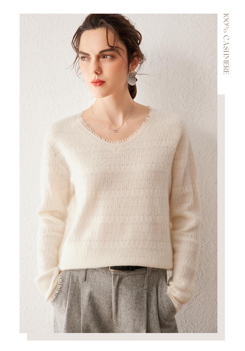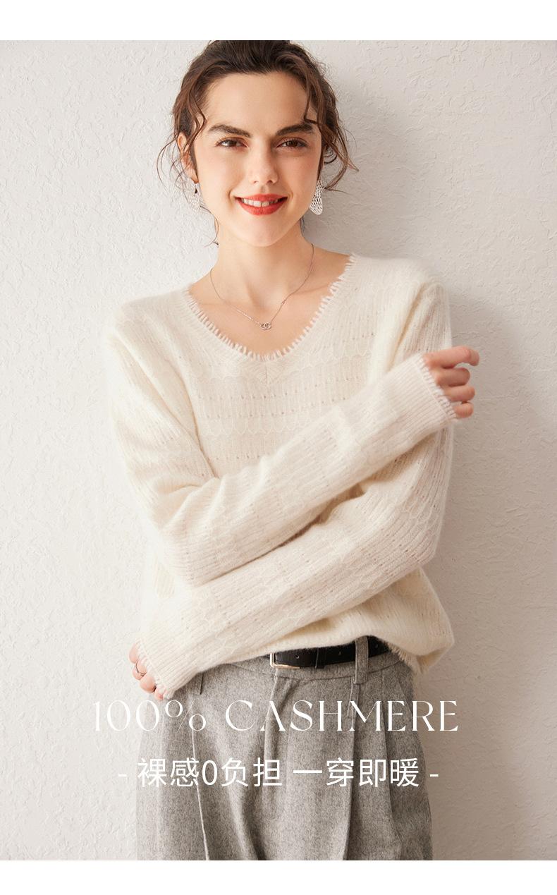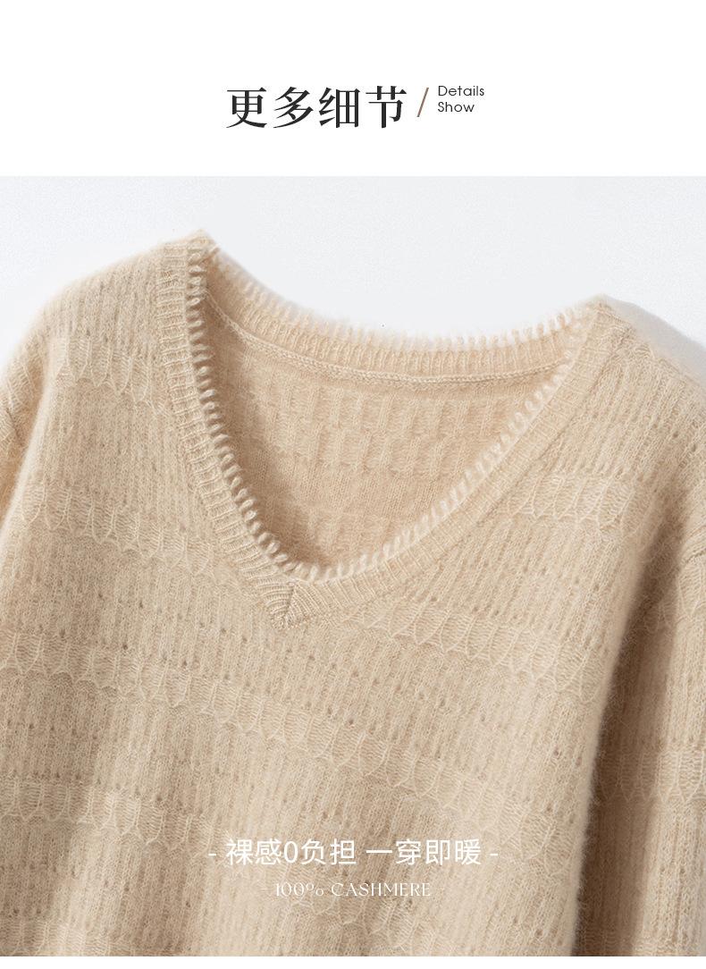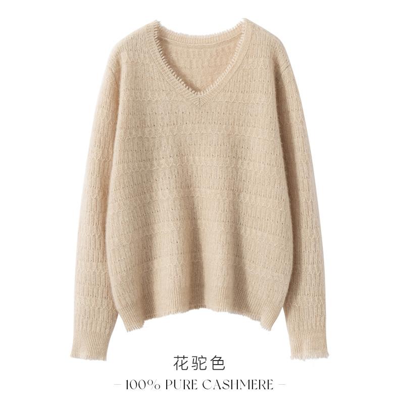 Suéter de cachemira pura de montaña de doble espesor para mujer, cuello en V, otoño e invierno, nuevo jersey de jacquard con borlas, camisa de base de punto de manga larga