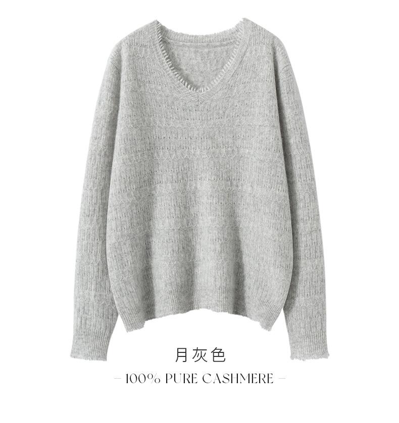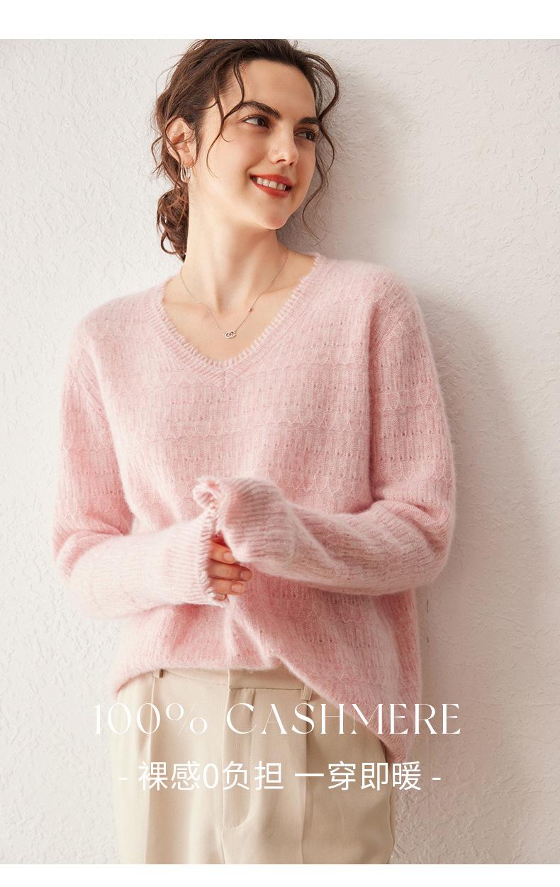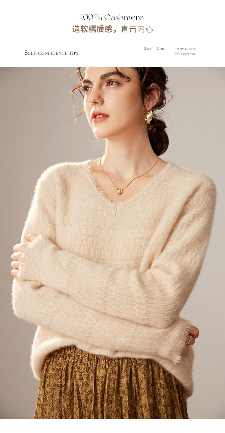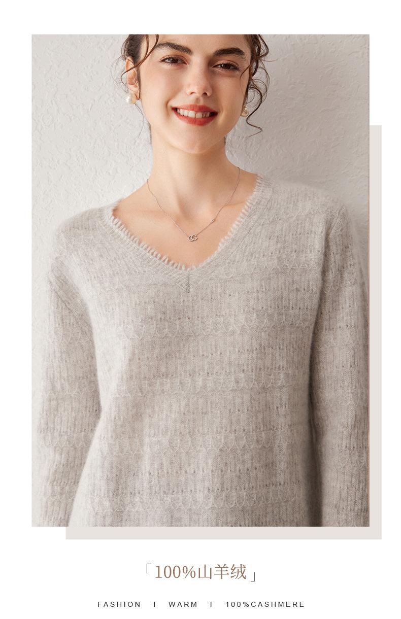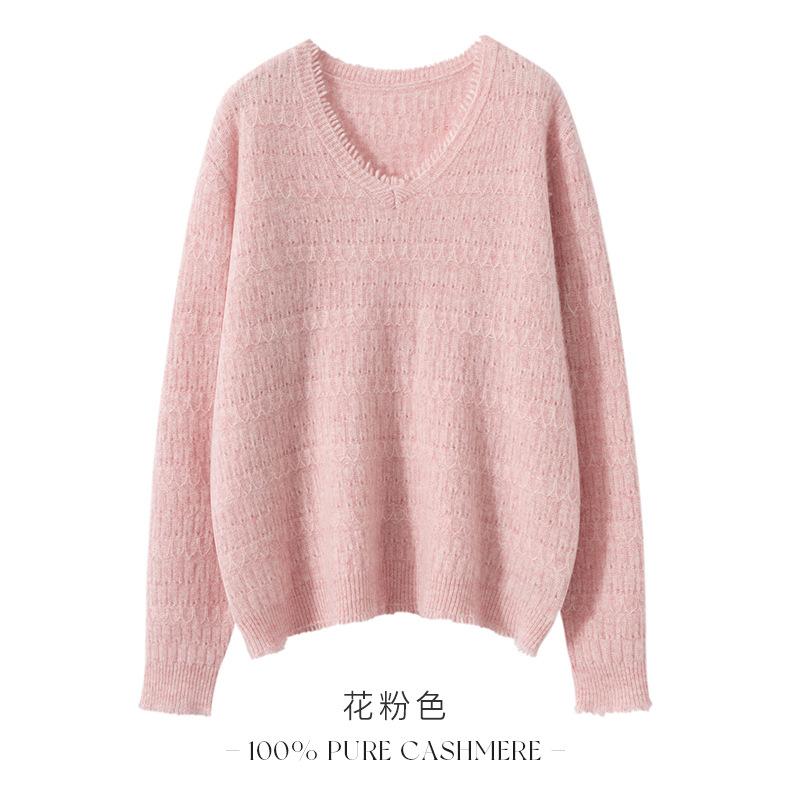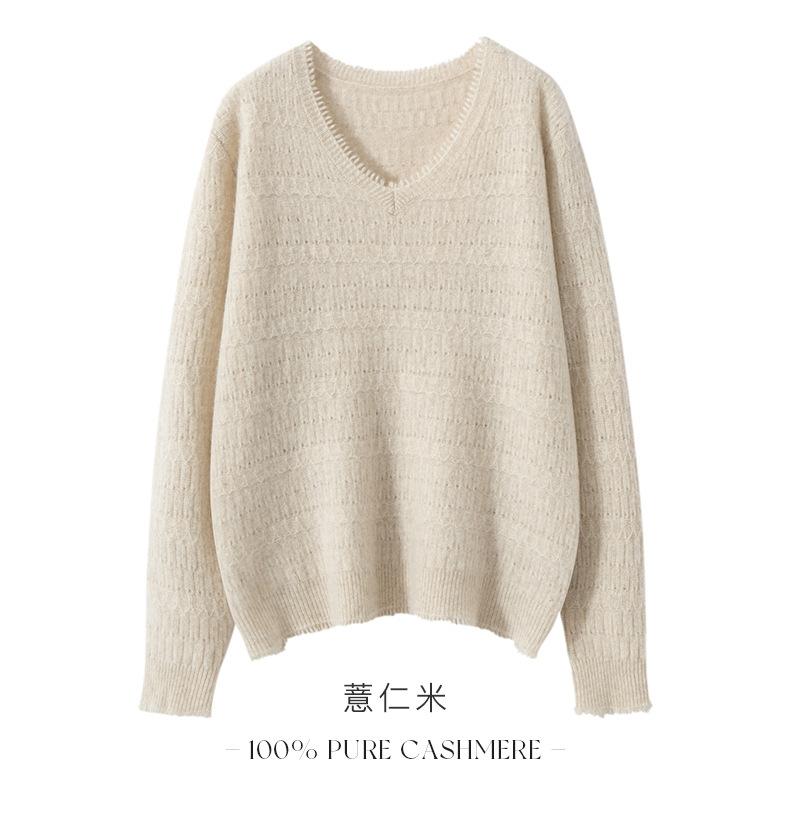 Suéter de cachemira pura de montaña de doble espesor para mujer, cuello en V, otoño e invierno, nuevo jersey de jacquard con borlas, camisa de base de punto de manga larga