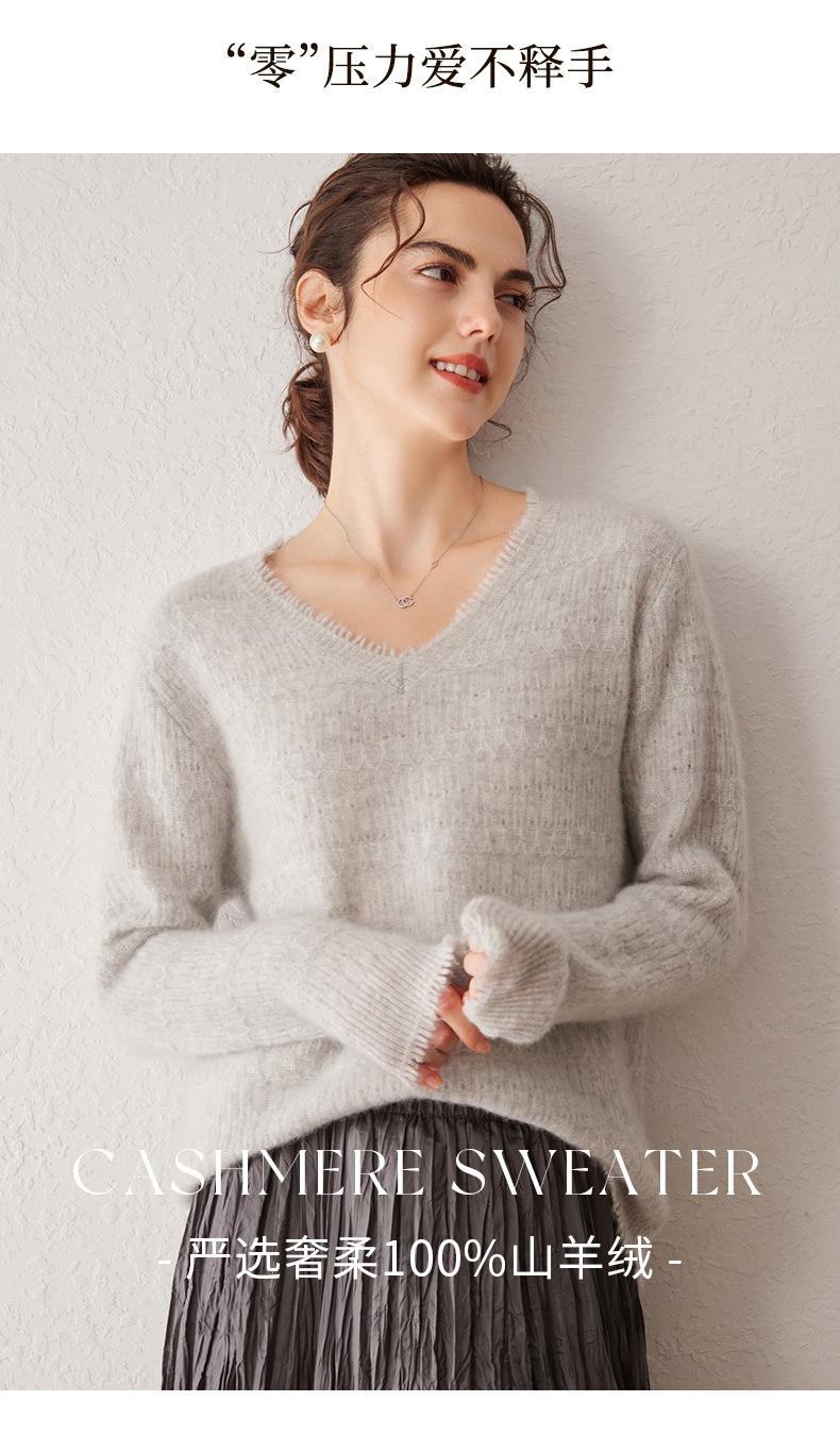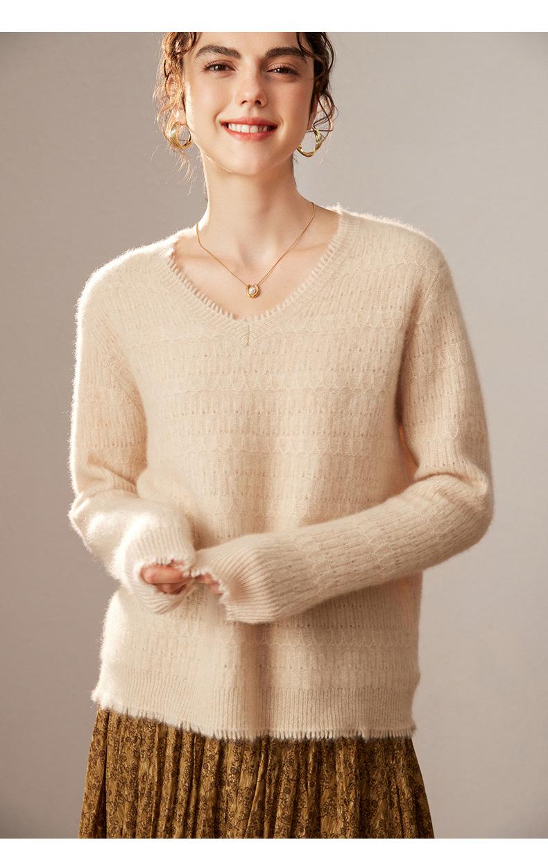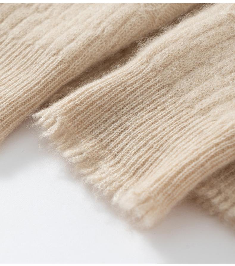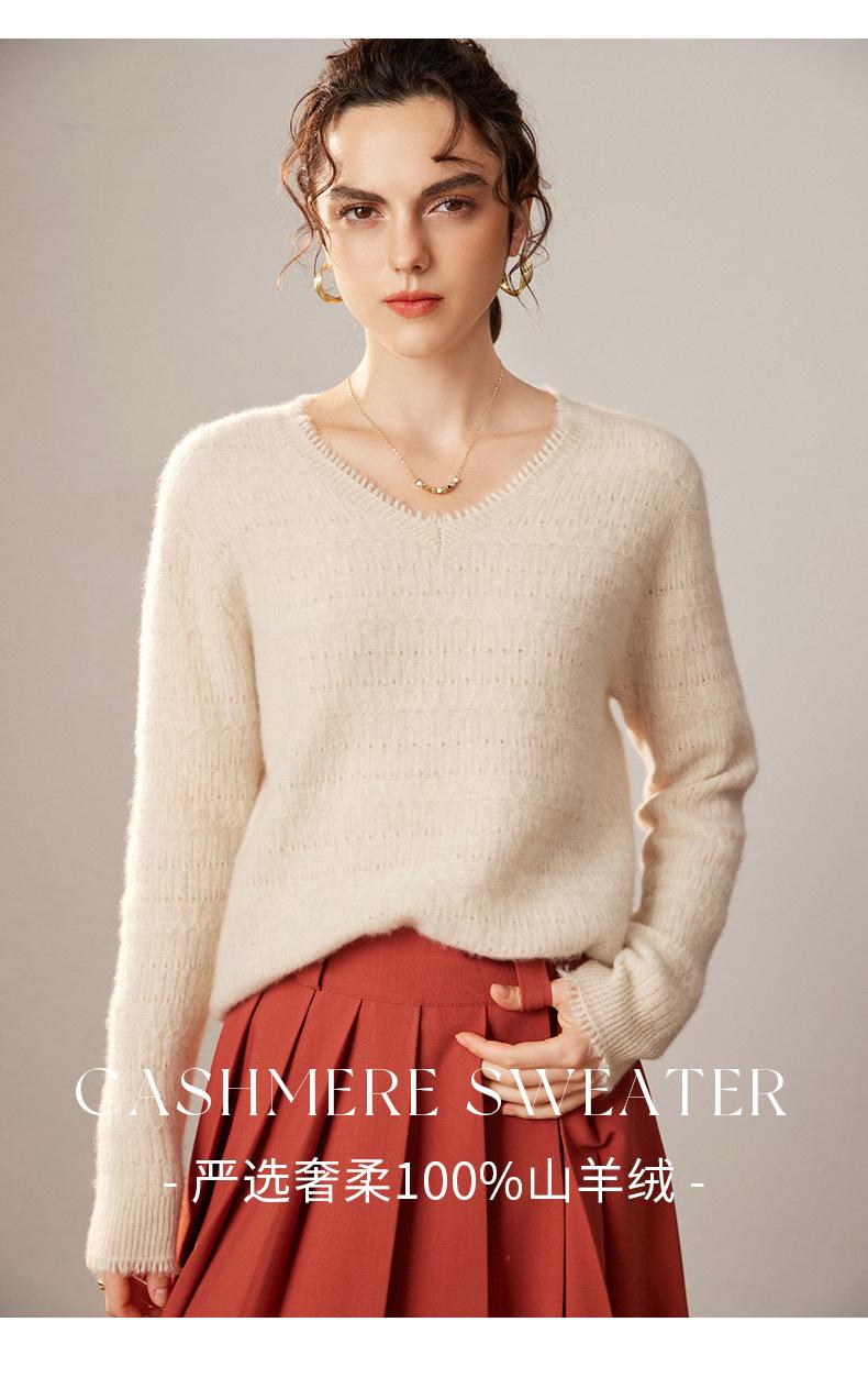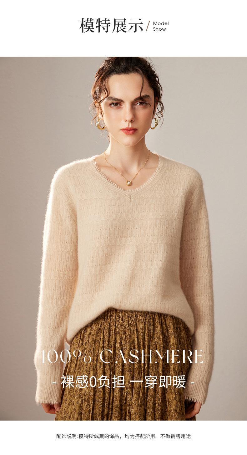 Suéter de cachemira pura de montaña de doble espesor para mujer, cuello en V, otoño e invierno, nuevo jersey de jacquard con borlas, camisa de base de punto de manga larga