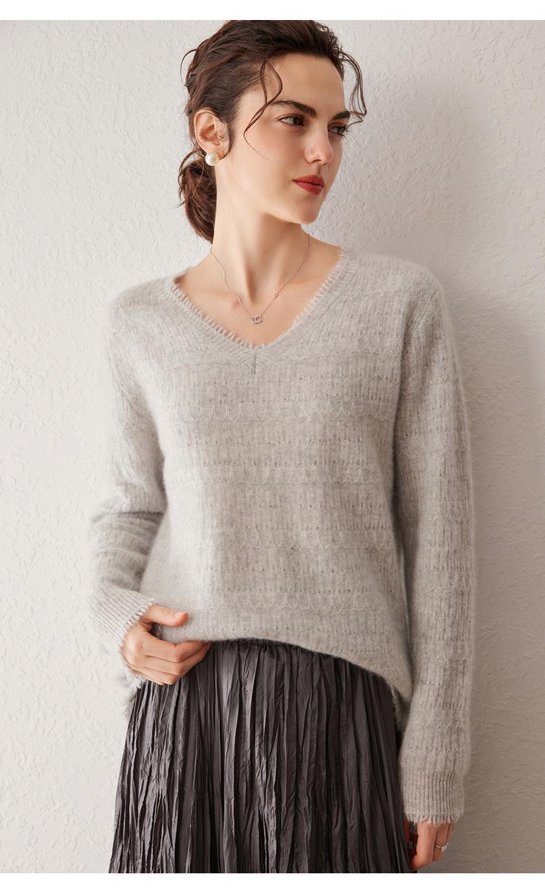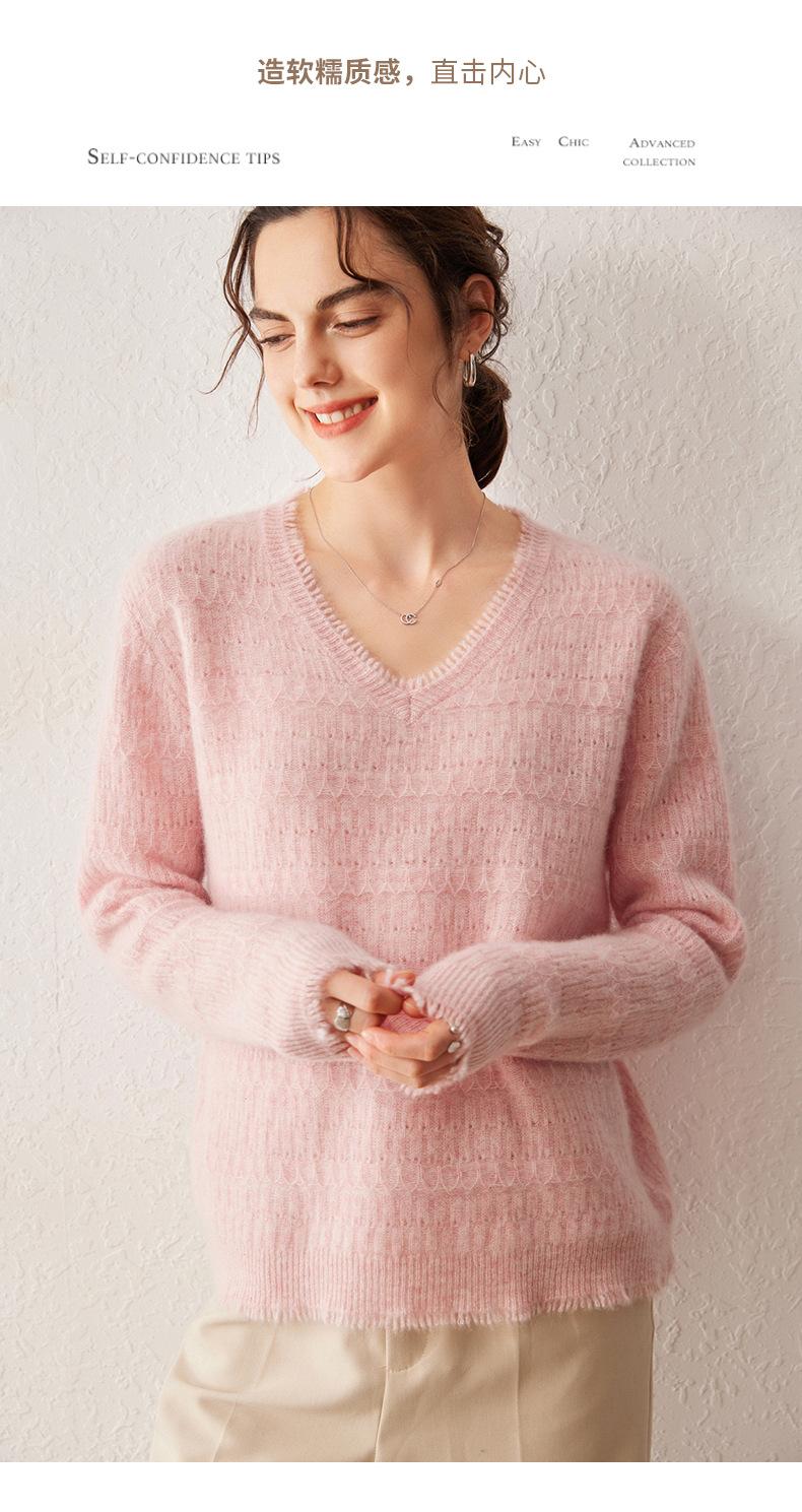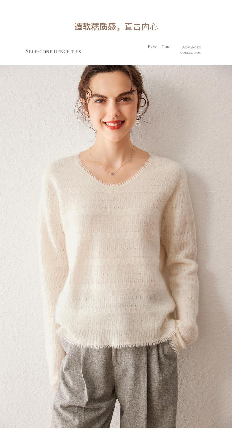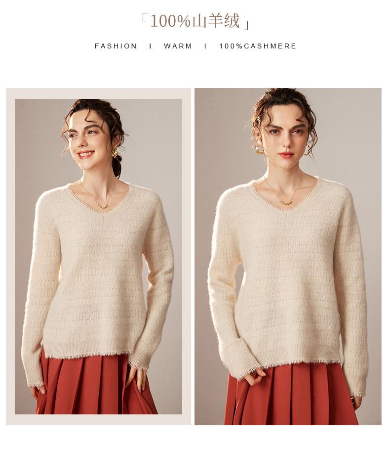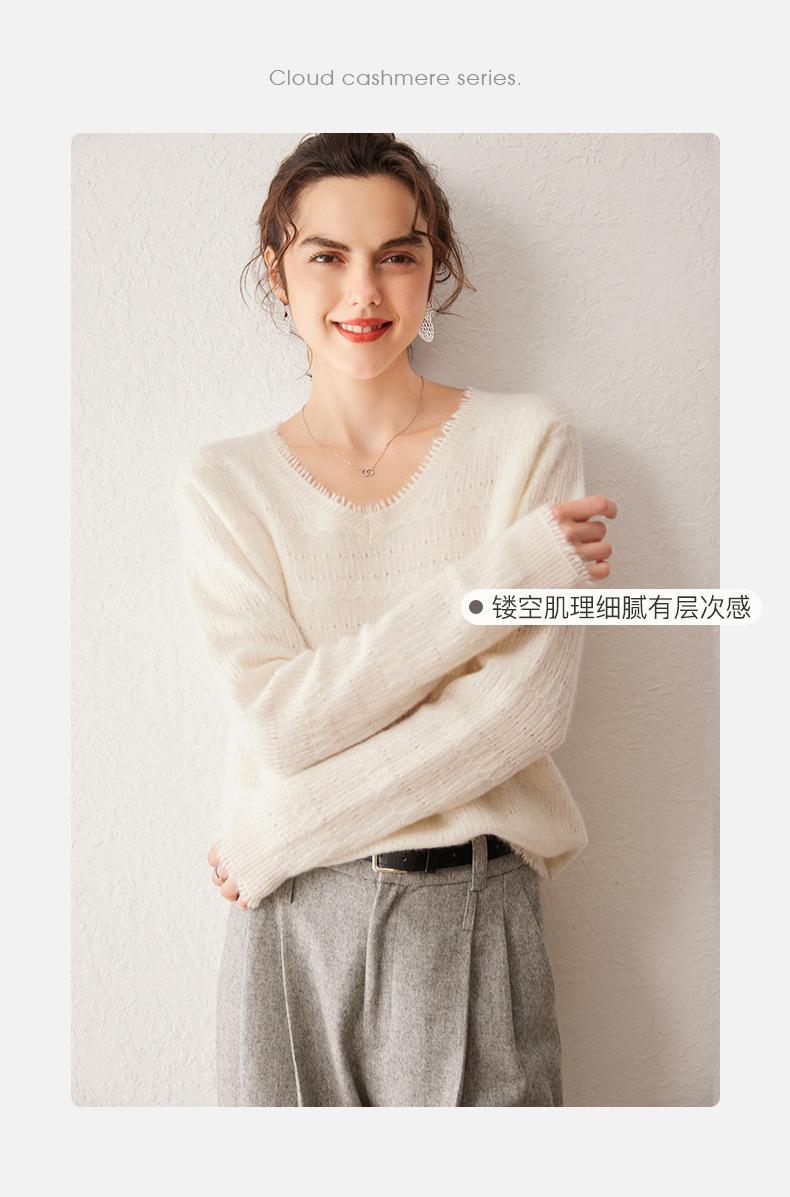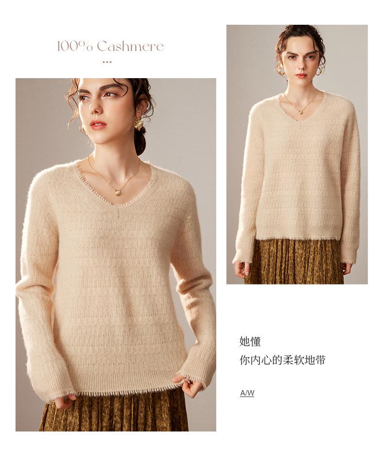 Suéter de cachemira pura de montaña de doble espesor para mujer, cuello en V, otoño e invierno, nuevo jersey de jacquard con borlas, camisa de base de punto de manga larga