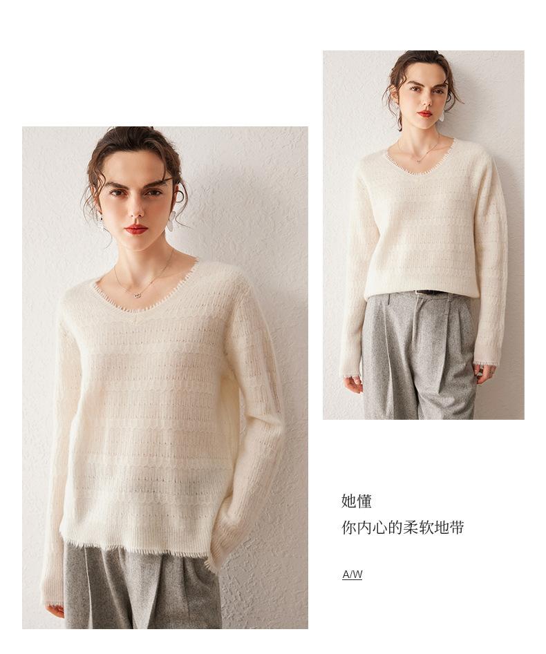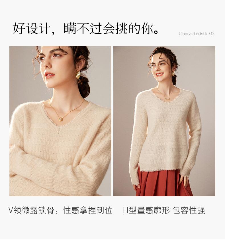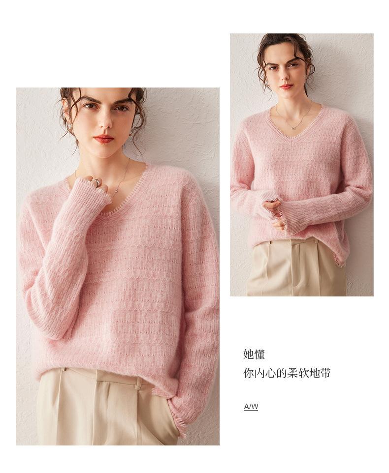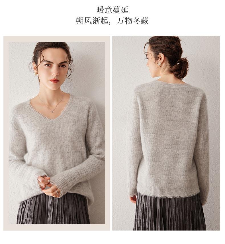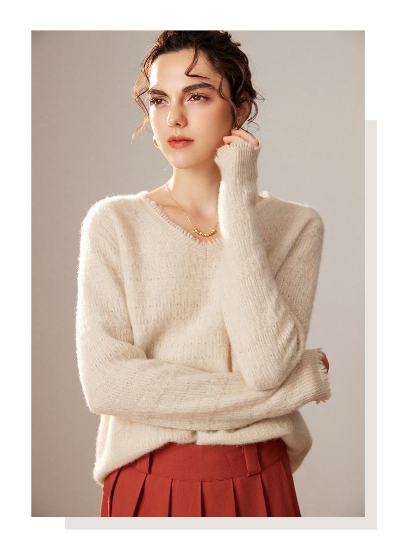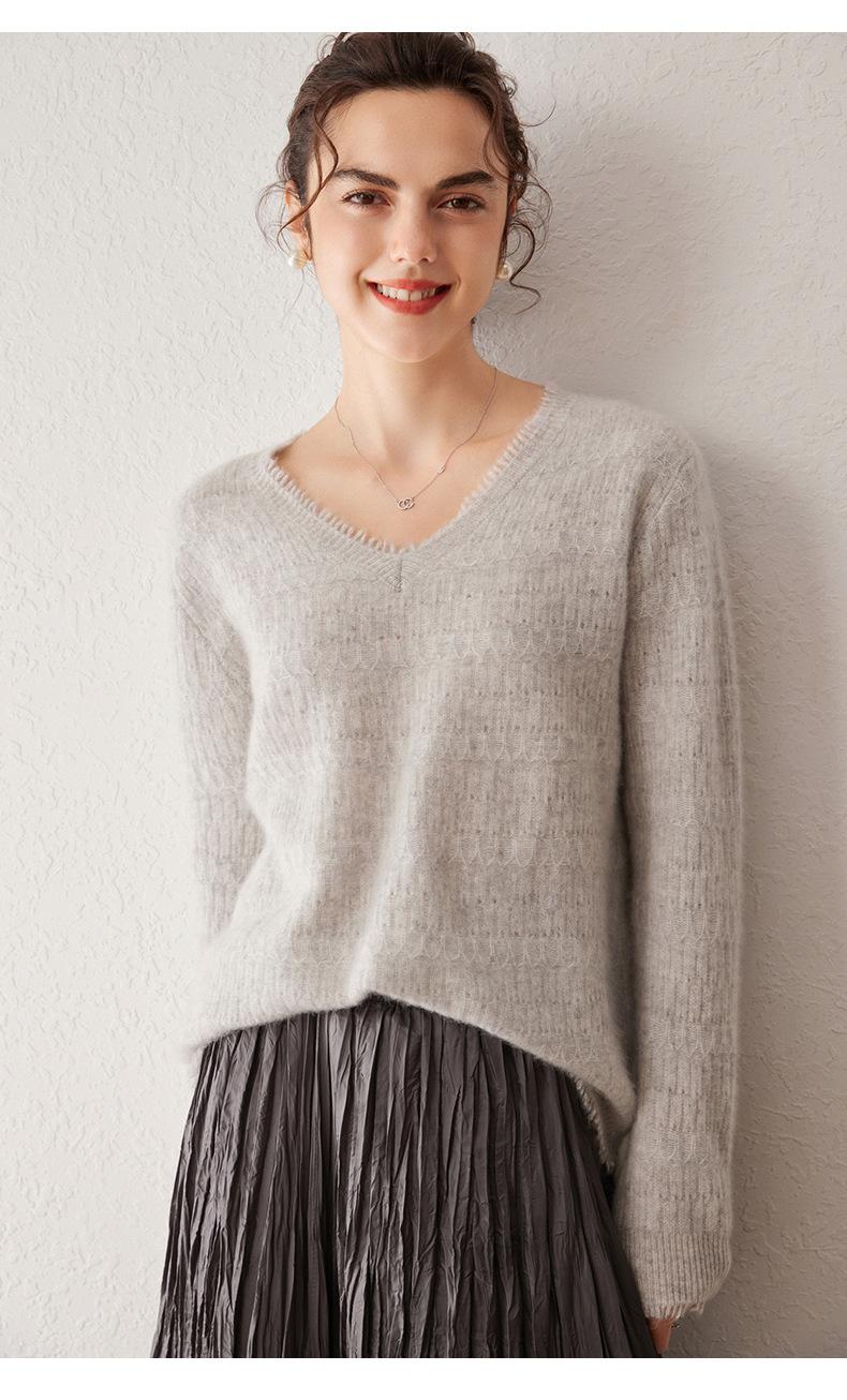 Suéter de cachemira pura de montaña de doble espesor para mujer, cuello en V, otoño e invierno, nuevo jersey de jacquard con borlas, camisa de base de punto de manga larga
