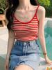 Camisola corta de punto a rayas para mujer, prenda exterior de verano, base interior ajustada, top de seda helada sin mangas para chica sexy
