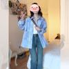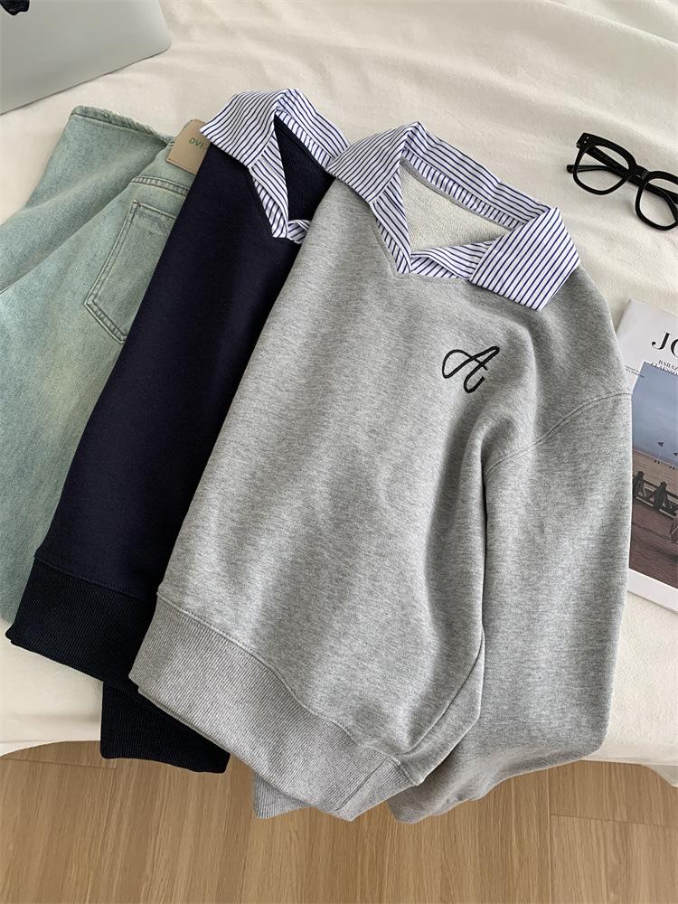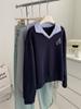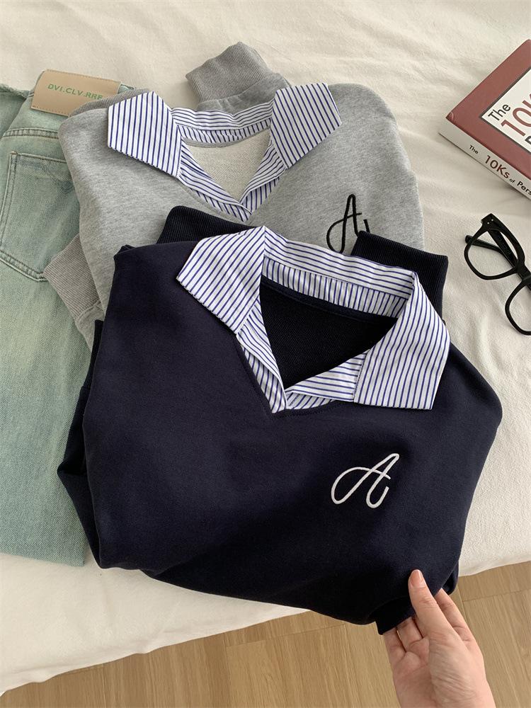 Camisa a rayas estilo universitario antiedad, suéter con solapa, sudadera holgada para mujer, estilo coreano, blusa bordada a la moda con cuello en V para otoño
