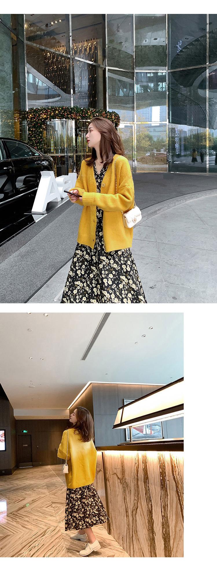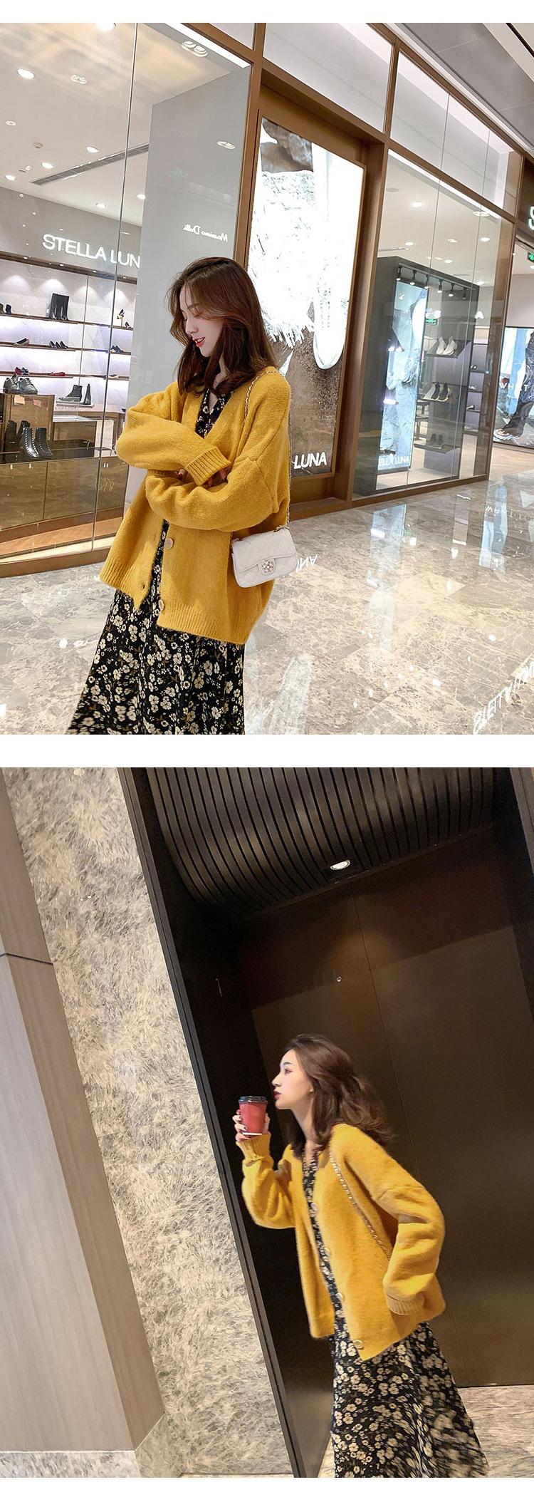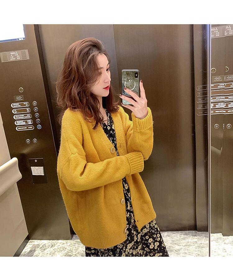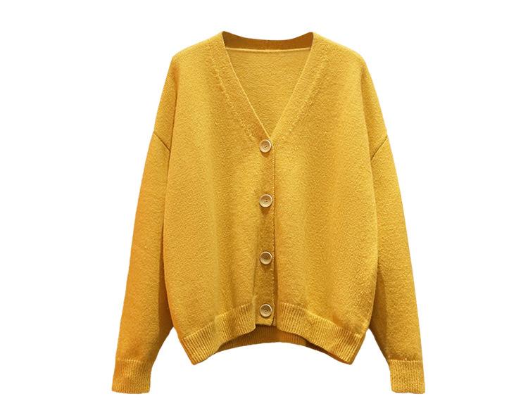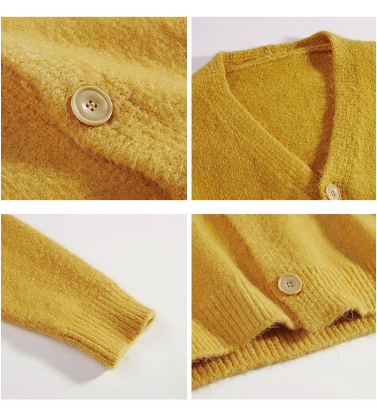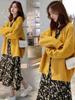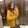 Suéter suelto amarillo tipo cárdigan 2024, nuevo abrigo de punto para mujer de otoño e invierno de alta gama.