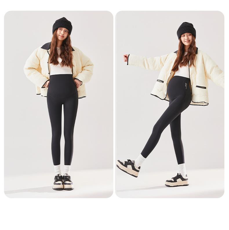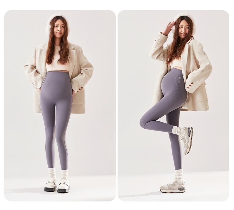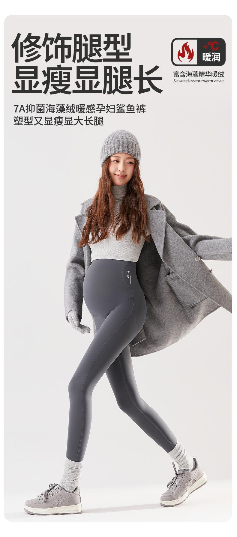 Nuevos Leggings de Maternidad con Forro Polar para Otoño e Invierno, Alta Elasticidad, Pantalones de Yoga Sin Costuras para Exterior, Transpirables, Pantalones Gruesos tipo Tiburón con Soporte para el Vientre