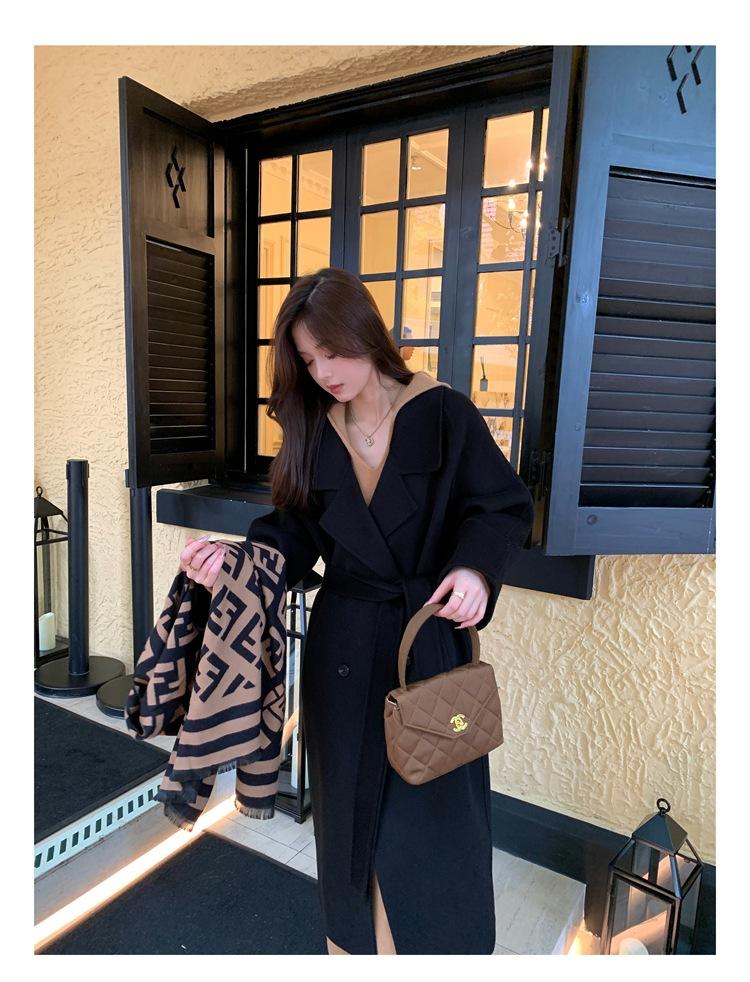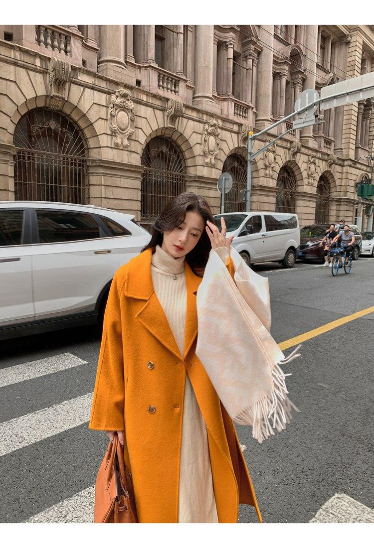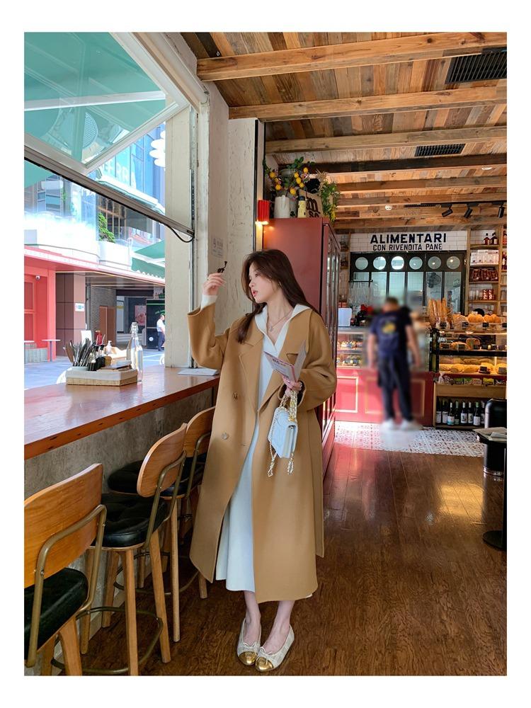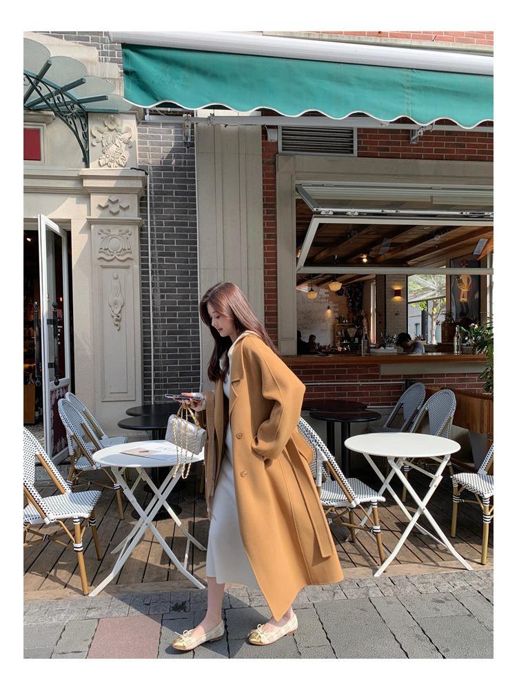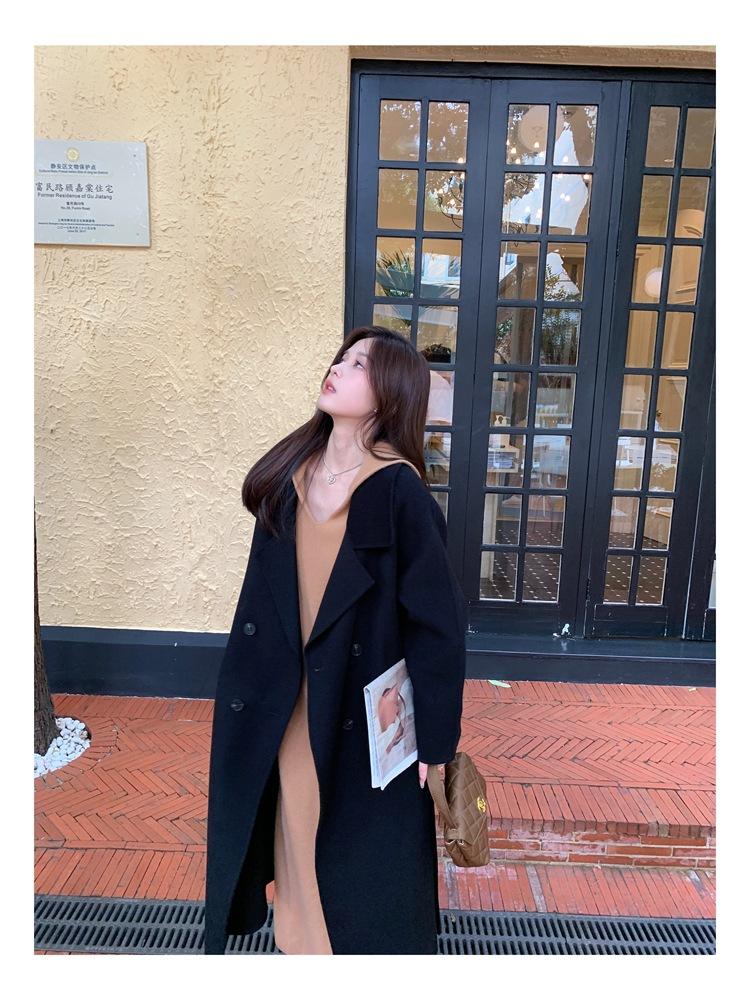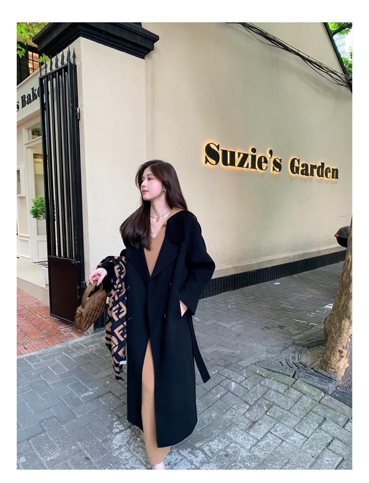 Abrigo elegante de cachemira 10% de doble cara estilo coreano para otoño e invierno, abrigo de lana holgado con forro para mujer