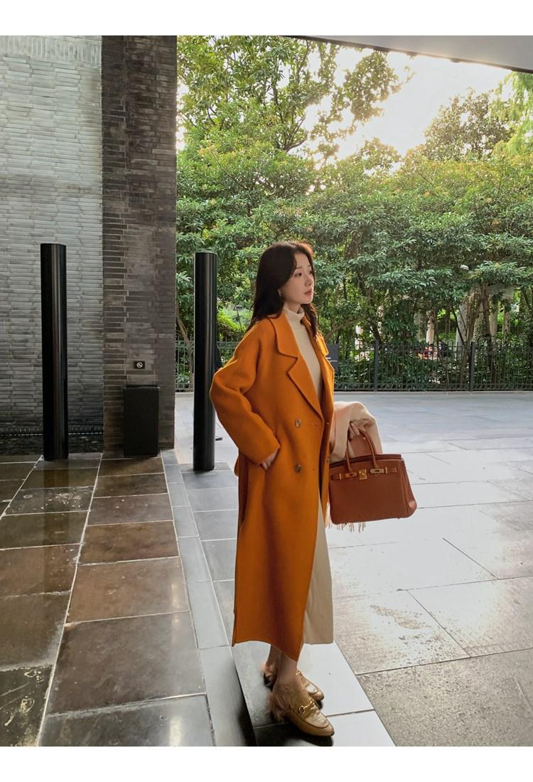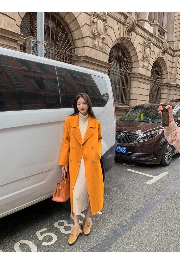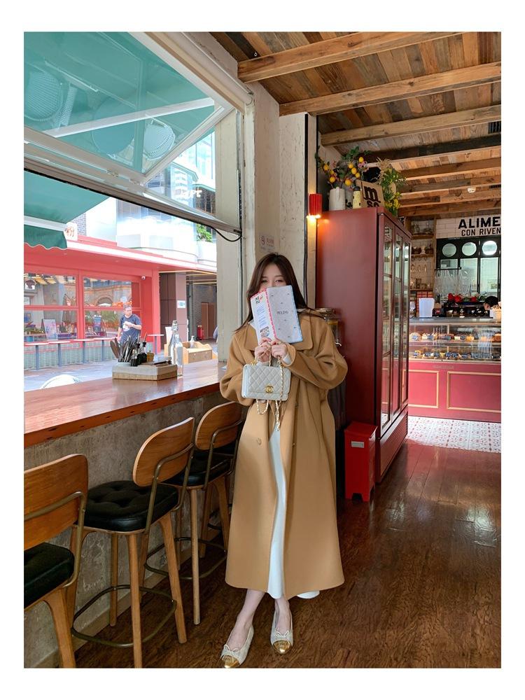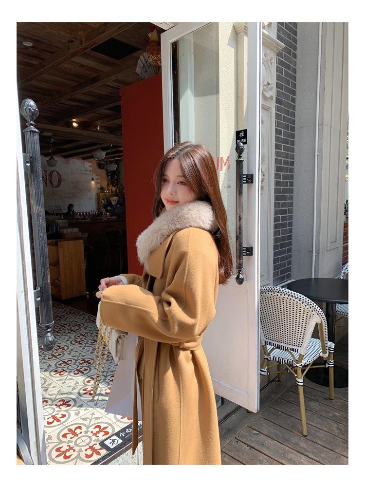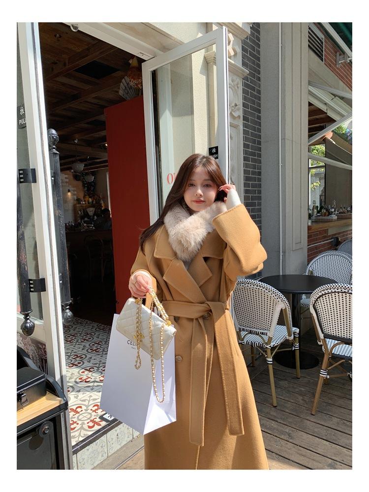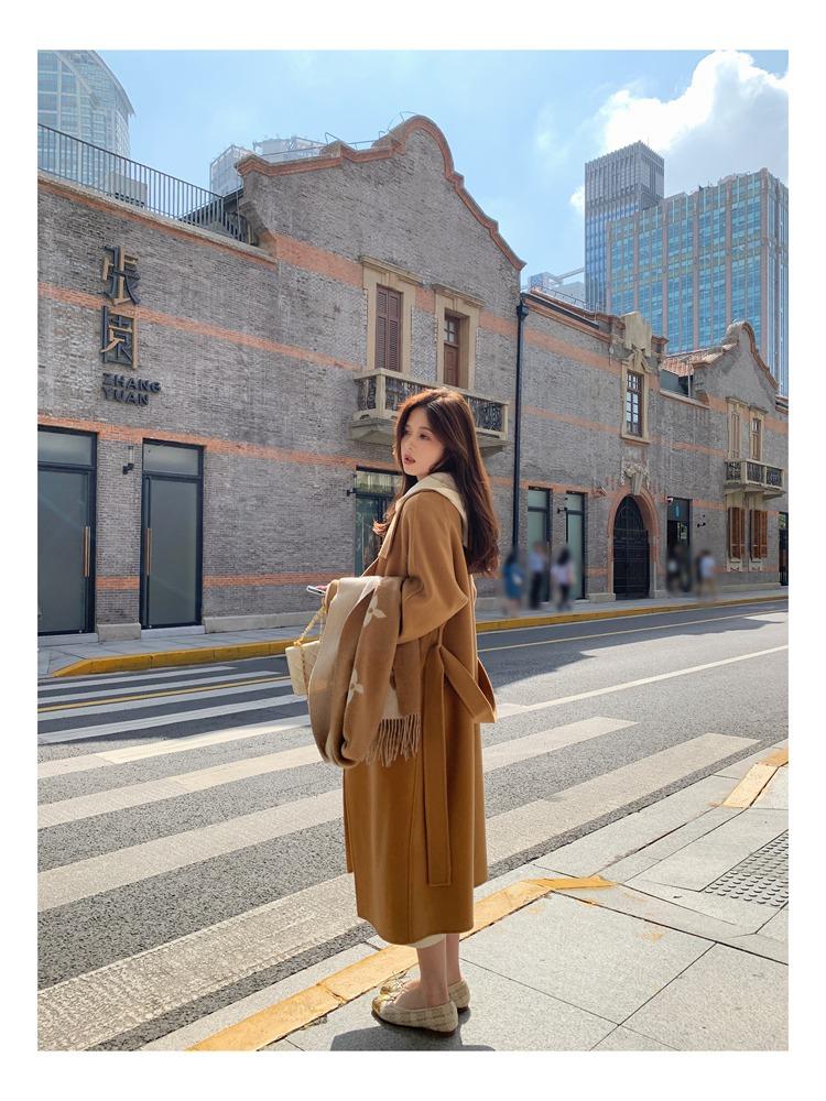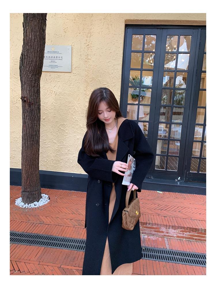 Abrigo elegante de cachemira 10% de doble cara estilo coreano para otoño e invierno, abrigo de lana holgado con forro para mujer