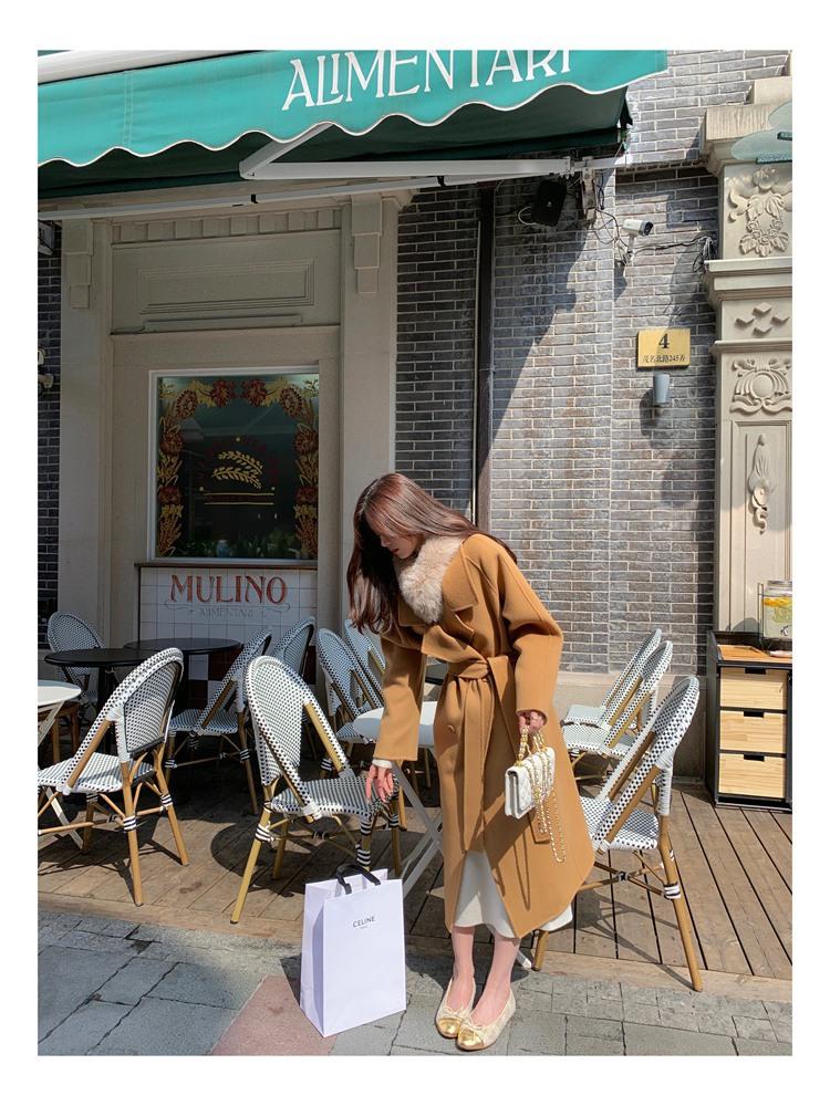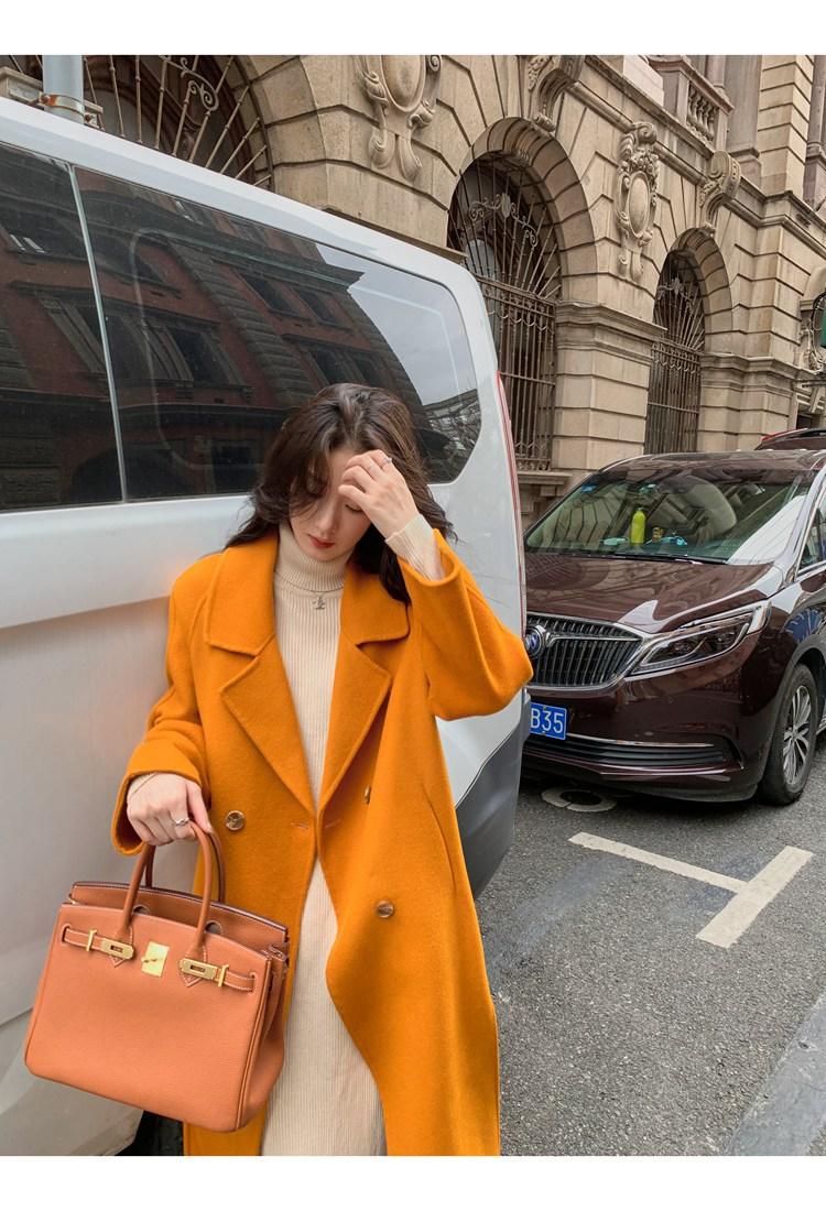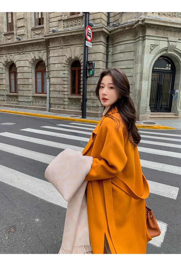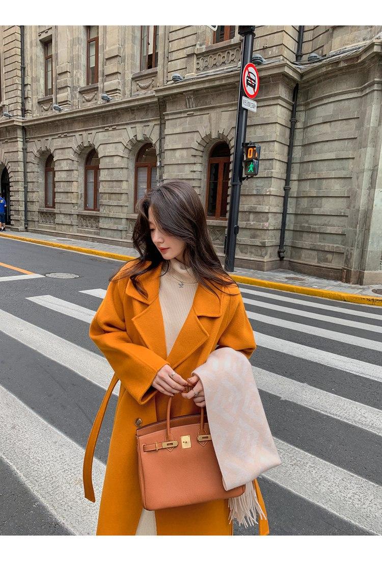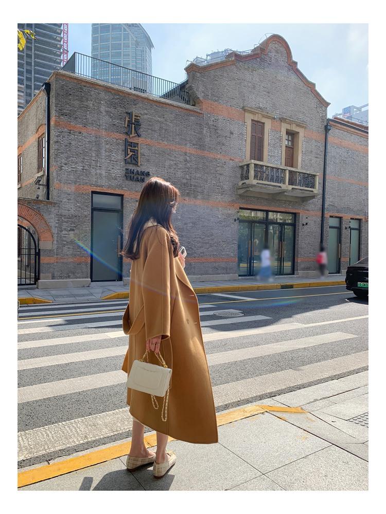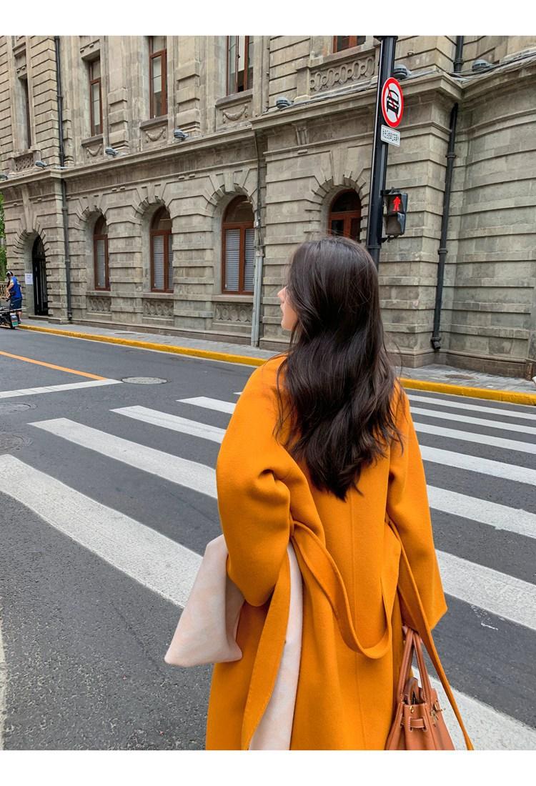 Abrigo elegante de cachemira 10% de doble cara estilo coreano para otoño e invierno, abrigo de lana holgado con forro para mujer