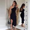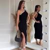 2024 Verano Nuevo Europeo y Americano Transfronterizo Amazon Transfronterizo de Mujer Estilo Dulce y Hot Cuello Inclinado Sin Mangas Sexy Falda de Cadera