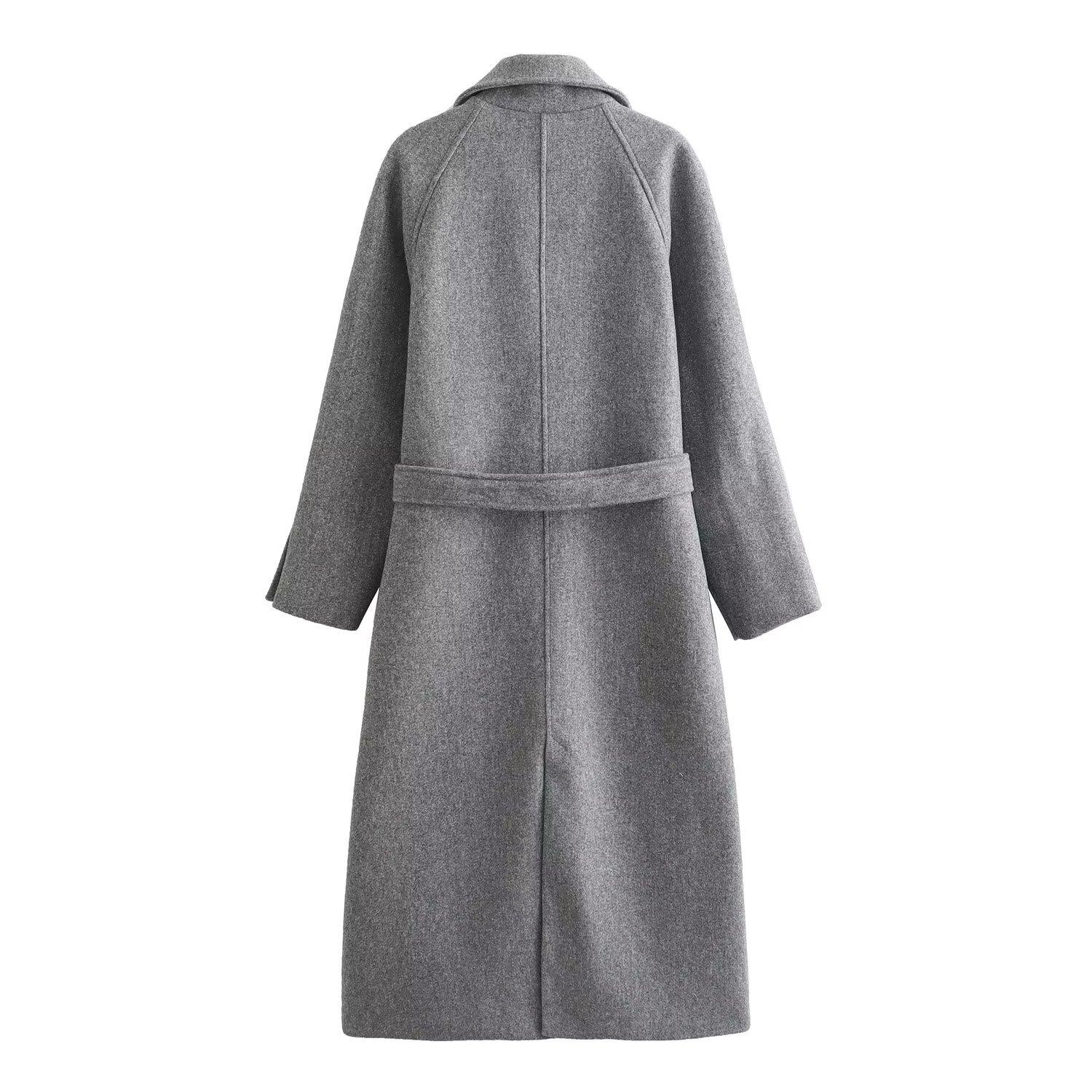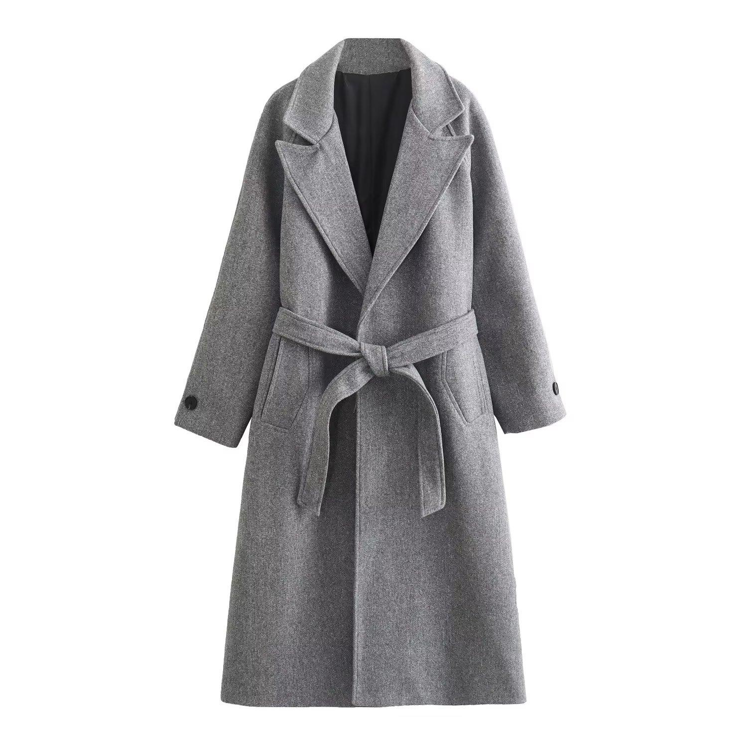 Amazon comercio exterior transfronterizo ropa de mujer europea y americana 2024 otoño e invierno nuevo abrigo largo de lana de moda urbana con cinturón