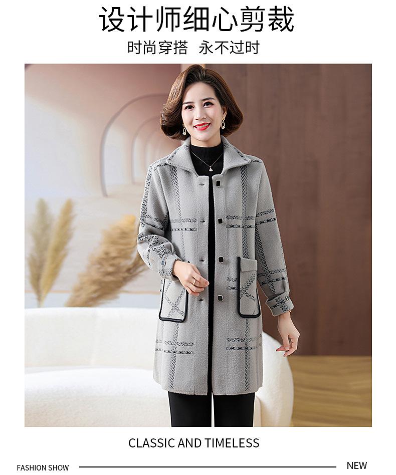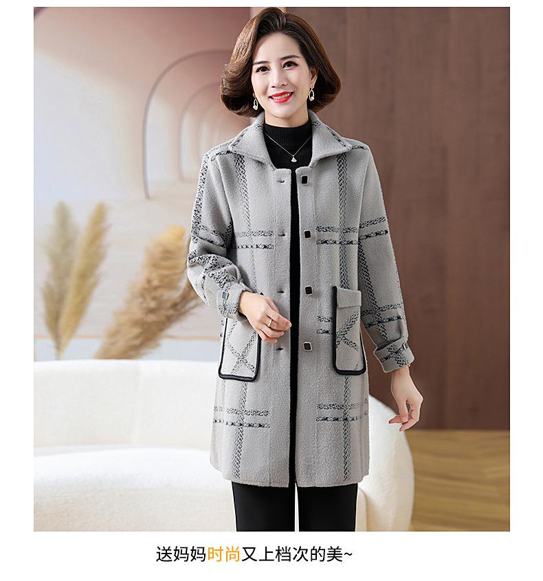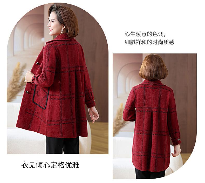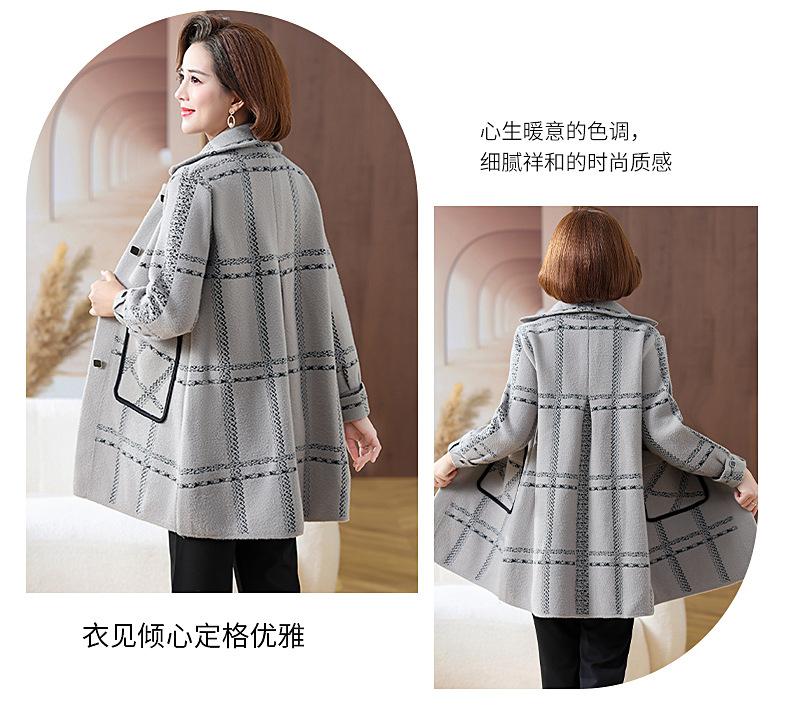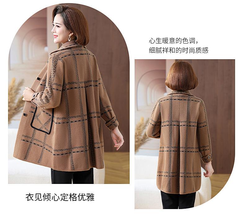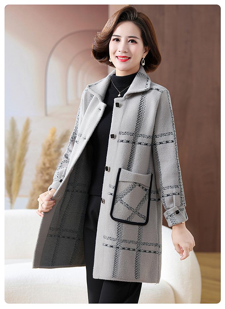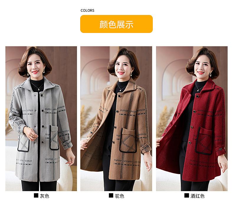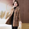 Otoño e Invierno Nueva Moda Estilo Occidental Casual Abrigo de Lana de Doble Cara de Visón Imitación para Madre Abrigo de Solapa a Cuadros de Largo Medio