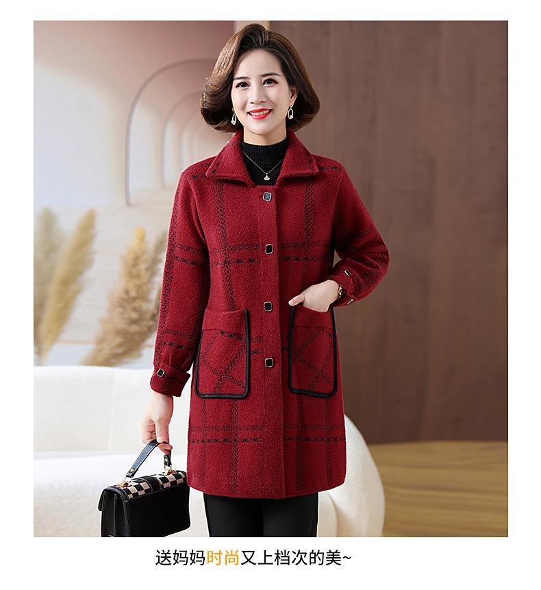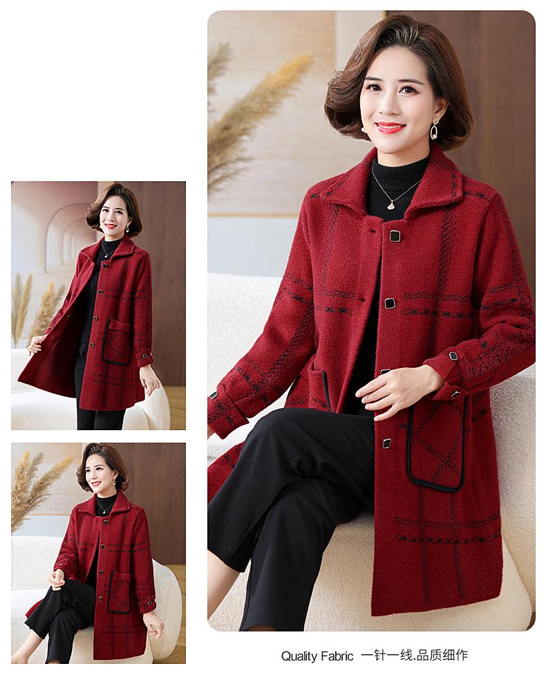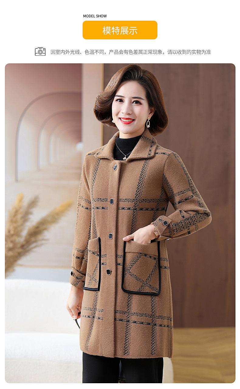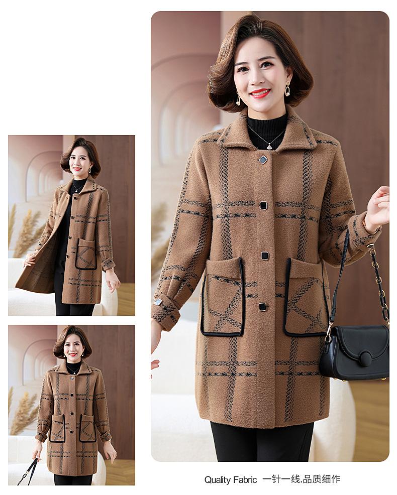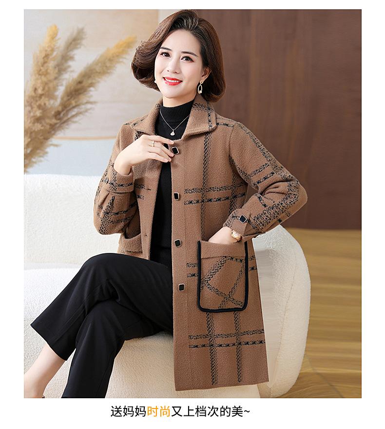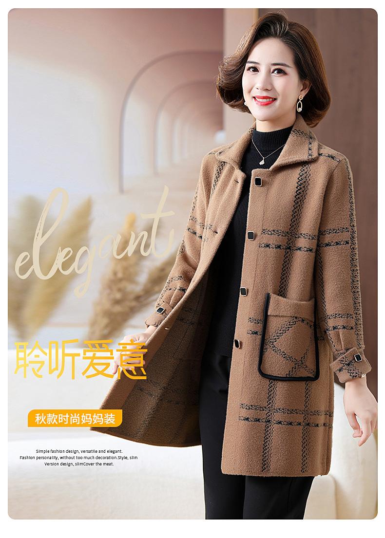 Otoño e Invierno Nueva Moda Estilo Occidental Casual Abrigo de Lana de Doble Cara de Visón Imitación para Madre Abrigo de Solapa a Cuadros de Largo Medio