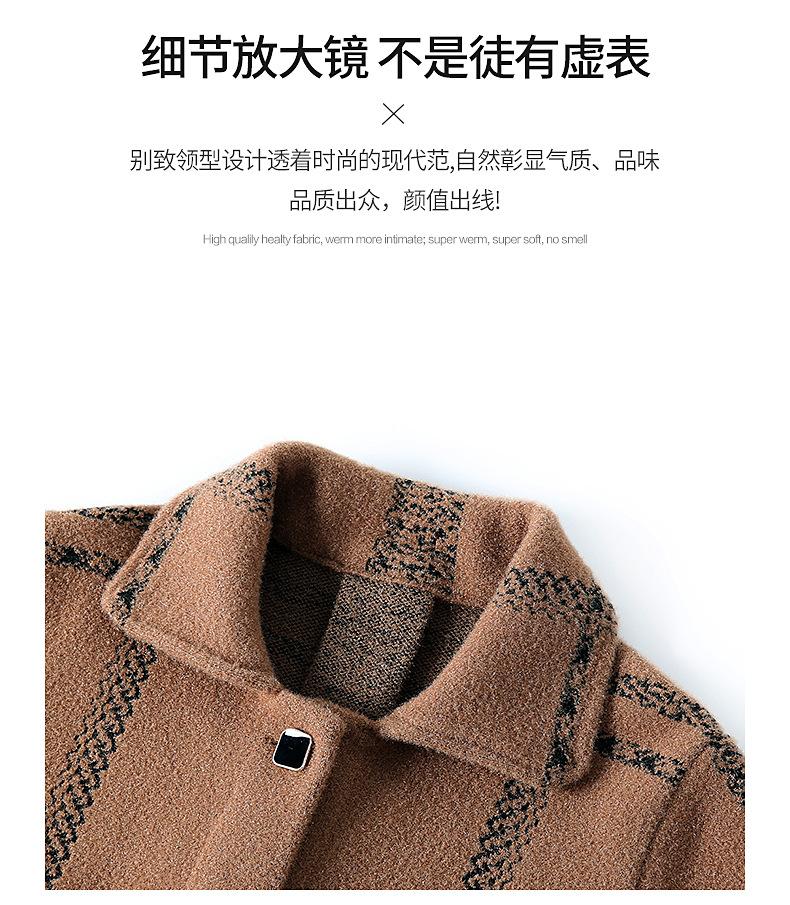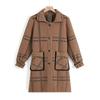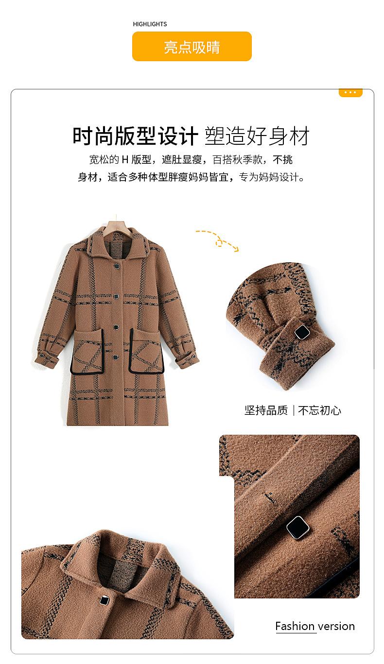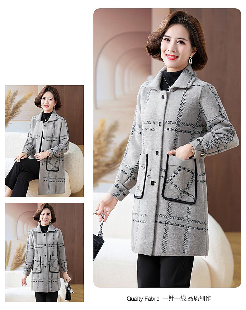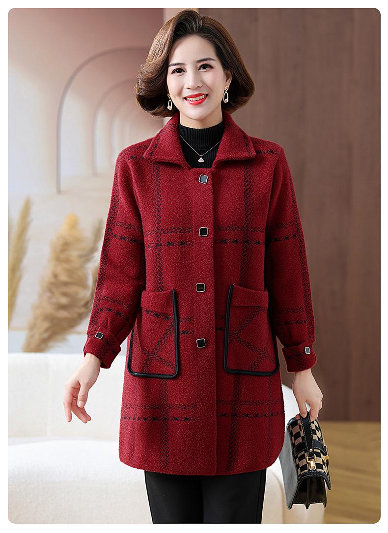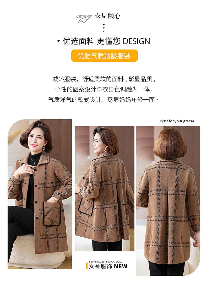 Otoño e Invierno Nueva Moda Estilo Occidental Casual Abrigo de Lana de Doble Cara de Visón Imitación para Madre Abrigo de Solapa a Cuadros de Largo Medio