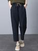 Pantalones vaqueros casuales para mujer, primavera y otoño 2024, nuevo estilo coreano, holgados, de talla grande, color sólido, con cordón, cintura recta.