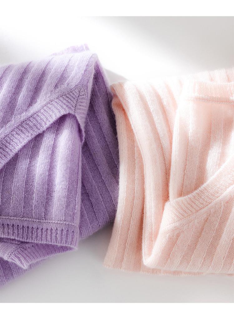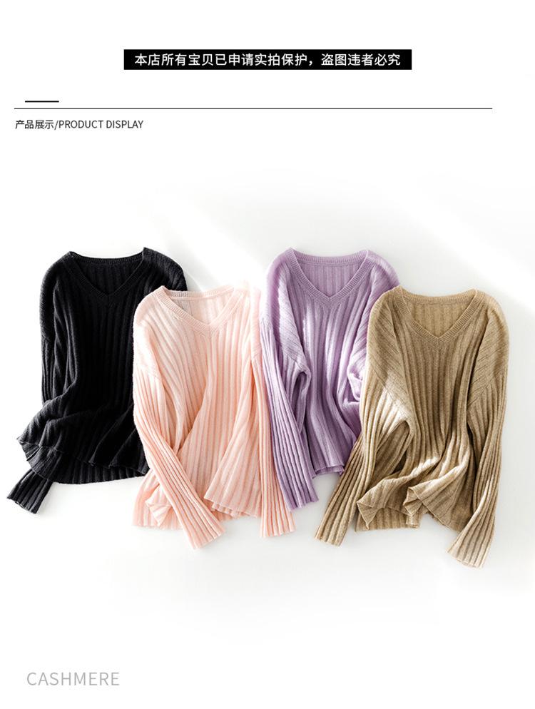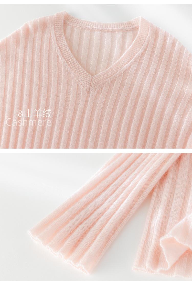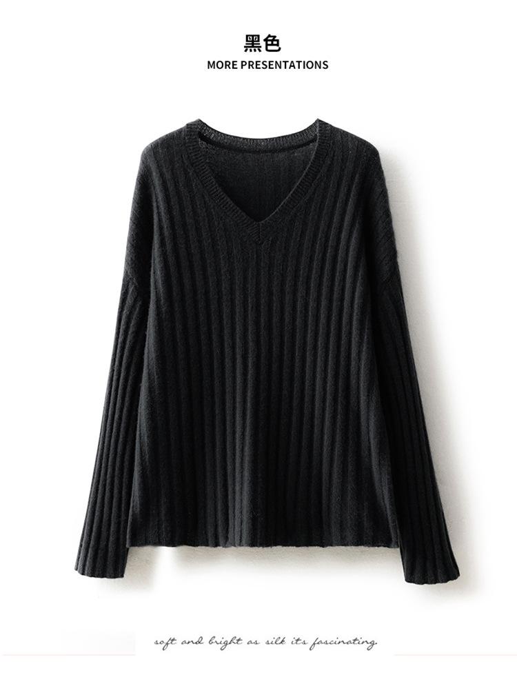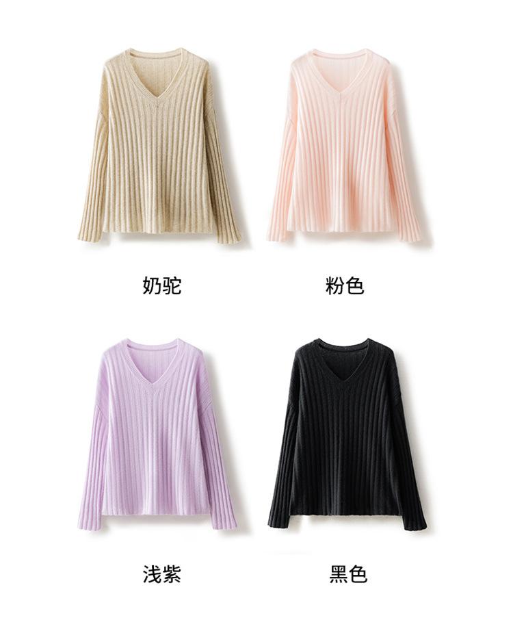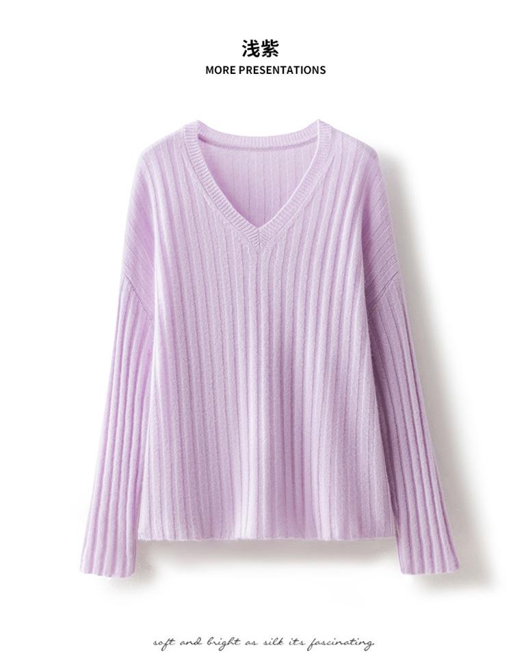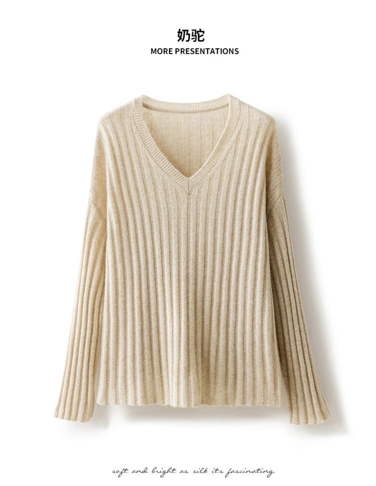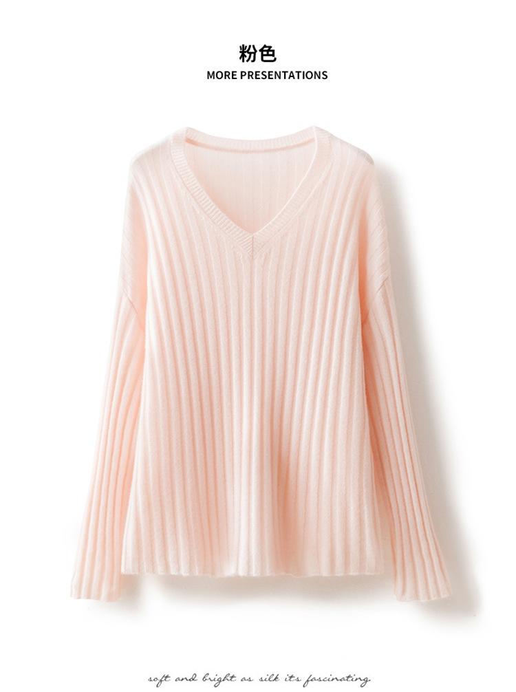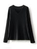 Outono e Inverno 2023 Decote V Feminino Casual Cor Clara Listrado Pulôver Ajustado Para Trabalho Cashmere Tricotado Suéter