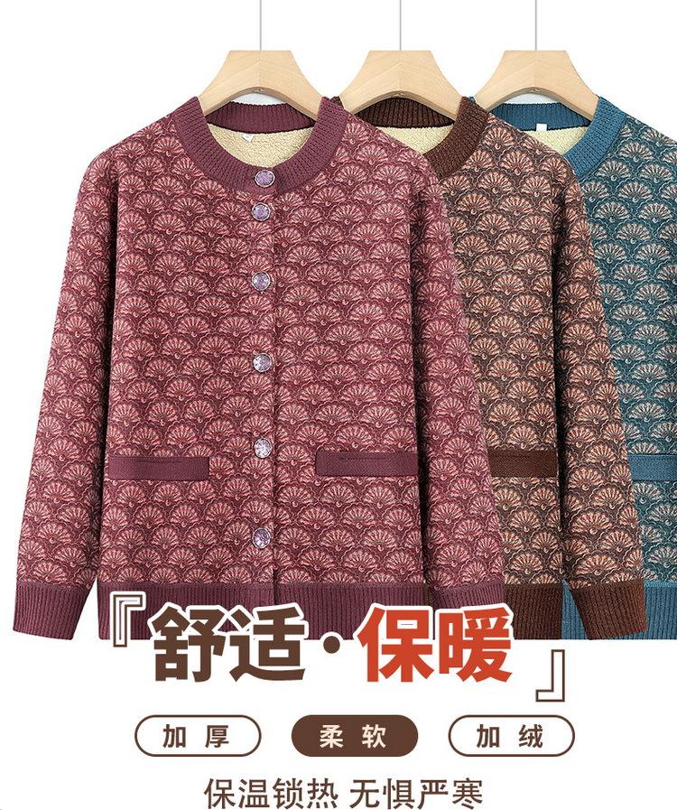 Abrigo de terciopelo de otoño e invierno para abuela, ropa de invierno para mujer, suéter para madre mayor, cárdigan para mujer mayor, ropa abrigada para mujer mayor