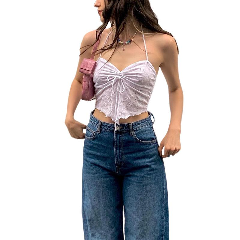 Moda de verano europea y americana 2023, ropa de mujer de moda, nuevo chaleco interior con tirantes finos y un solo hombro sin espalda