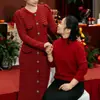 Otoño e Invierno Nuevo Estilo Francés Celebridad Elegante Interior Fondo Compromiso Vestido Rojo Tejido Cadera Vestido