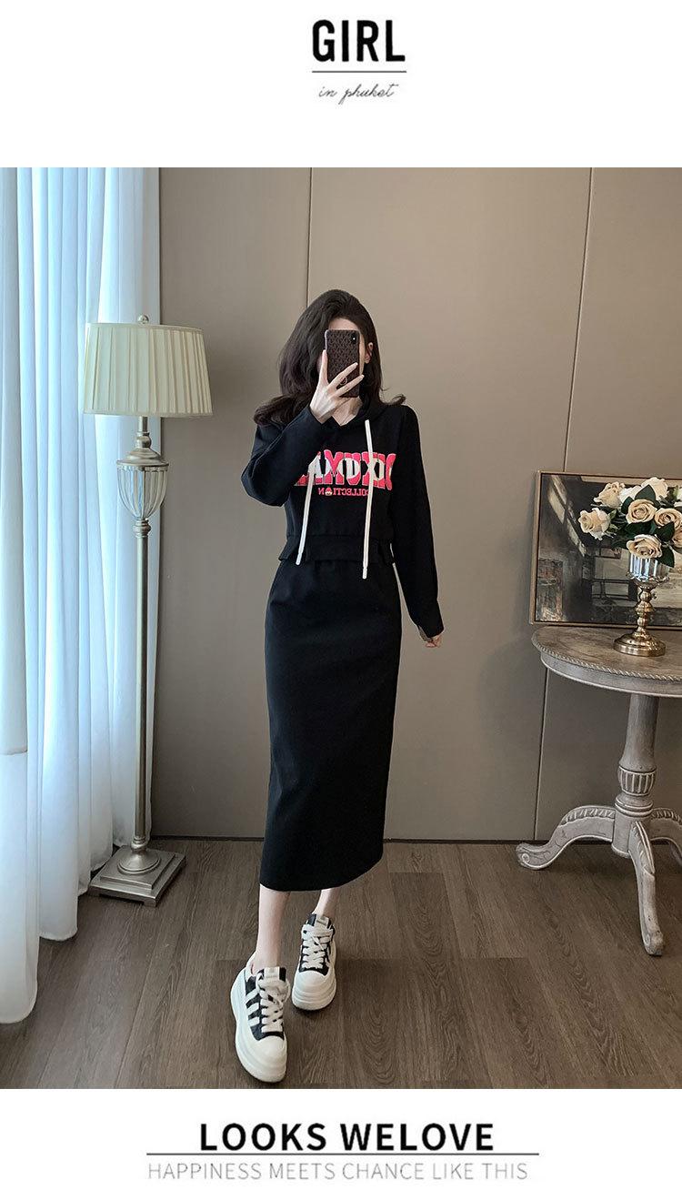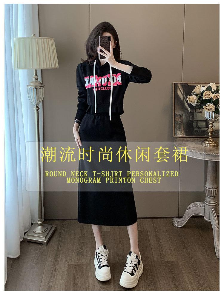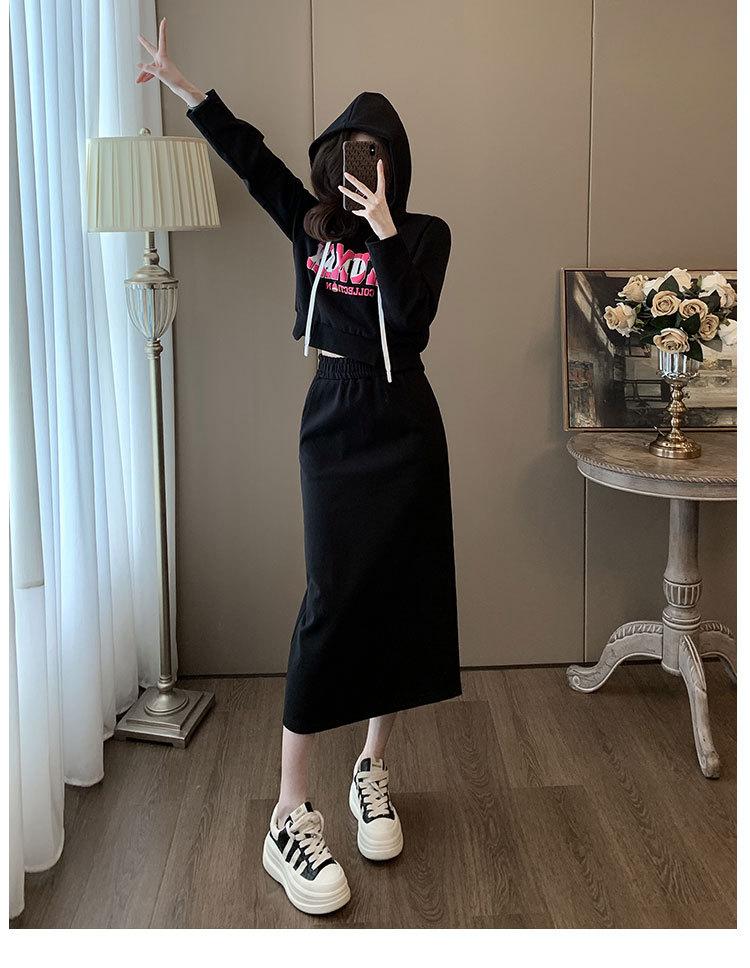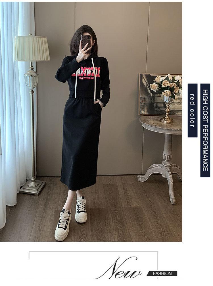 Popular Hermoso Traje Falda de Este Año Moda Deportiva y de Ocio para Otoño e Invierno Terciopelo Engrosado Sudadera Falda Conjunto de Dos Piezas