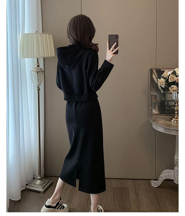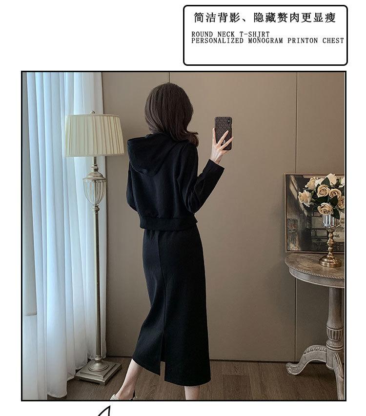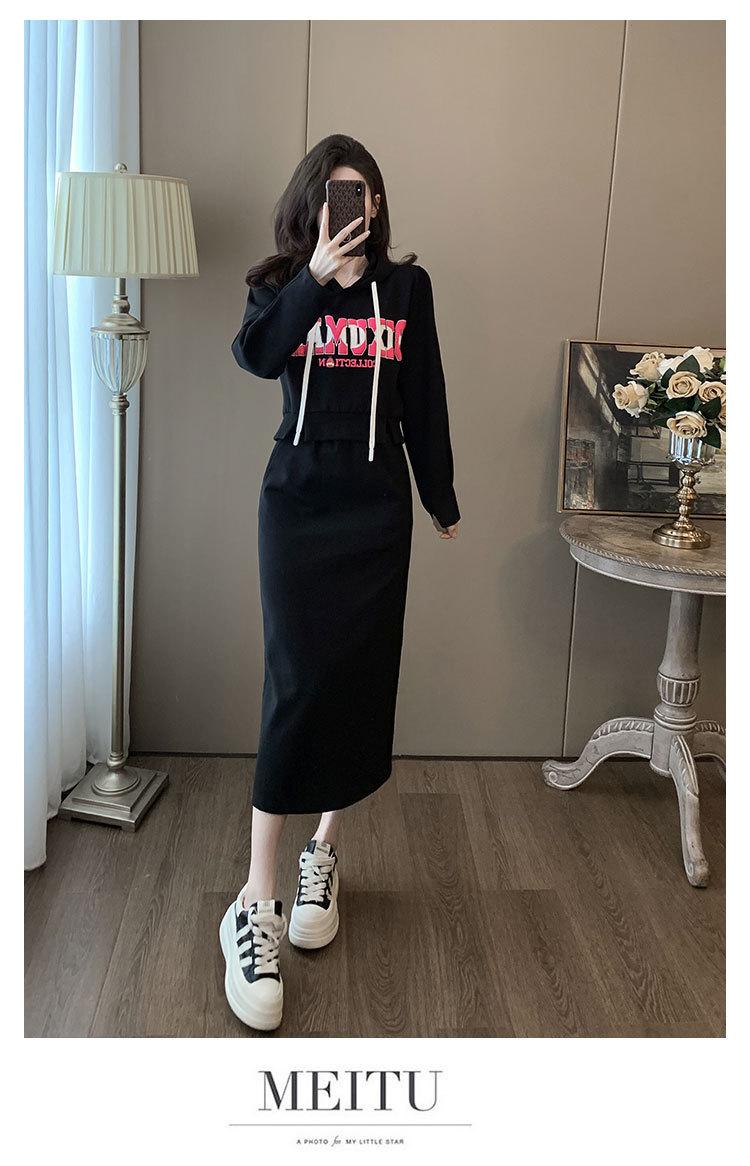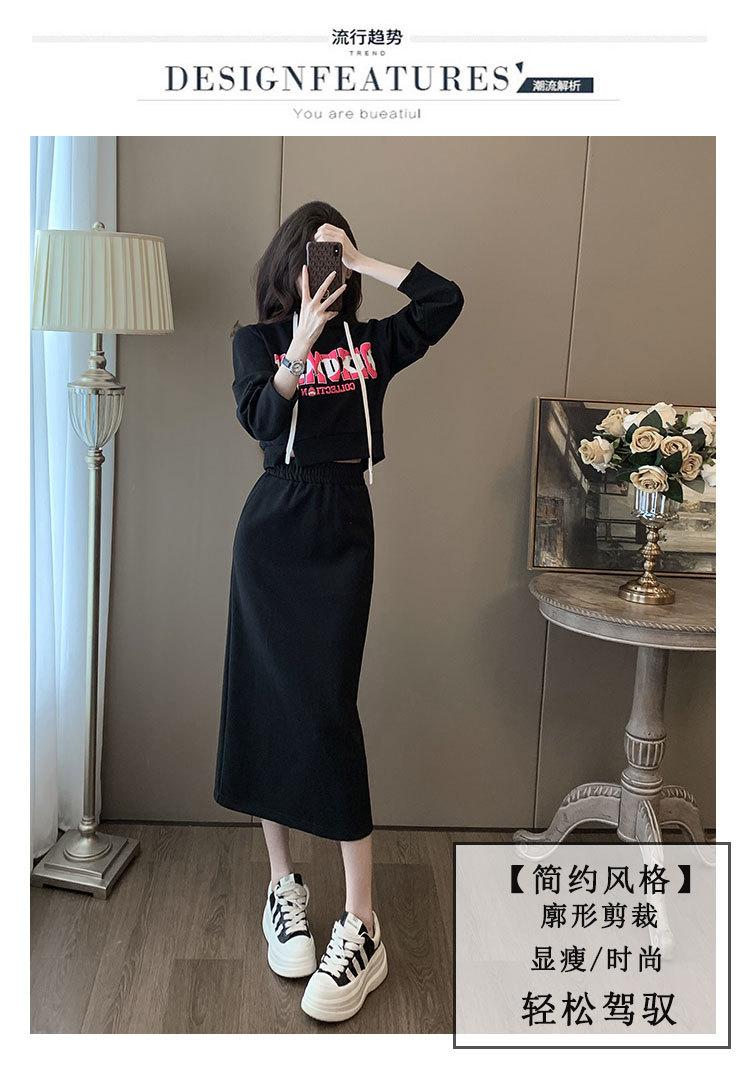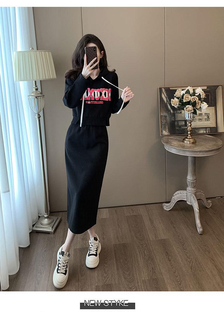 Popular Hermoso Traje Falda de Este Año Moda Deportiva y de Ocio para Otoño e Invierno Terciopelo Engrosado Sudadera Falda Conjunto de Dos Piezas