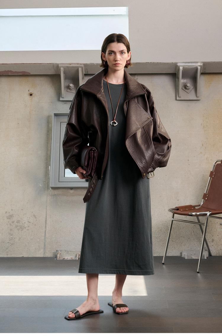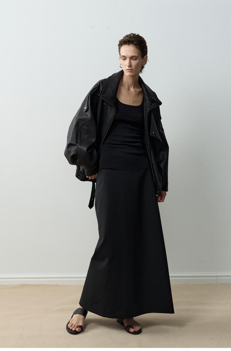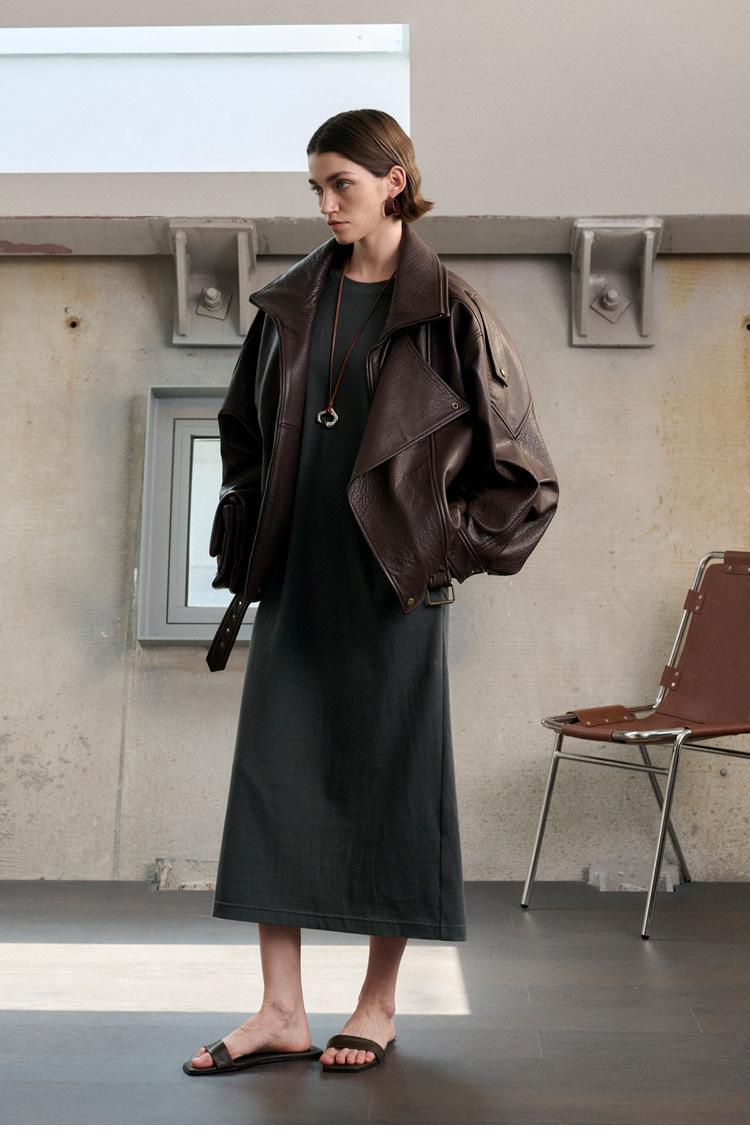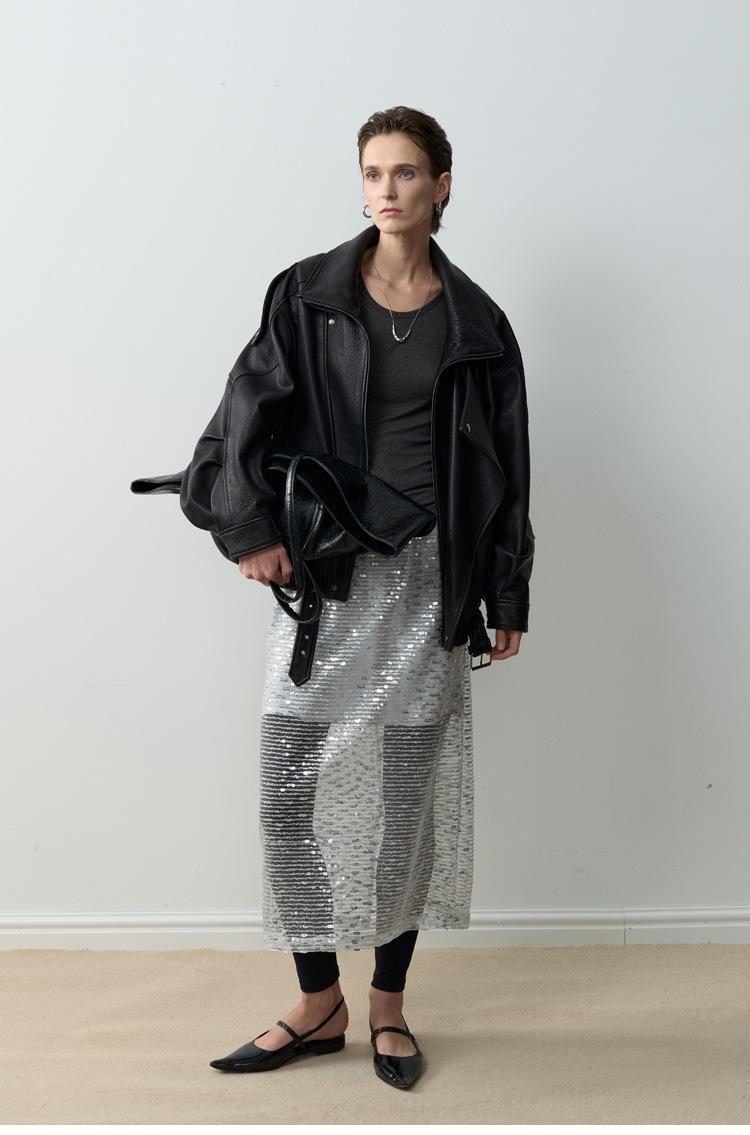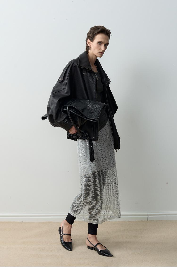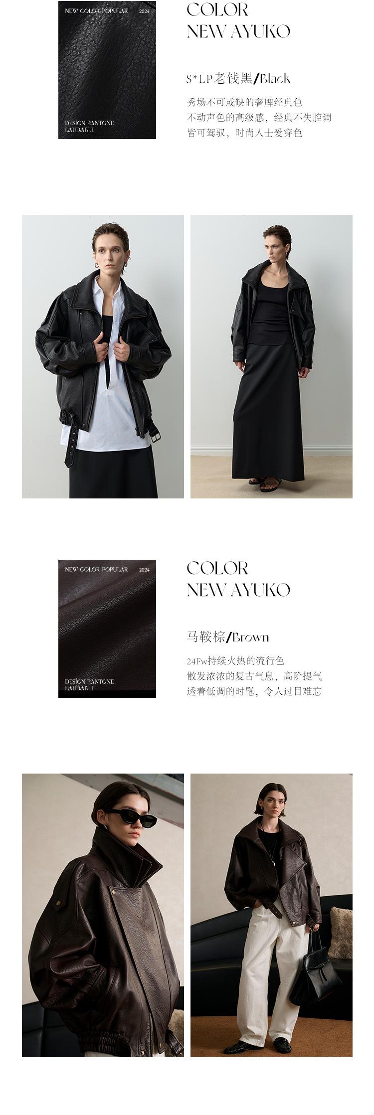 Yang Shulin Y * L Abrigo de Cuero de Otoño para Mujer Holgado Perfil Retro Industria Pesada Cuero de Cordero Burbuja Chaqueta de Aviador