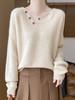 Suéter de punto nuevo de otoño e invierno 2024 para mujer, diseño elegante, cuello en V, botones, suelto, suave, estilo perezoso.