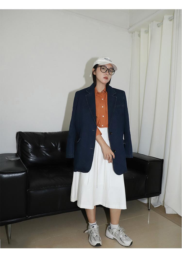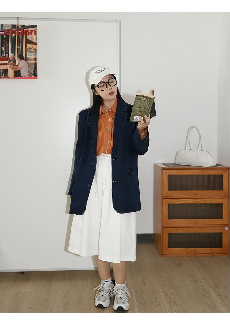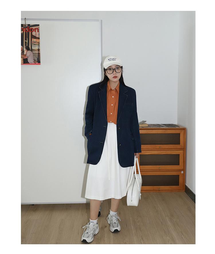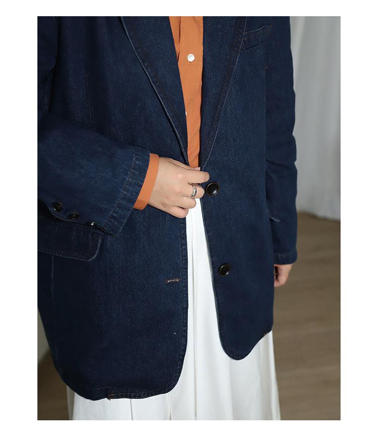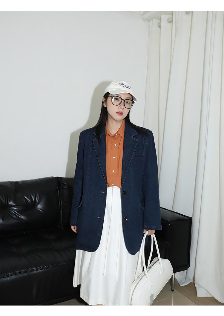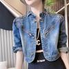 Abrigo de mezclilla vintage lavado feliz para mujer de alta gama 2024 otoño nuevo cuello sastre abrigo holgado slim 6663
