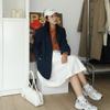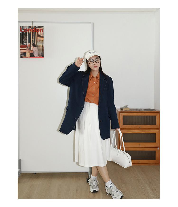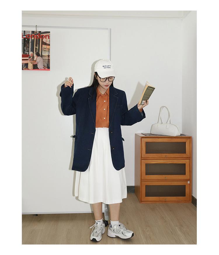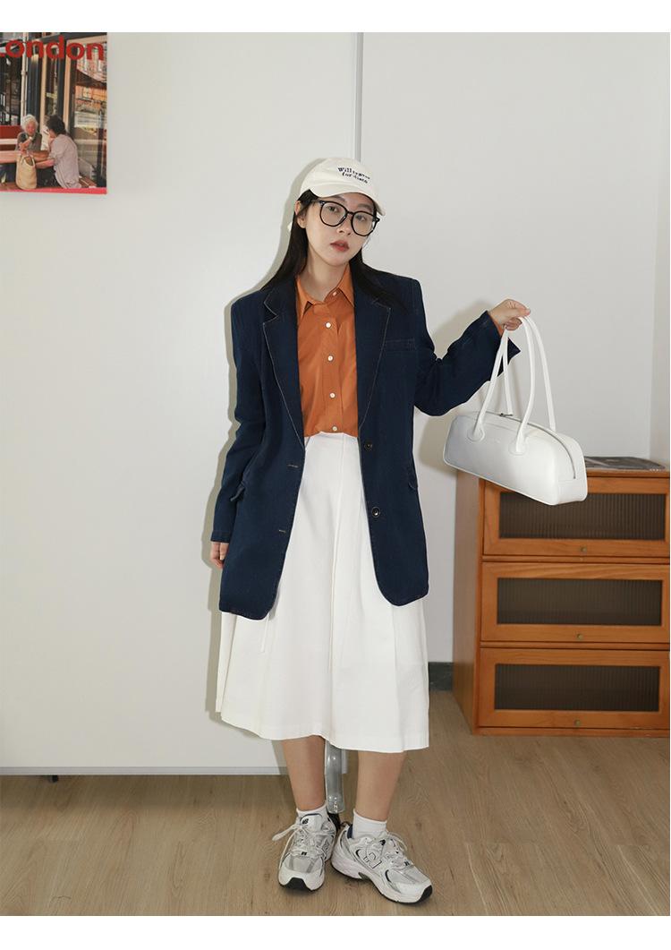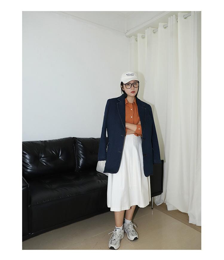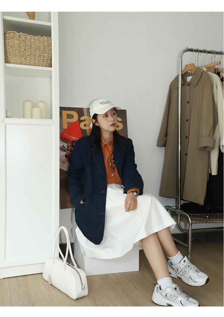 Abrigo de mezclilla vintage lavado feliz para mujer de alta gama 2024 otoño nuevo cuello sastre abrigo holgado slim 6663