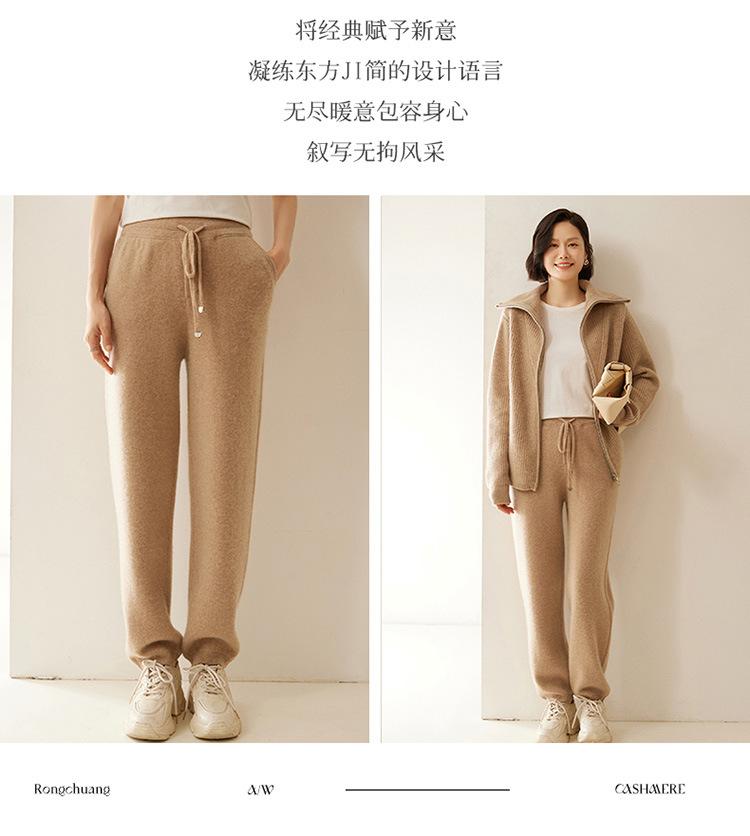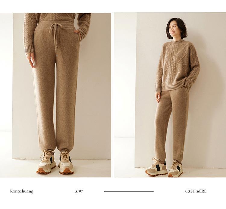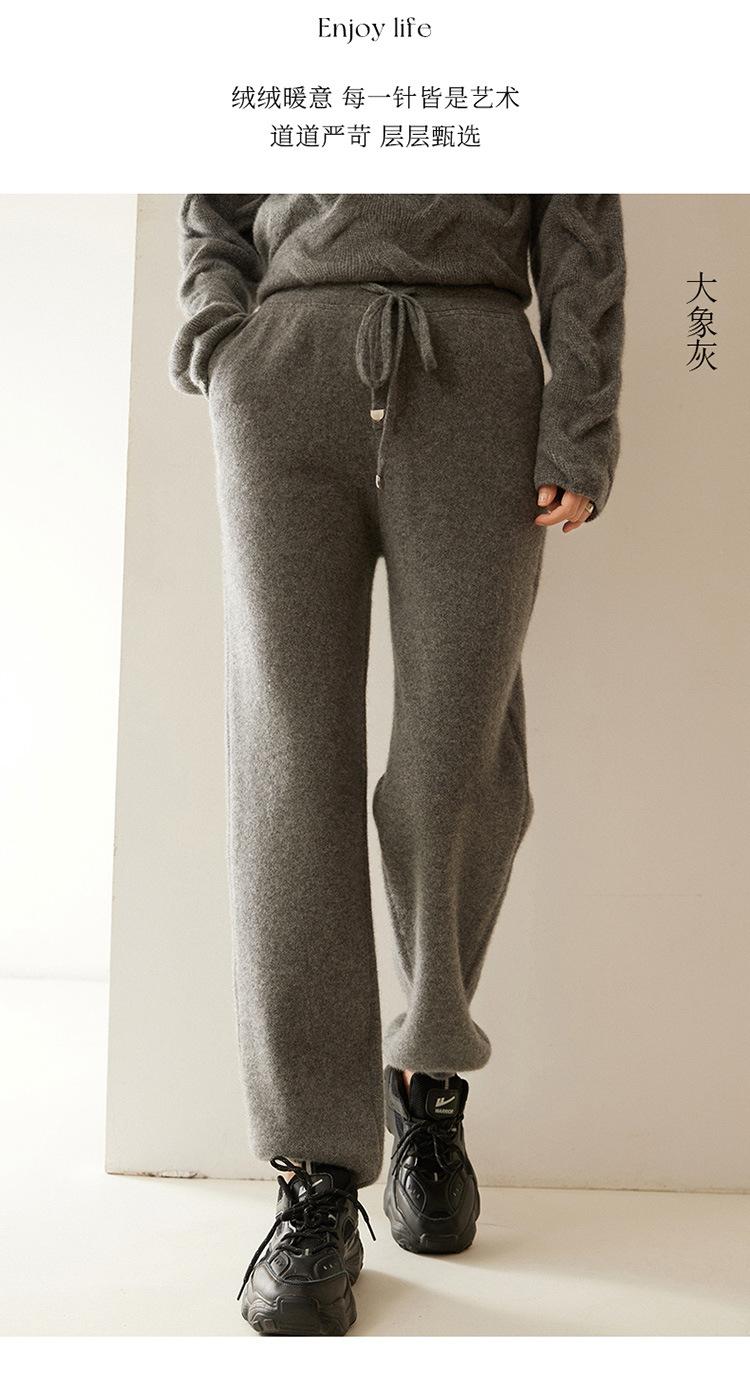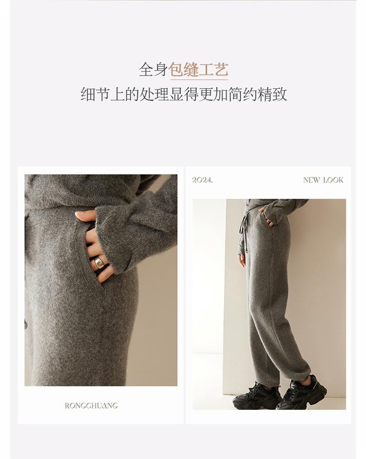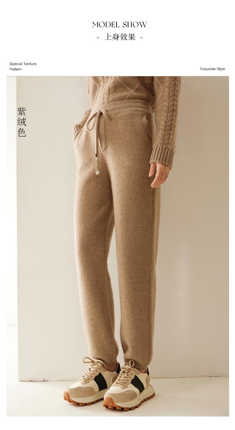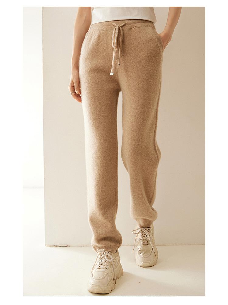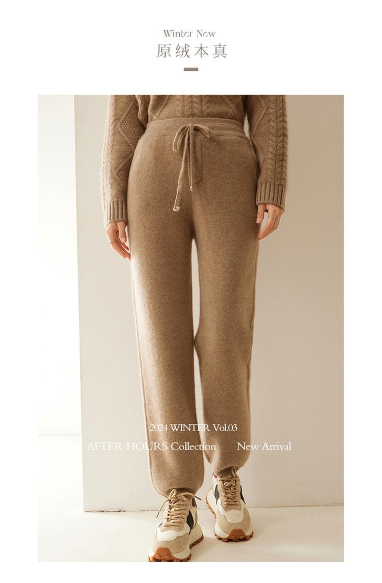 Pantalones deportivos de punto de cachemira para mujer, otoño e invierno 2024, clásicos, combinables, adelgazantes, elegantes, de pierna ancha, de lana