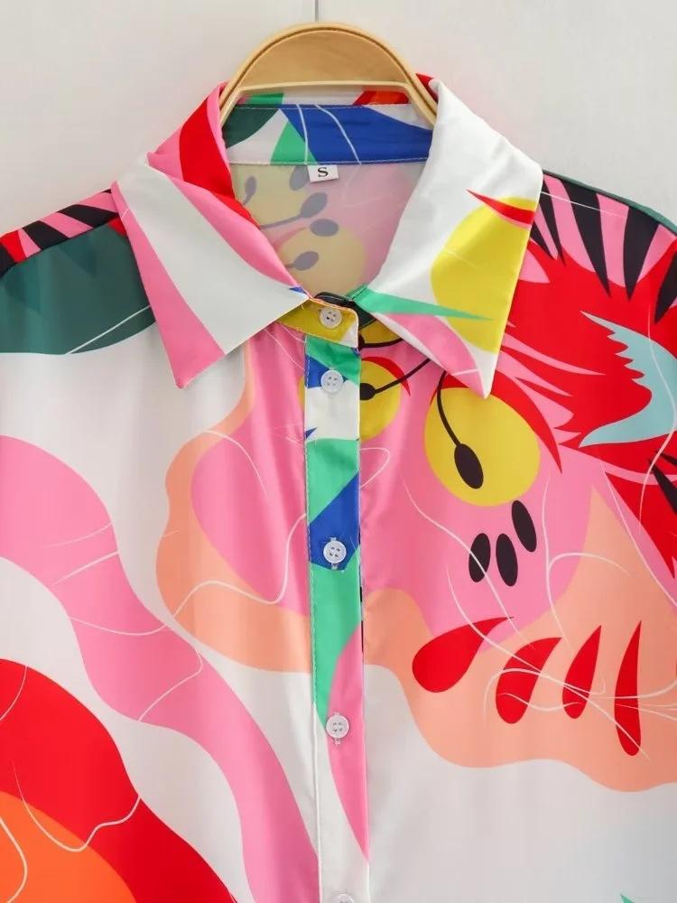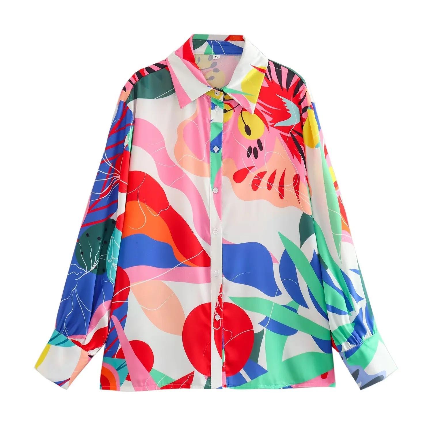 Traje de verano 2024 con camisa y pantalón estampados de satén para mujer europea y americana de comercio exterior transfronterizo de Amazon