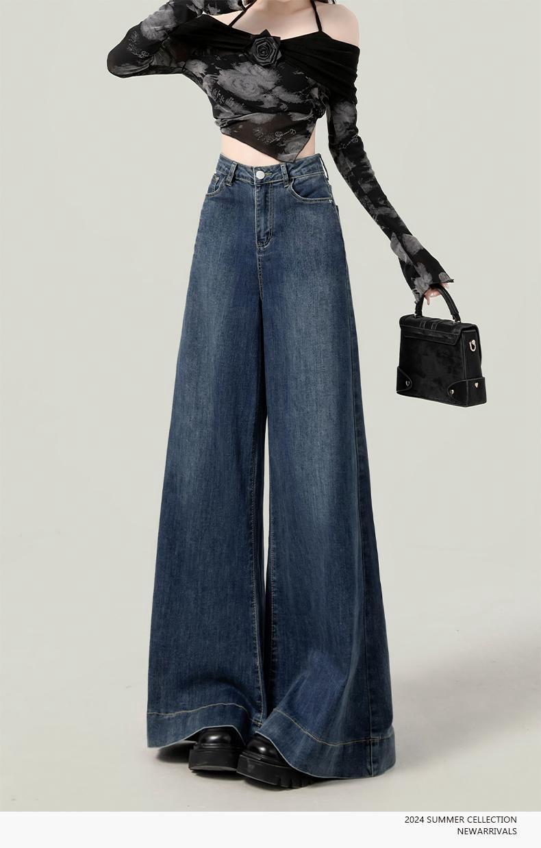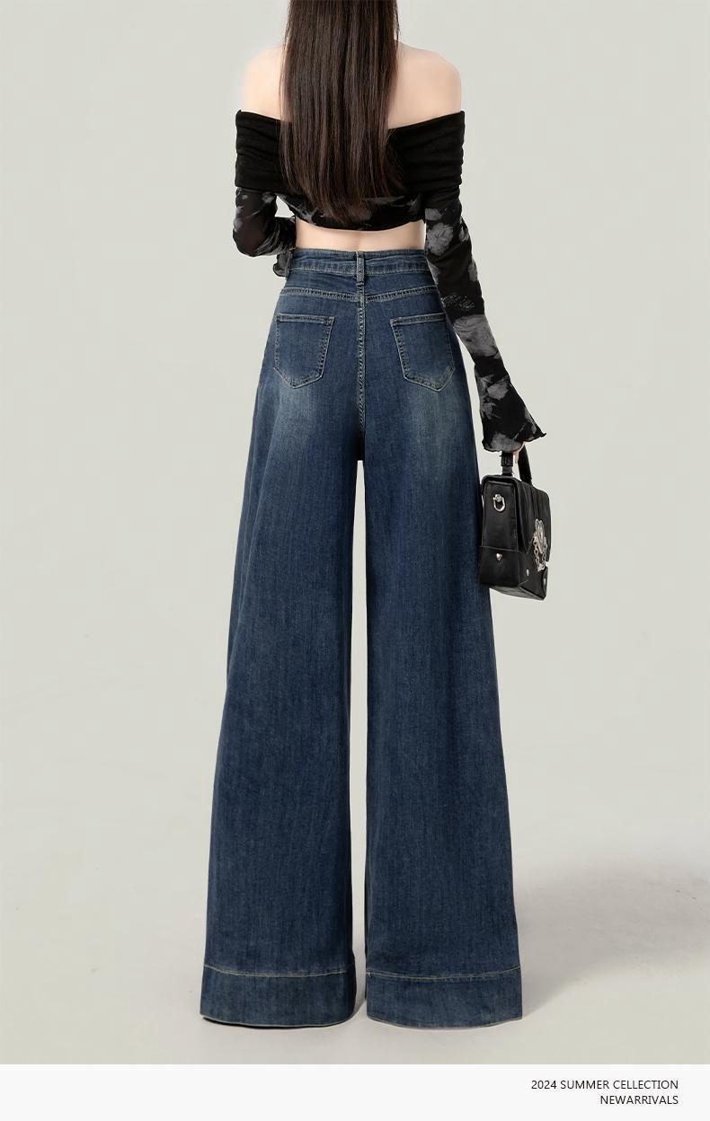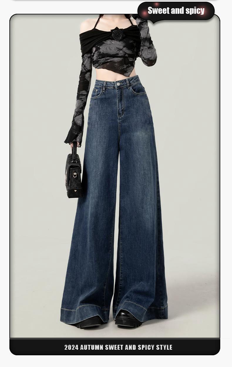Vaqueros vintage de cintura alta y pierna ancha para mujer, otoño 2024, nuevo diseño Spice Girl, pantalones rectos holgados y adelgazantes.
