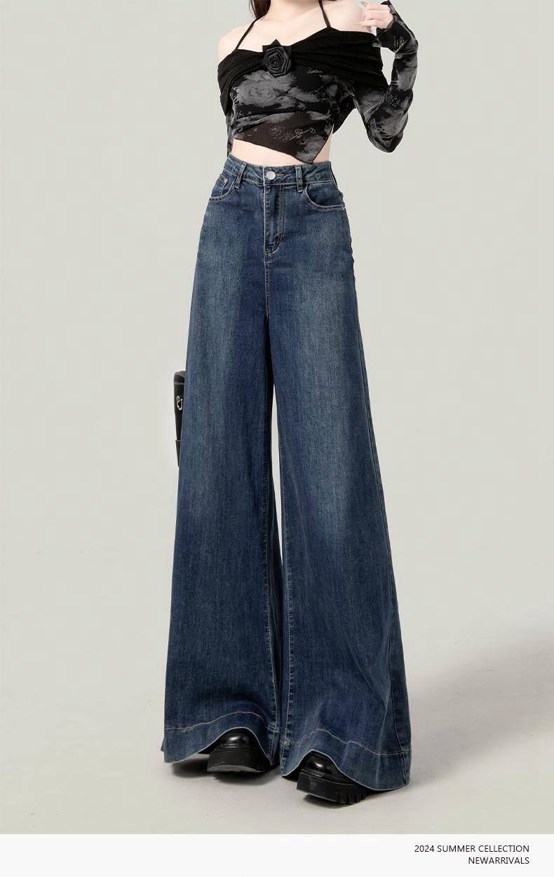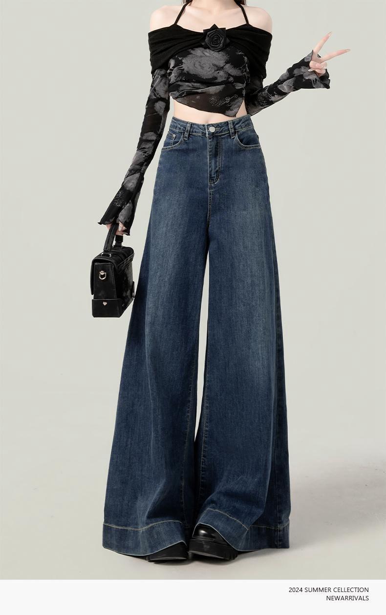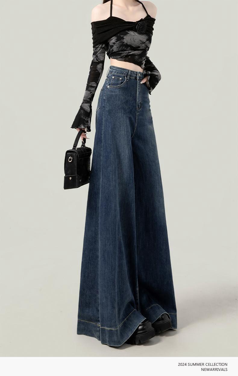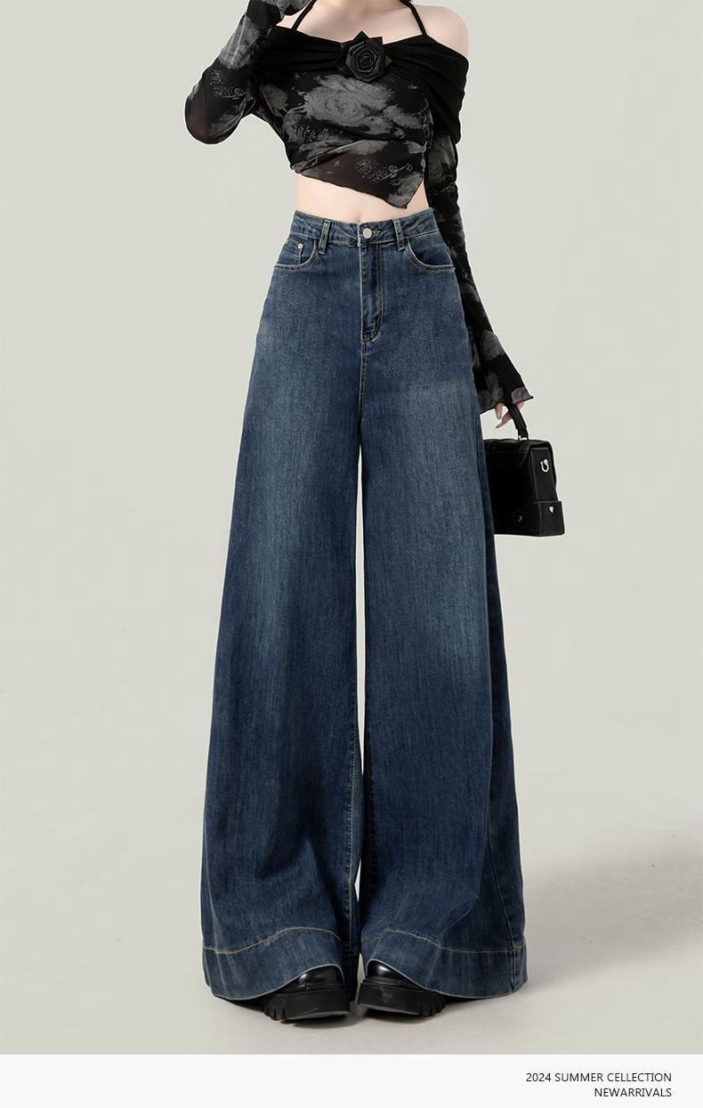 Vaqueros vintage de cintura alta y pierna ancha para mujer, otoño 2024, nuevo diseño Spice Girl, pantalones rectos holgados y adelgazantes.