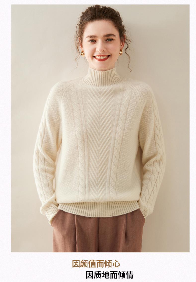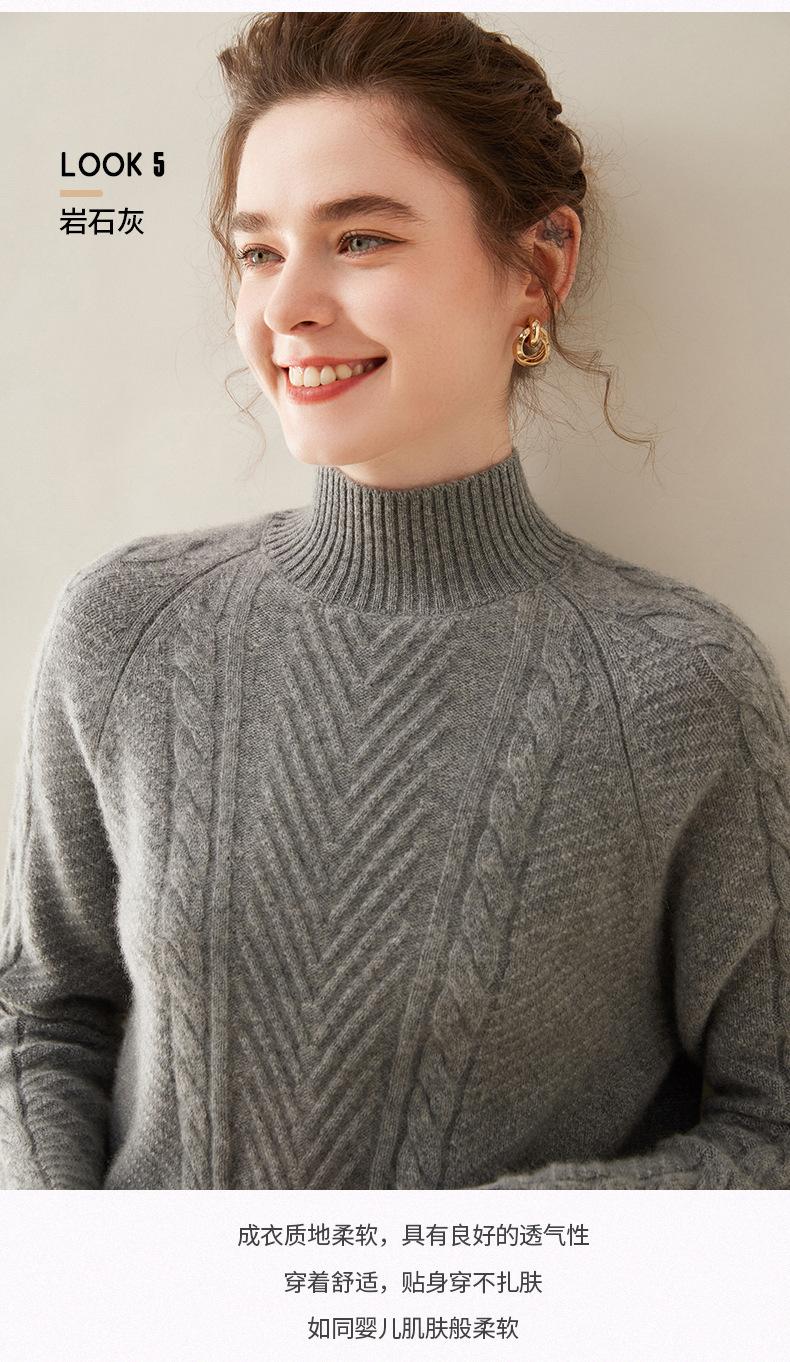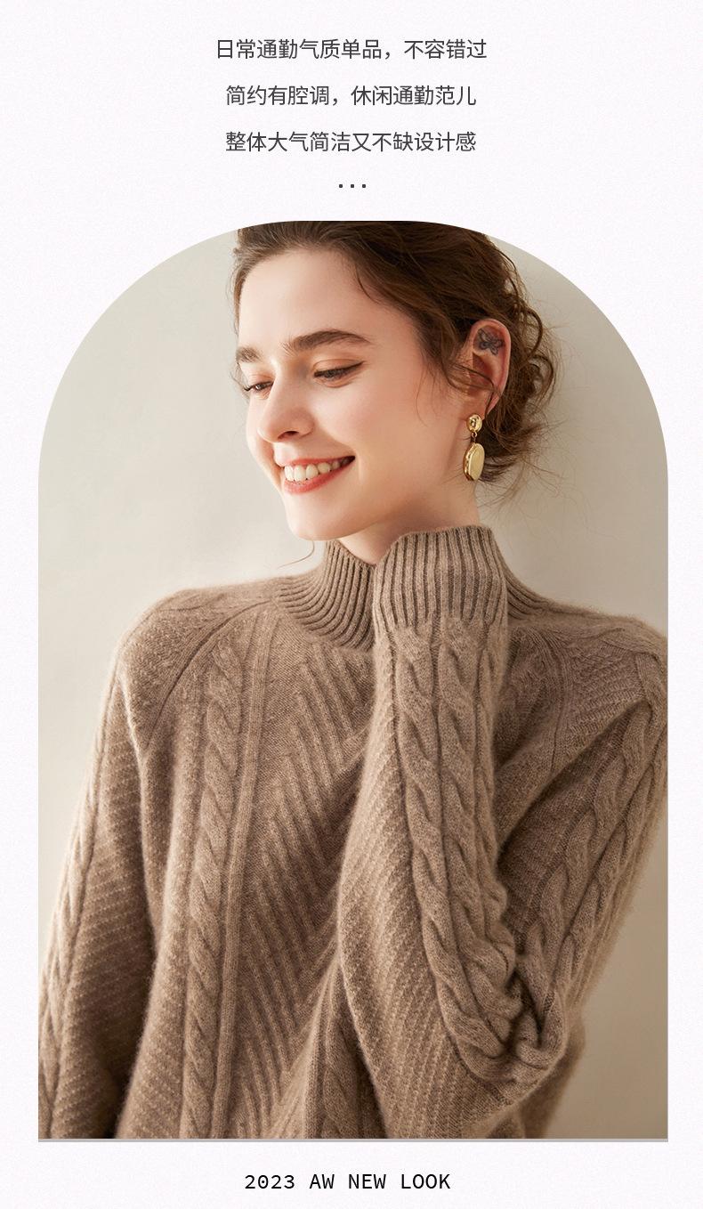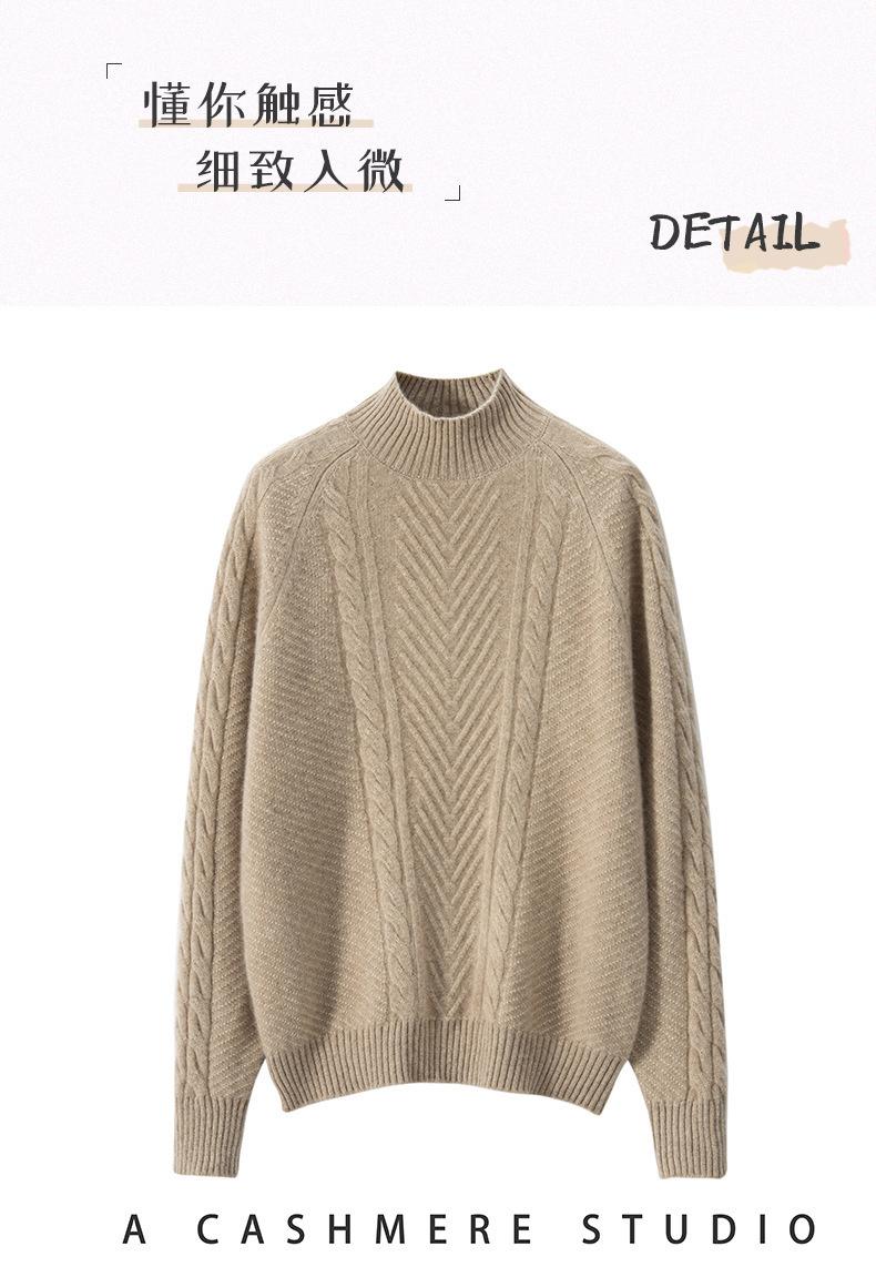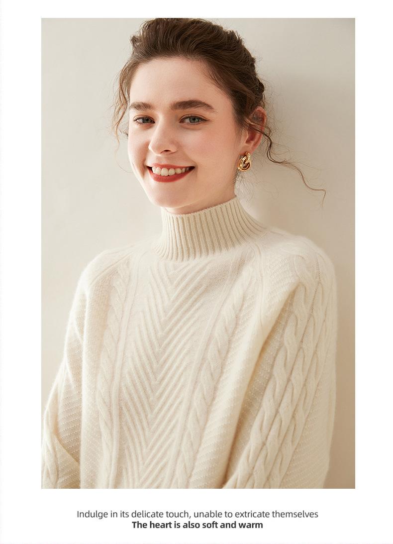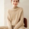 Suéter de cachemira de montaña para mujer, suéter de punto de cuello medio alto grueso de color sólido, nuevo suéter sencillo y holgado de otoño e invierno con base torcida