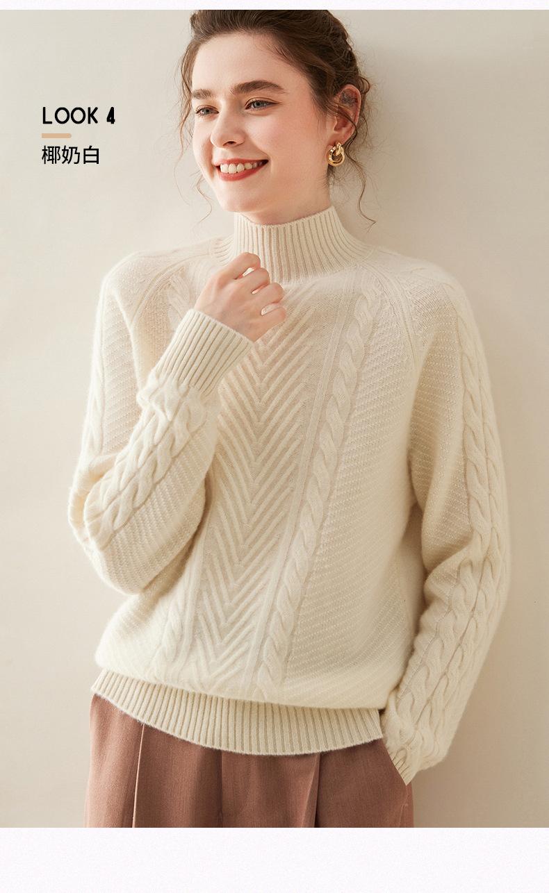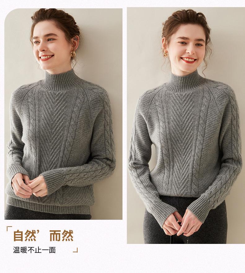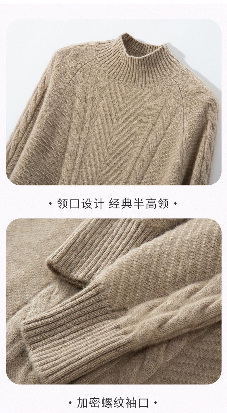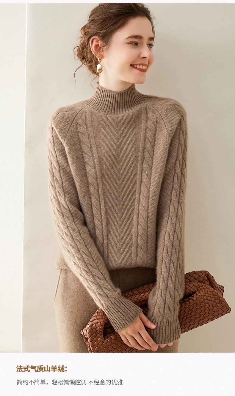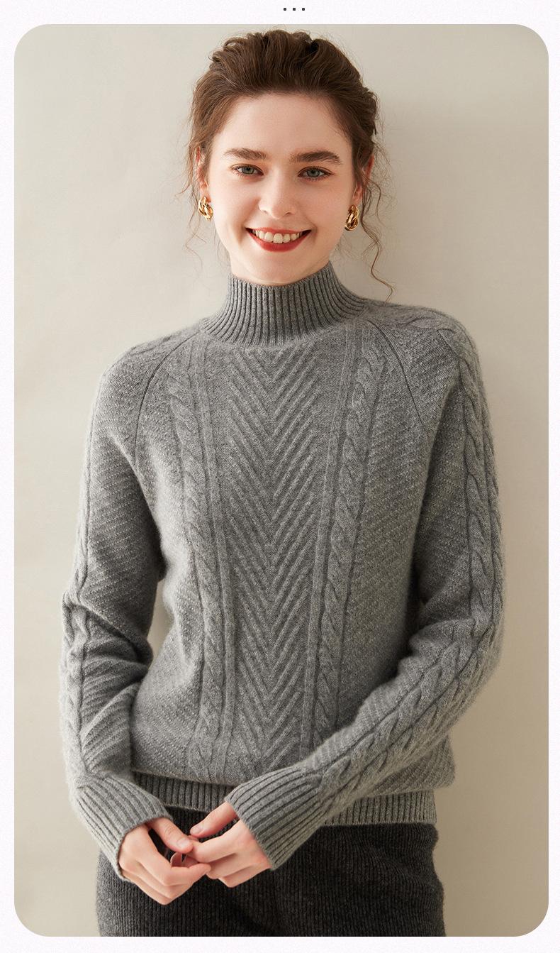 Suéter de cachemira de montaña para mujer, suéter de punto de cuello medio alto grueso de color sólido, nuevo suéter sencillo y holgado de otoño e invierno con base torcida
