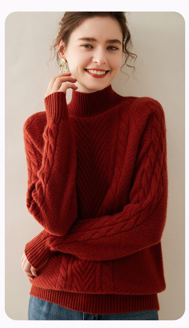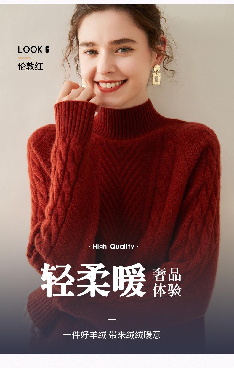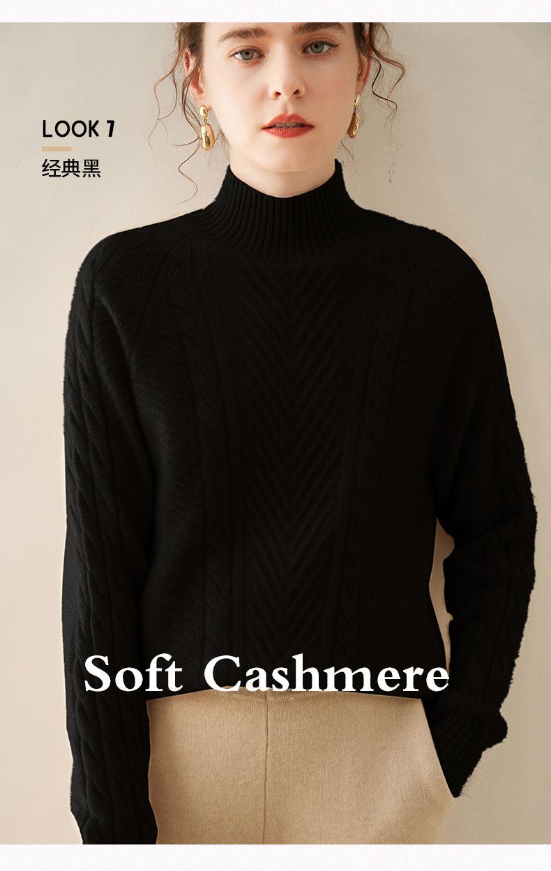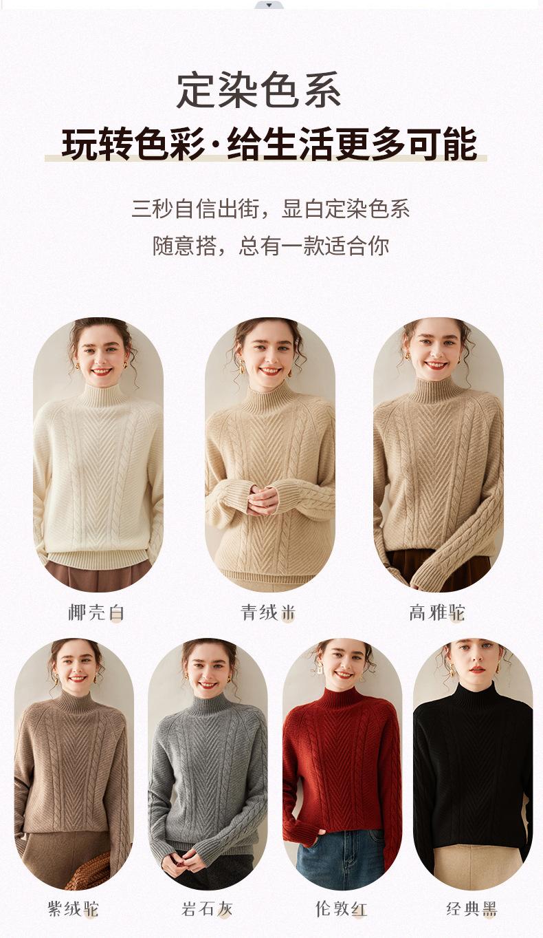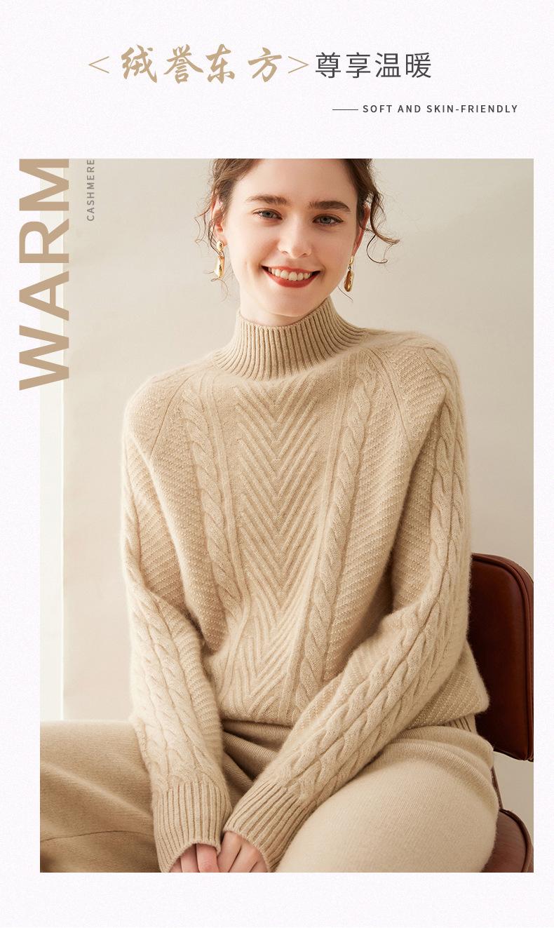 Suéter de cachemira de montaña para mujer, suéter de punto de cuello medio alto grueso de color sólido, nuevo suéter sencillo y holgado de otoño e invierno con base torcida