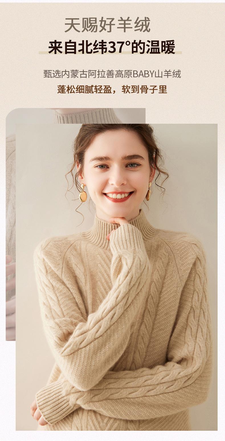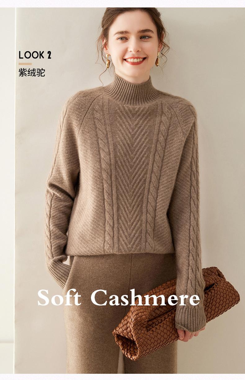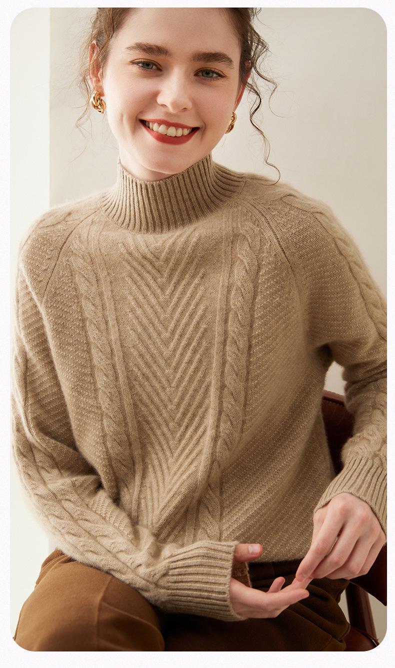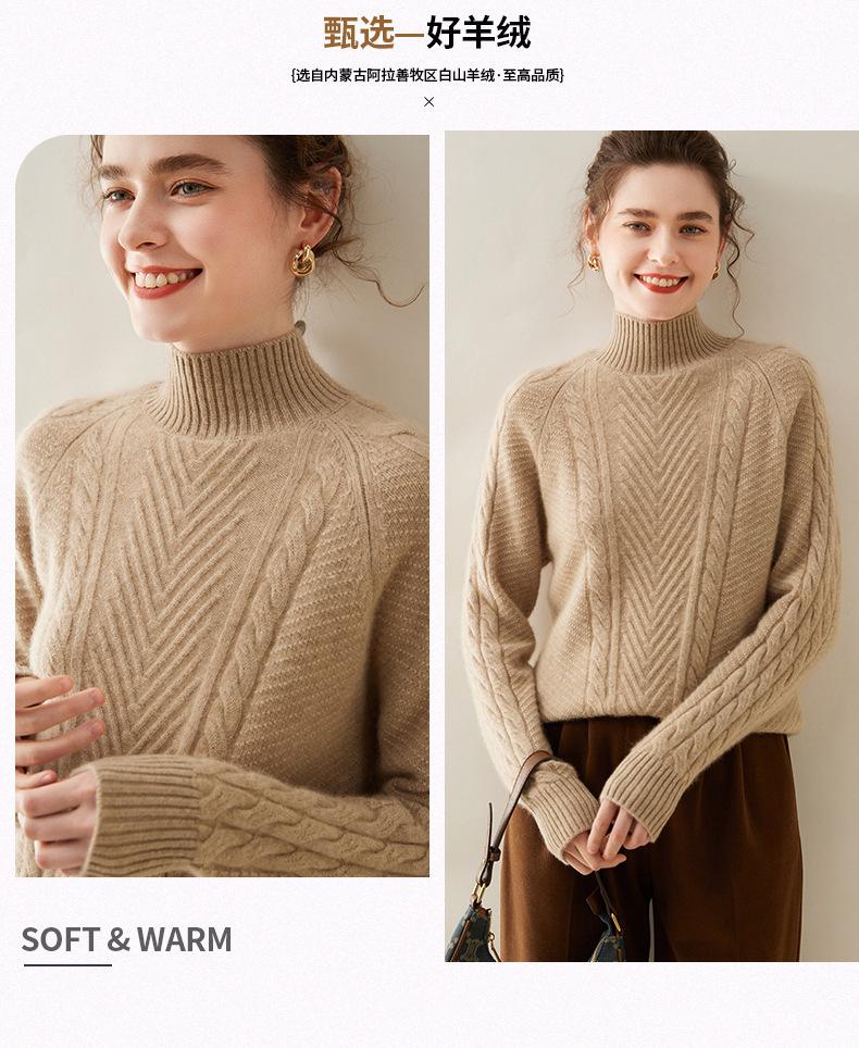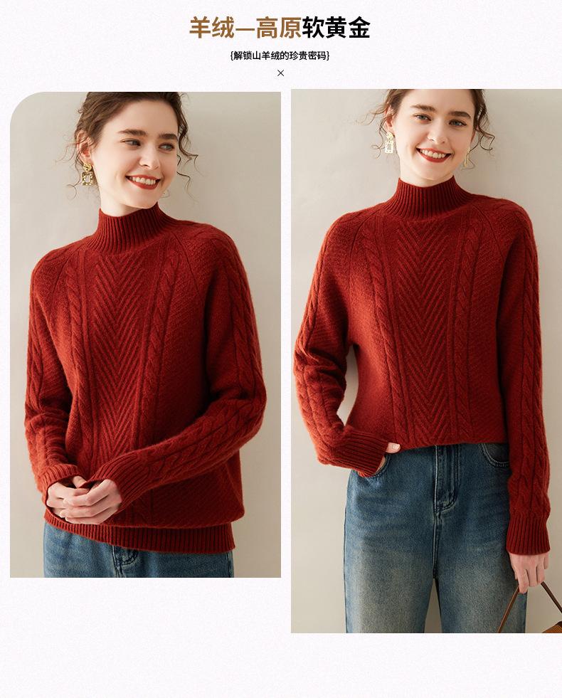 Suéter de cachemira de montaña para mujer, suéter de punto de cuello medio alto grueso de color sólido, nuevo suéter sencillo y holgado de otoño e invierno con base torcida