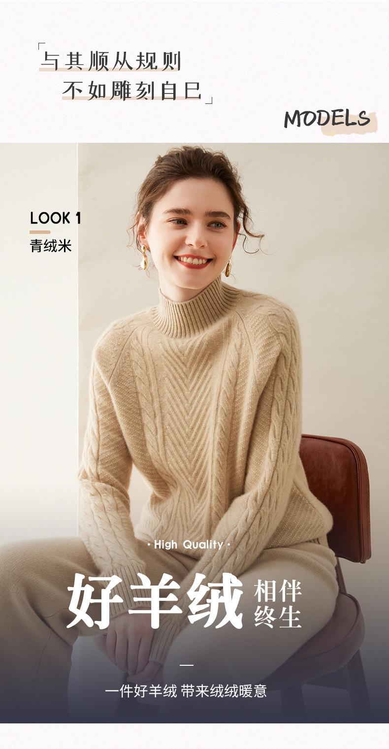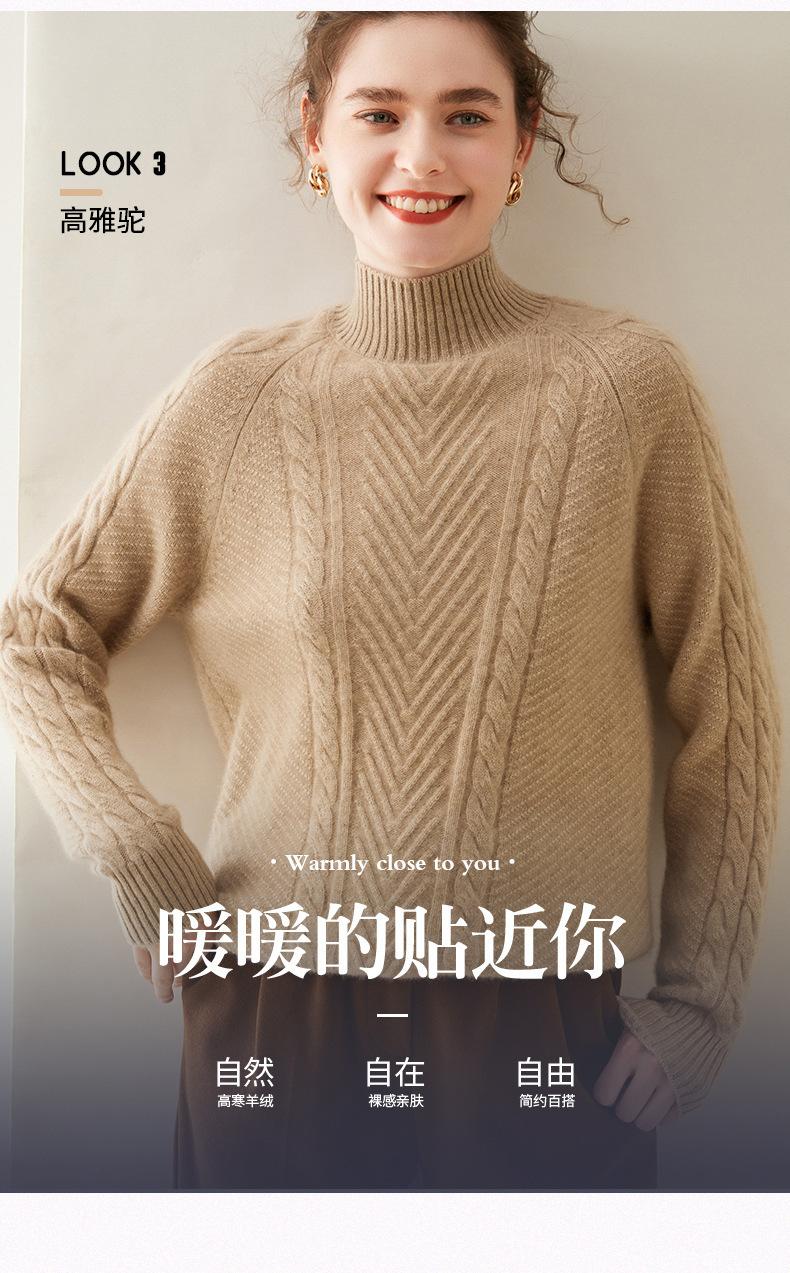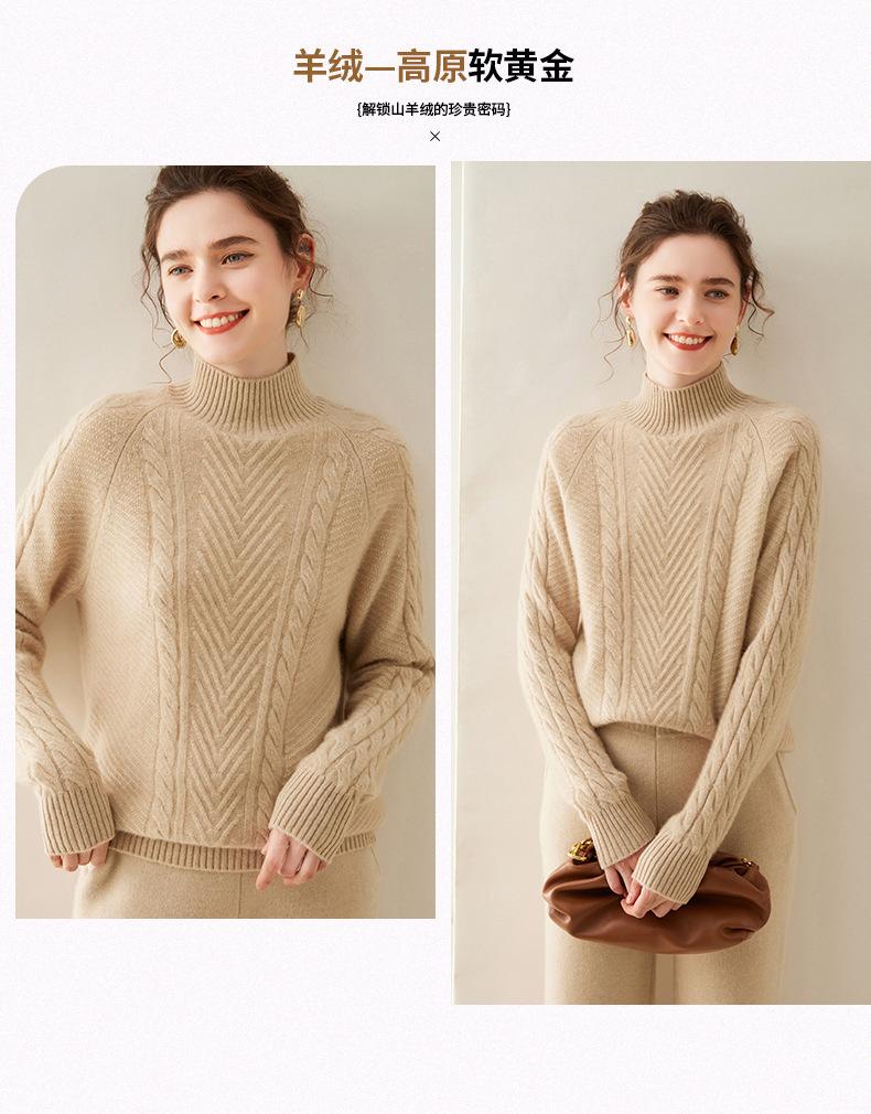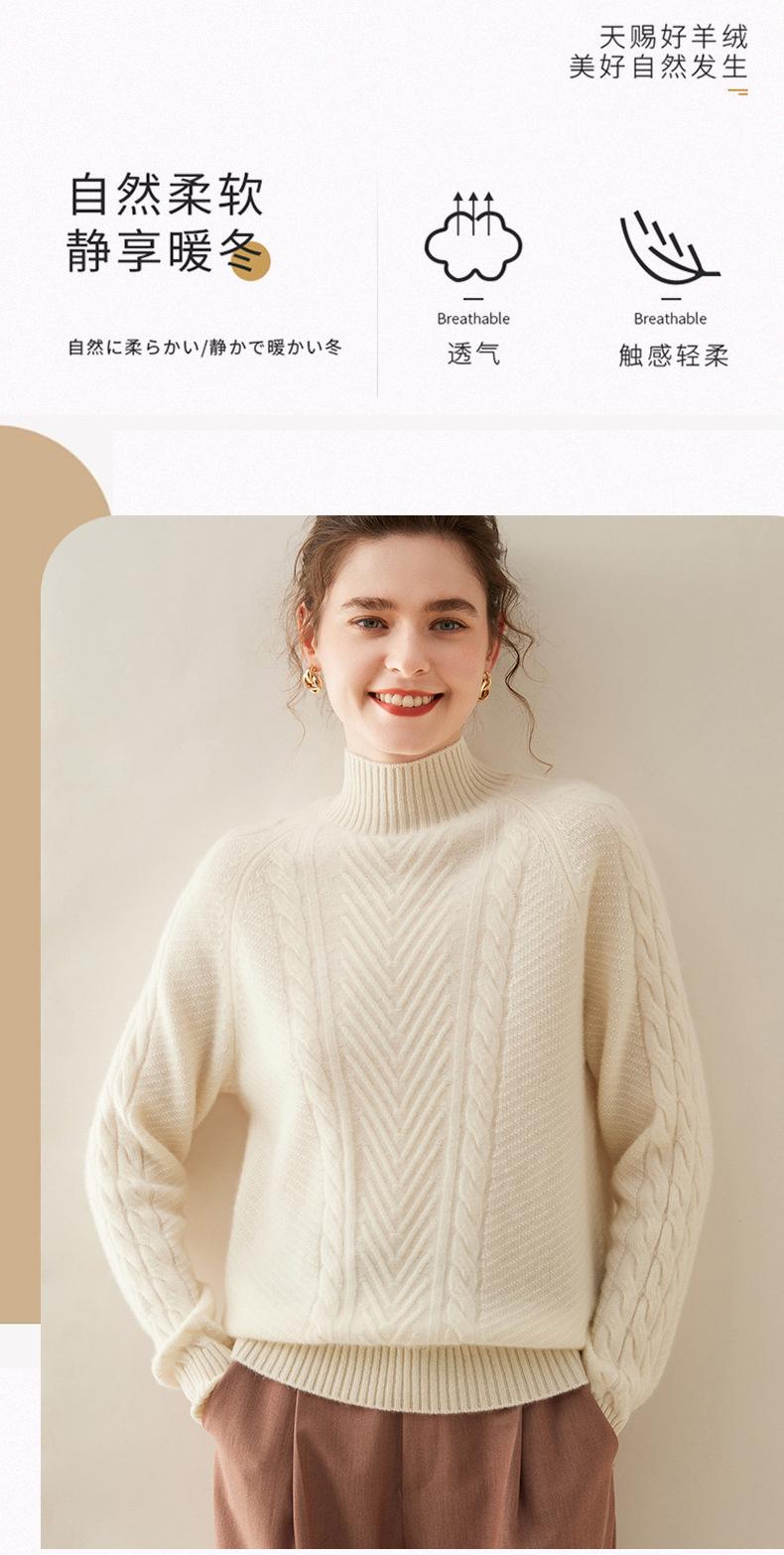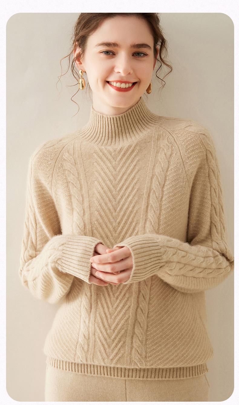 Suéter de cachemira de montaña para mujer, suéter de punto de cuello medio alto grueso de color sólido, nuevo suéter sencillo y holgado de otoño e invierno con base torcida