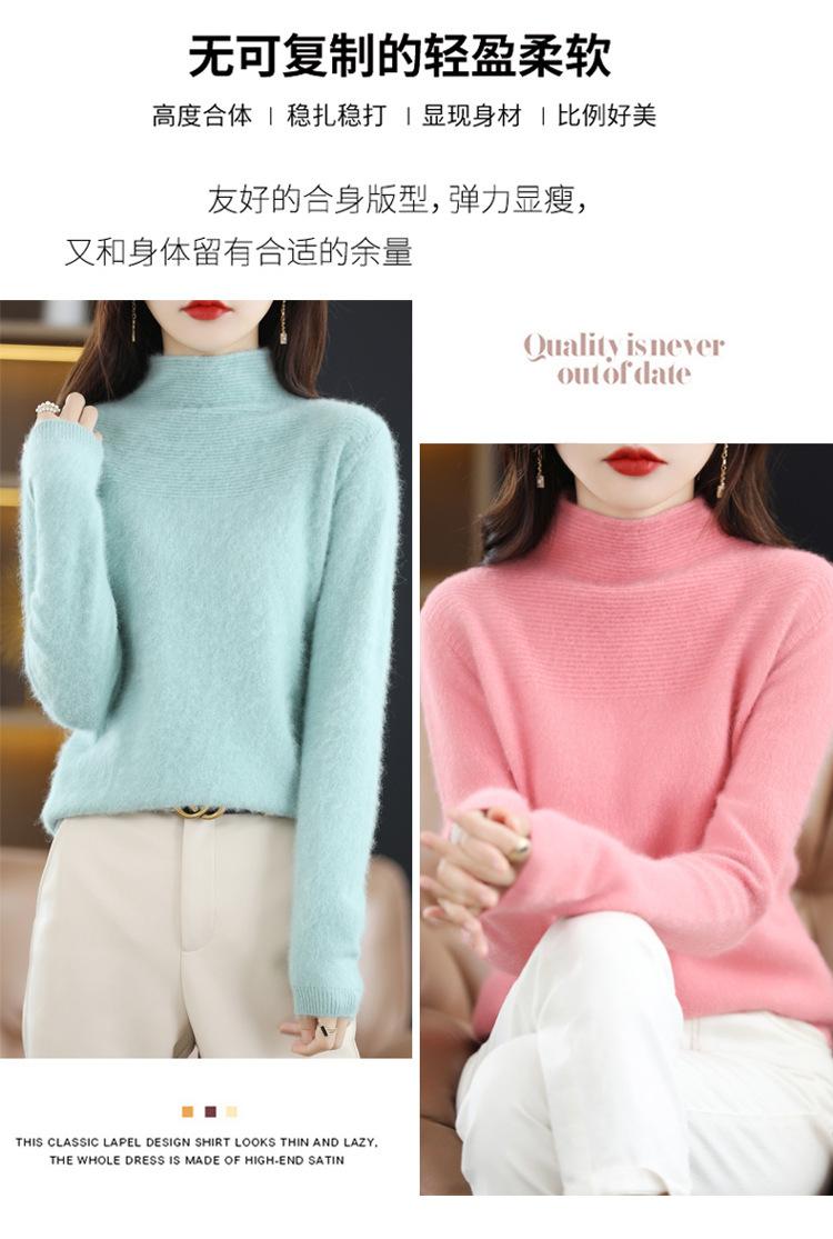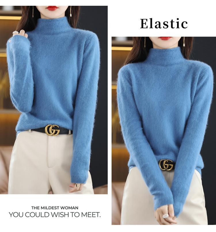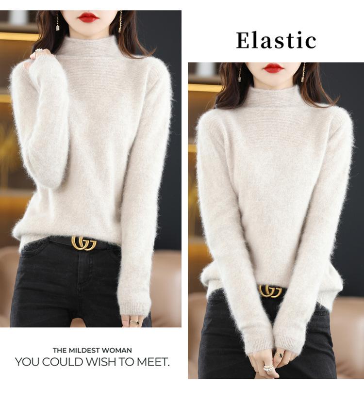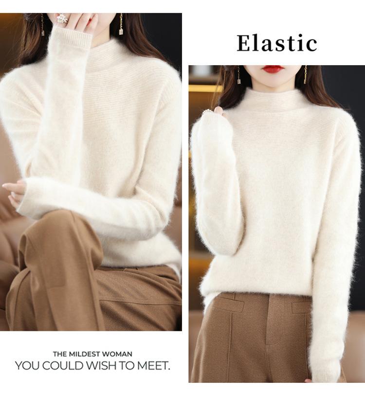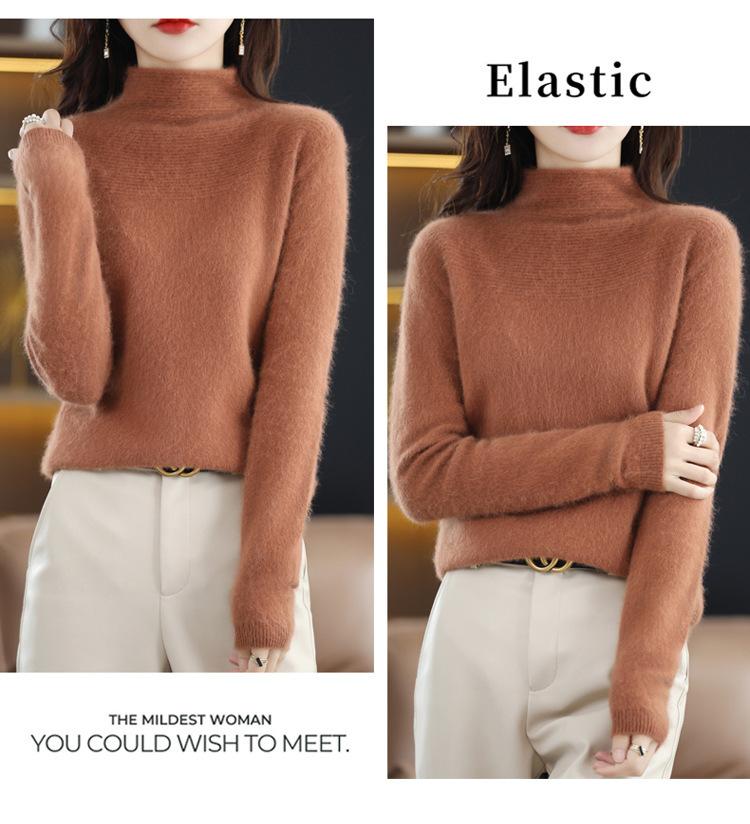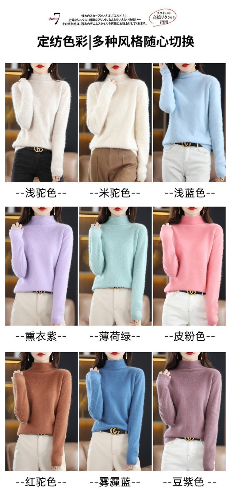 Suéter de visón de otoño e invierno para mujer, jersey de cuello semialto, suelto, de color sólido, corto, de lana tejida, suéter de camisa, venta al por mayor