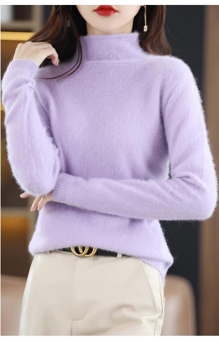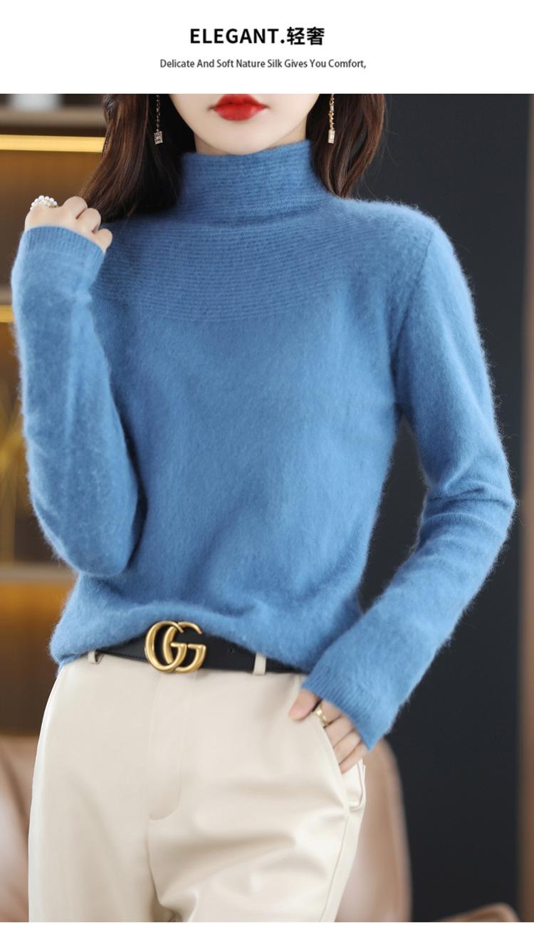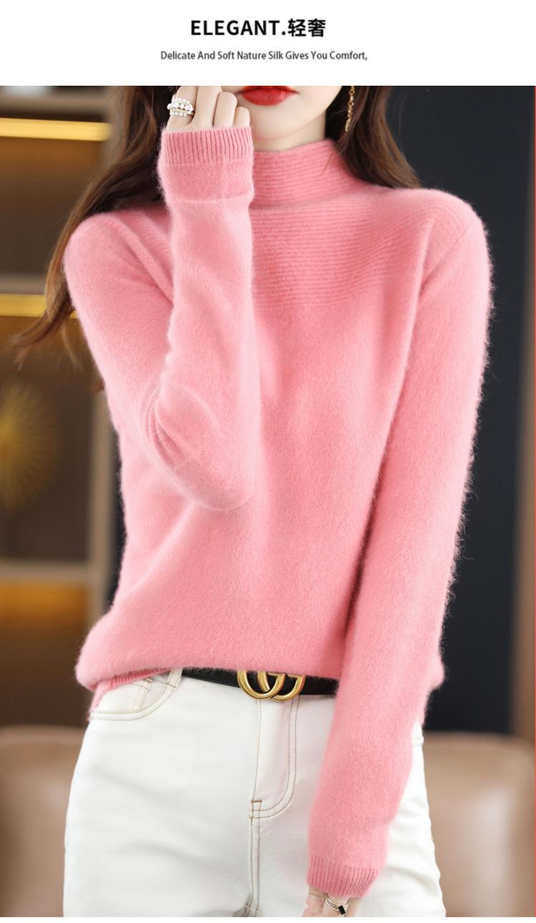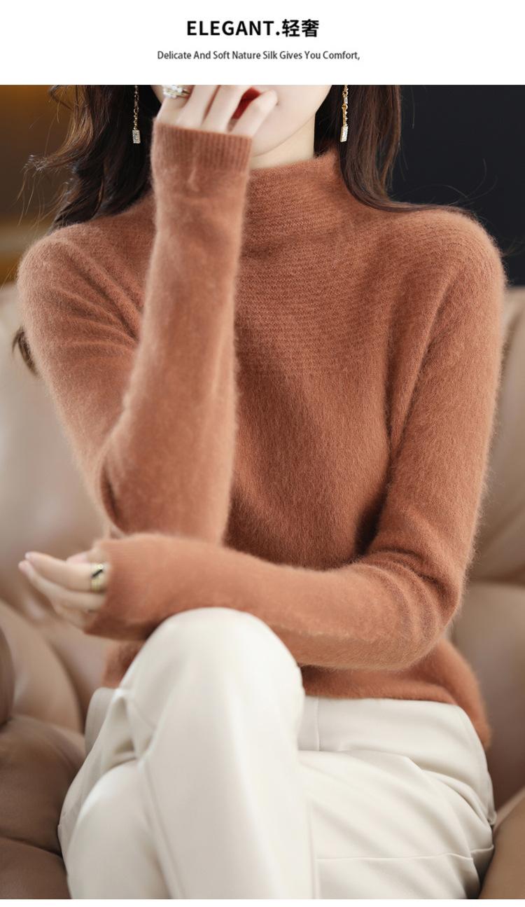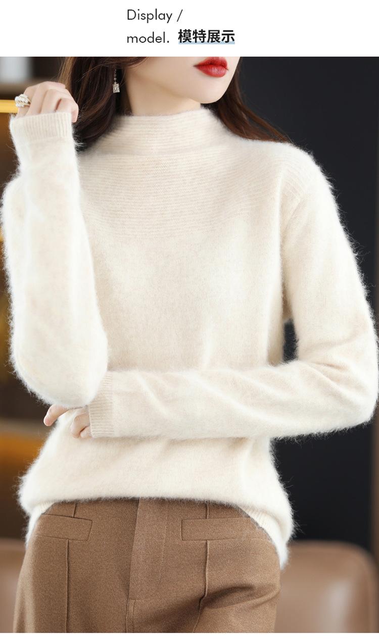 Suéter de visón de otoño e invierno para mujer, jersey de cuello semialto, suelto, de color sólido, corto, de lana tejida, suéter de camisa, venta al por mayor