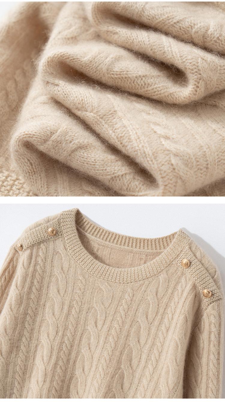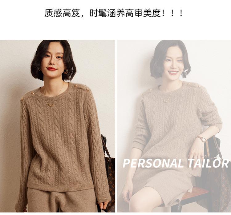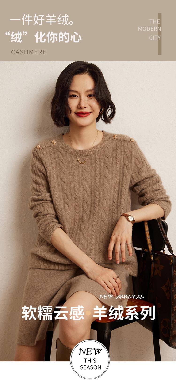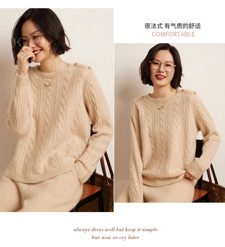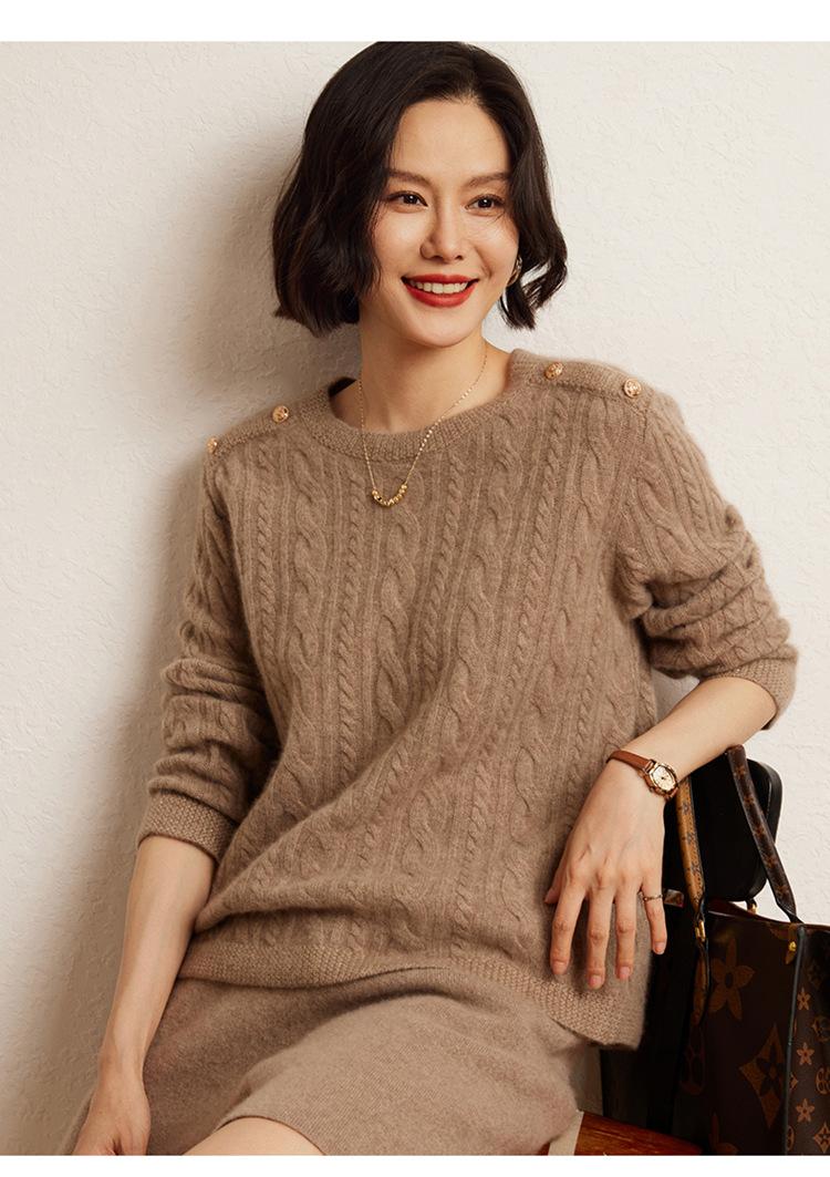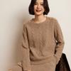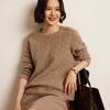 Cachmere Suéter Holgado de Cuello Redondo para Mujer Color Puro Torcido Bajo Ropa de Punto Otoño e Invierno Nuevo Estilo Lazy Ropa de Punto Casual